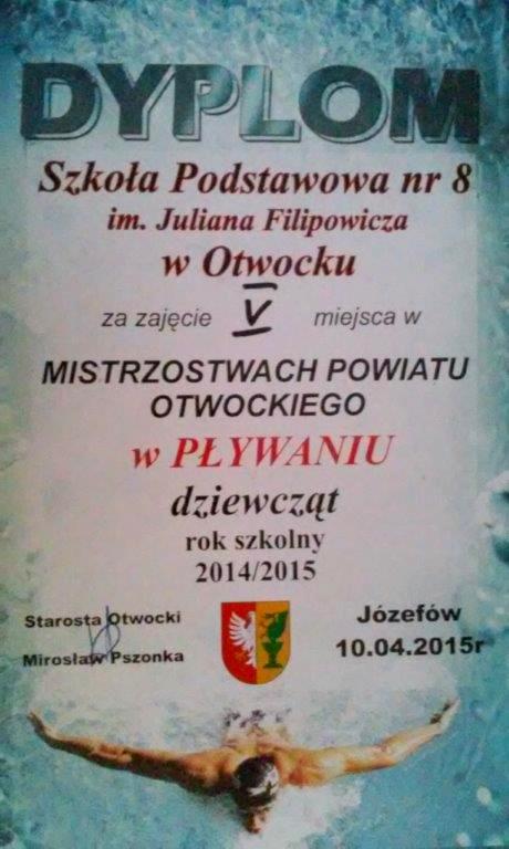 W kategorii dziewcząt pierwsze miejsce zajęli pływacy z Józefowa, a w kategorii chłopców z SP 12 Otwock. Dzieci z SP 8 po raz pierwszy wzięły udział w tej rywalizacji i odebrały dyplomy za V miejsca.