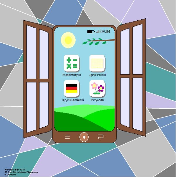 Uczniowie mieli za zadanie zaprojektować okładkę zeszytu szkolnego, gdzie pokażą w jaki sposób urządzenia mobilne mogą wspierać naukę ucznia. Prace przygotowało kilkoro uczniów z klasy IV oraz V. Zostały one przesłane w formie elektronicznej do organizatorów konkursu.