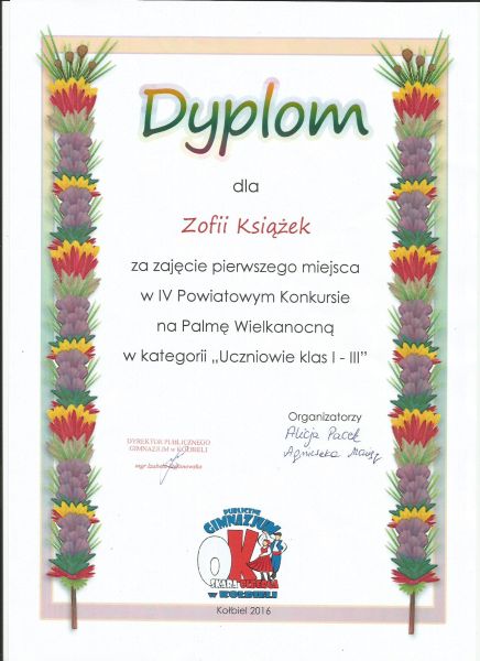Laureatów Powiatowego Konkursu na palmę wielkanocną
