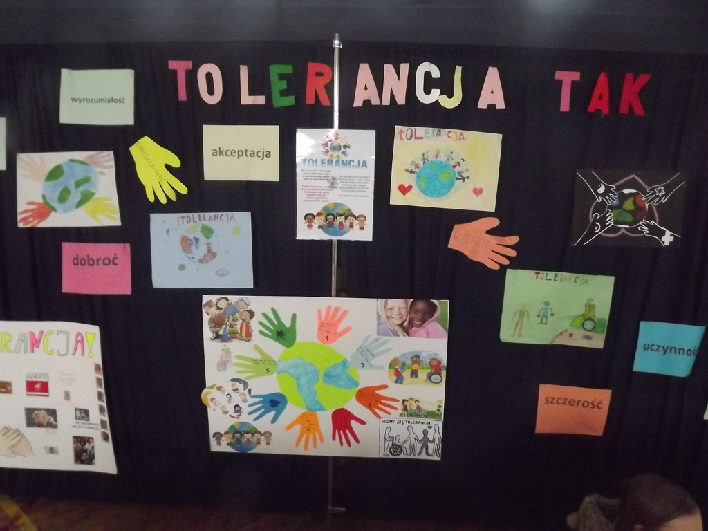 Pod koniec listopada już tradycyjnie obchodzimy światowy Dzień Tolerancji. W naszej szkole w poniedziałek, 28 .11, mieliśmy okazję przypomnieć sobie , co tak naprawdę oznacza to słowo i jak na co dzień możemy wcielać je w życie. Nie chodzi przecież o to , aby raz do roku pamiętać o zrozumieniu dla innych, ale w każdej sytuacji , zwłaszcza tej szkolnej, kierować się zasadami tolerancji: