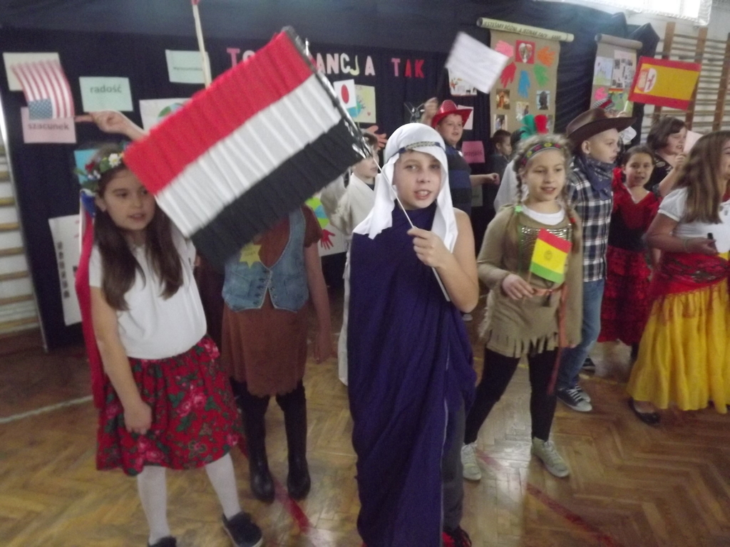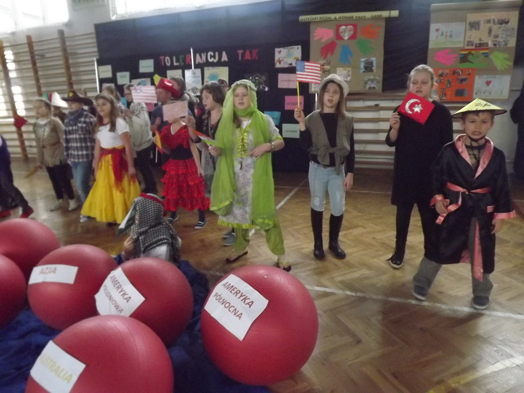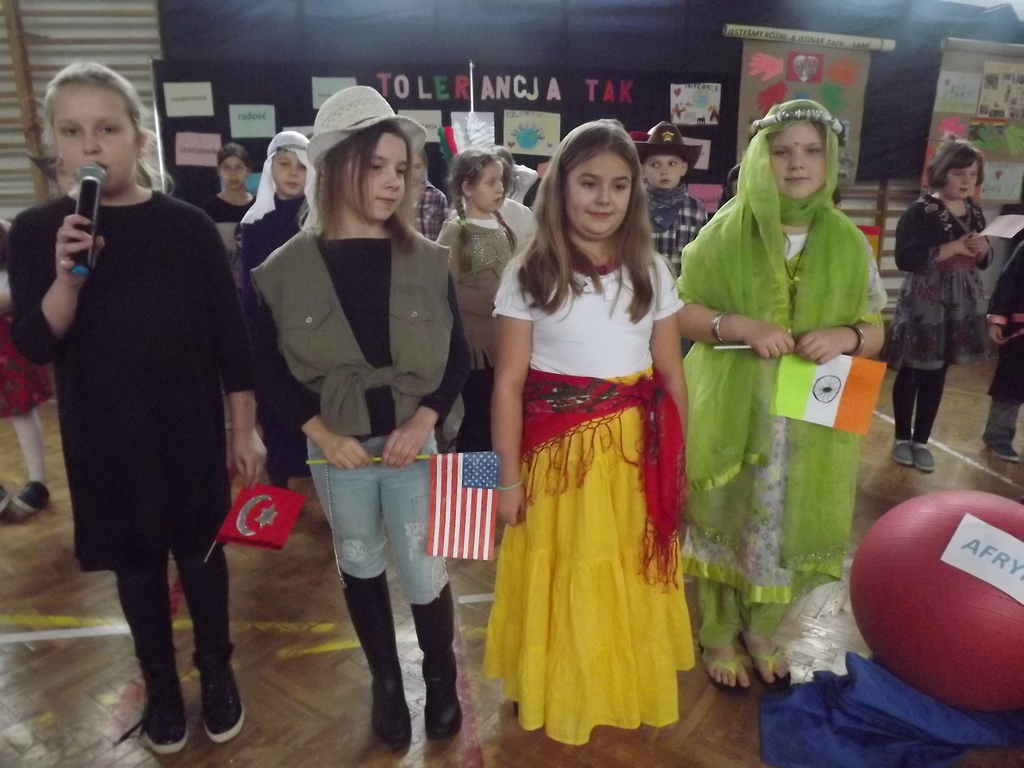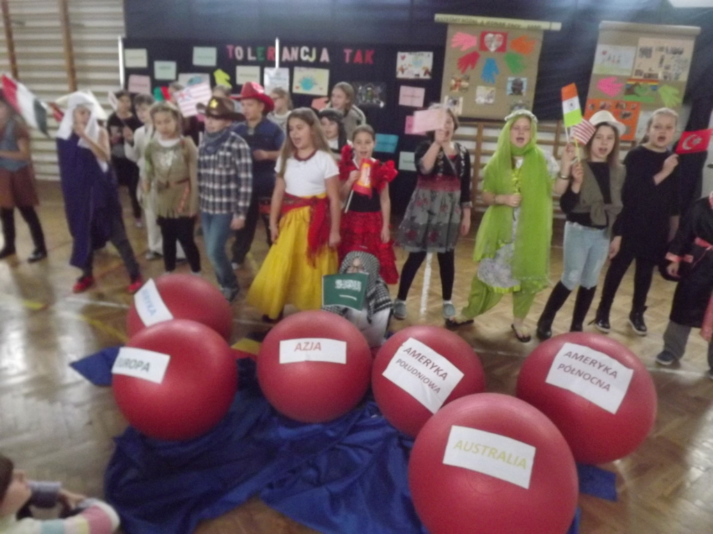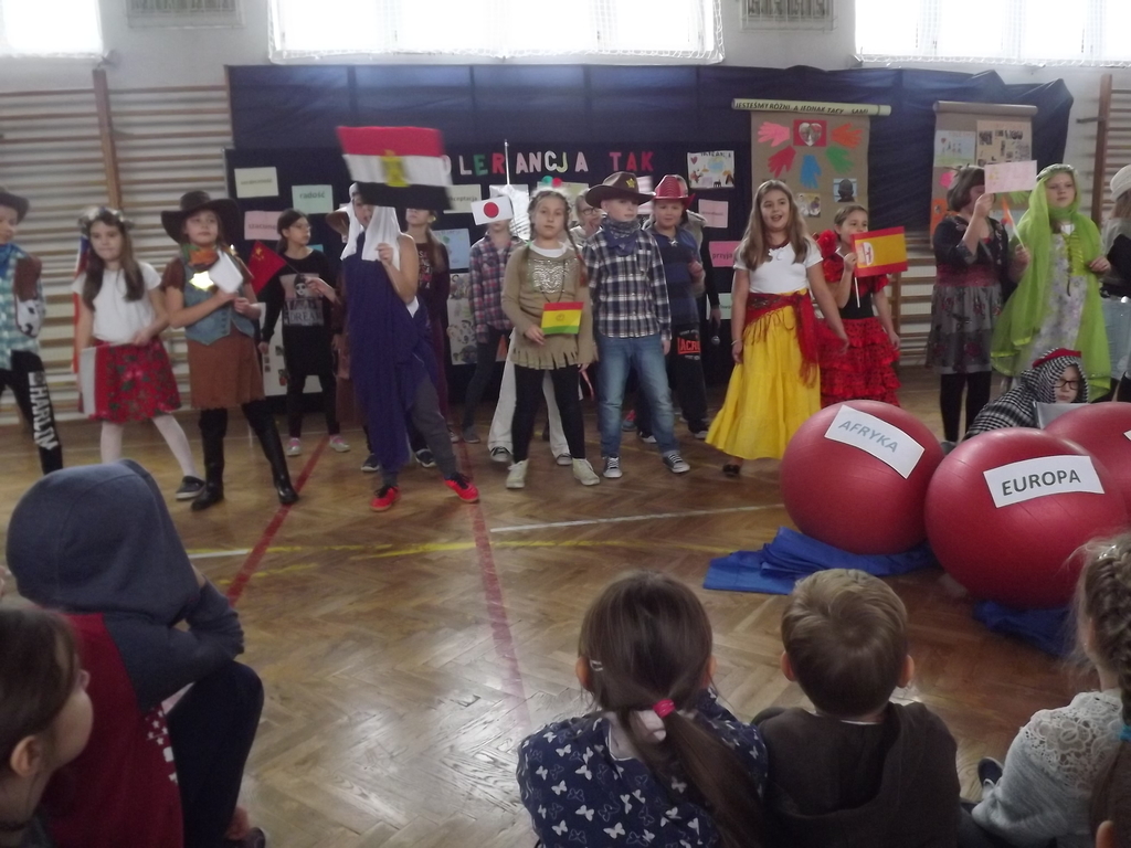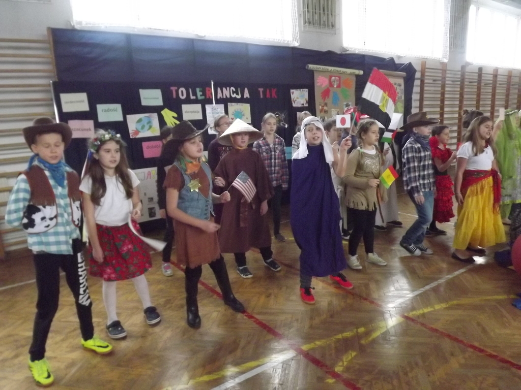 Wszystkim na pewno spodobał się występ uczniów klasy III, którzy pod kierunkiem wychowawczyni, pani Barbary Krzyszczak – Szuby brawurowo wykonali piosenki „Kolorowe dzieci” i „Tolerancja”. Każde dziecko w kolorowym przebraniu symbolizowało przedstawicieli wszystkich kontynentów. Z kolei uczennice klasy VI przypomniały zasady kodeksu dobrego kolegi i znaczenie szanowania zdania innych. Apelowi towarzyszyła wystawa prac uczniów , poświęcona tematyce tolerancji.