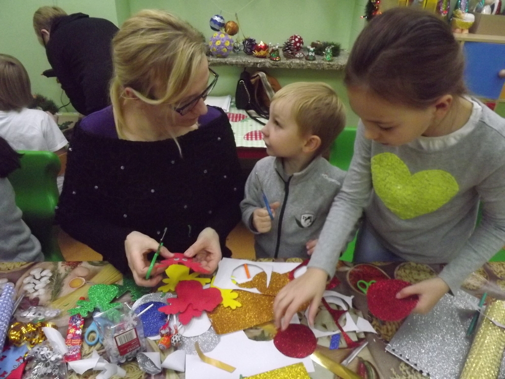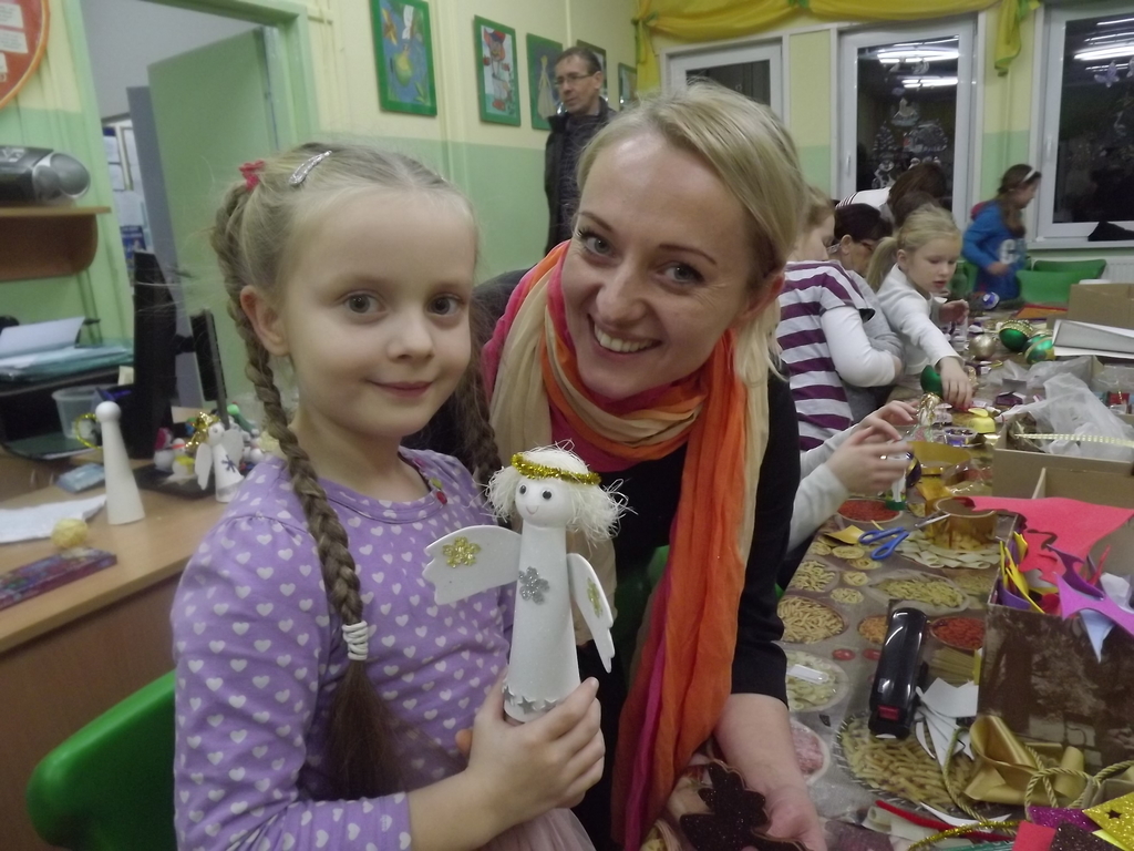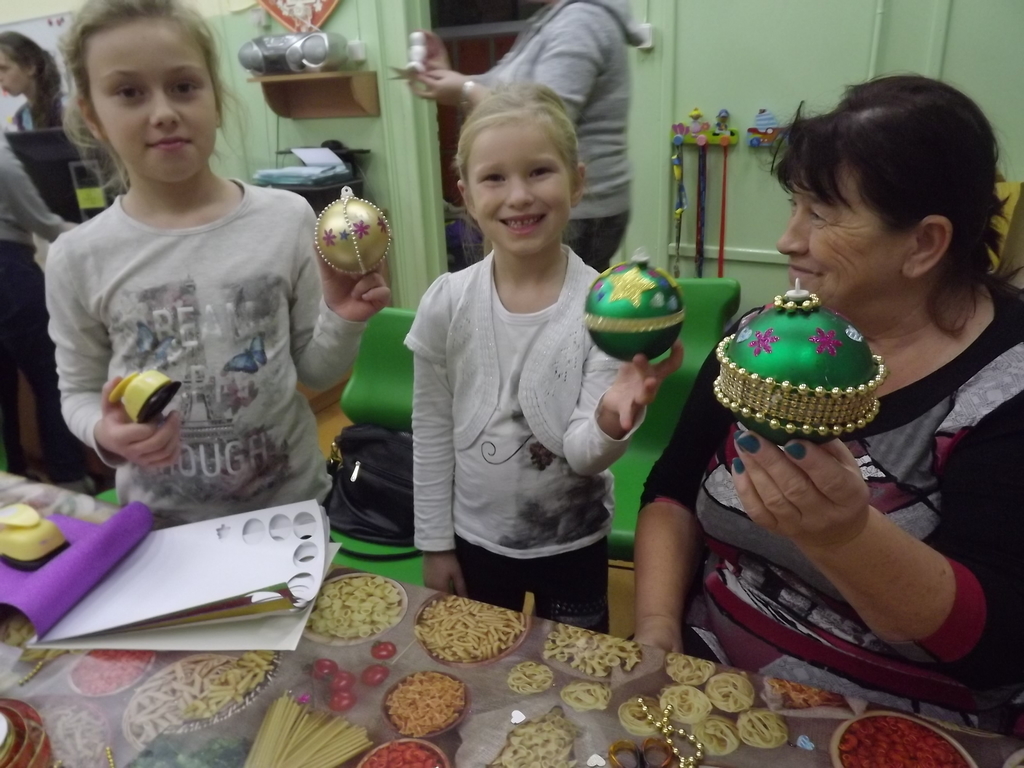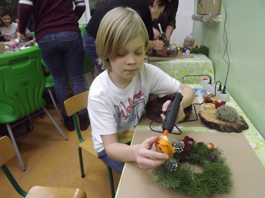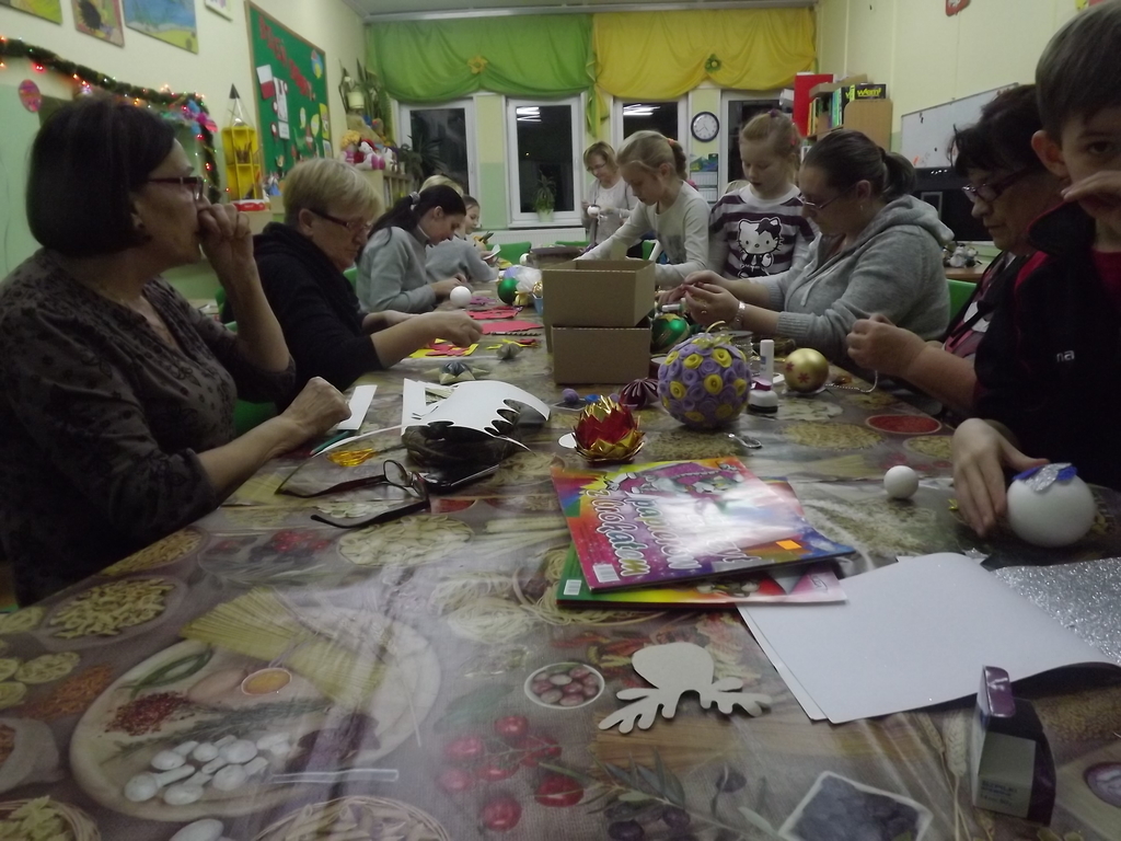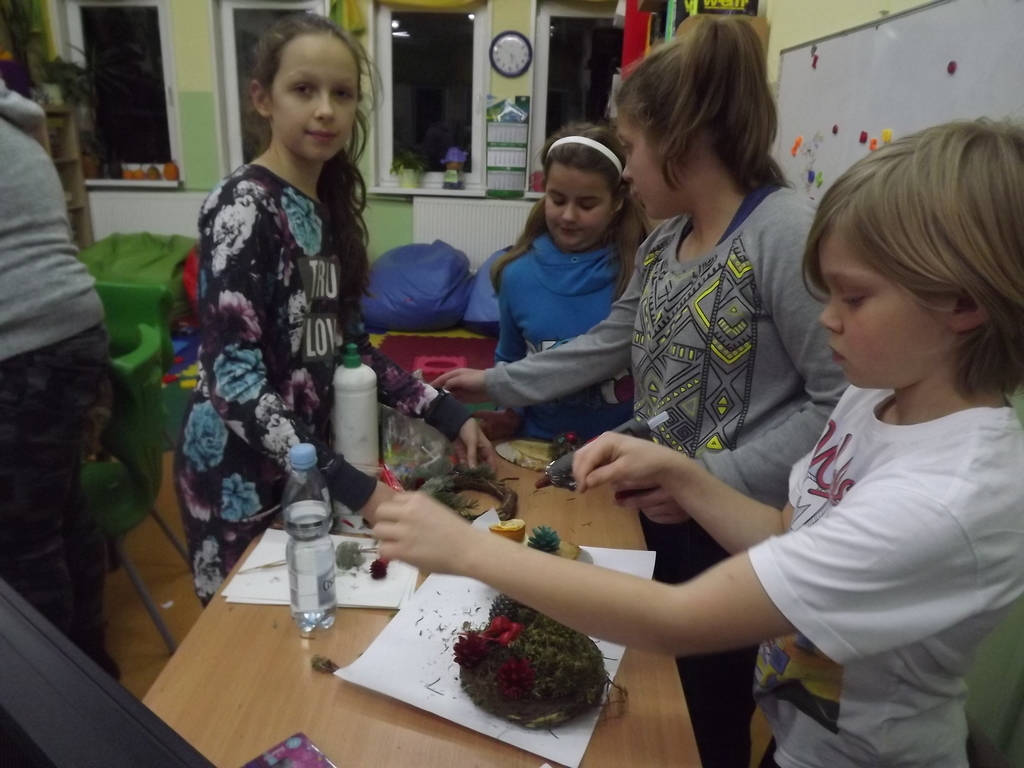 Już tradycyjnie w okresie poprzedzającym święta Bożego Narodzenia świetlica szkolna organizuje warsztaty , podczas których wykonywane są ozdoby choinkowe, stroiki , bombki. W tym roku do pomysłodawczyni , pani Małgorzaty Szczepanik, rodziców i dzieci dołączyły uczestniczki klubu „Kobiety z pasją. ”Przypomnijmy, że ta inicjatywa była realizowana w ramach projektu Otwockiego Centrum Kultury „Kulturalne Ruszenie w Wólce Mlądzkiej.”Warsztaty odbyły się w czwartek, 1 .grudnia i trwały od godziny 16 do 19 . Podczas tych paru godzin powstawały oryginalne stroiki z wykorzystaniem naturalnych surowców, wspaniałe wieńce bożonarodzeniowe czy mieniące się tęczowo bombki choinkowe. Wspólna praca zjednoczyła trzy pokolenia – babcie, mamy i dzieci. ,W sali świetlicowej było gwarno, panie wymieniały się pomysłami na ciekawe ozdoby, a spod paluszków najmłodszych wychodziły bałwanki, renifery, aniołki. Nikt się nie nudził, trzeba było nawet czekać w kolejce na najbardziej „poszukiwane„ wzory wycinanek. Wszystkie wykonane przez siebie ozdoby można było zabrać do domu, aby podczas świąt dekorowały nasze domy. Dziękujemy paniom, które zasiliły własnoręcznie przez siebie przygotowanymi materiałami zasoby świetlicy oraz wszystkim uczestnikom warsztatów.