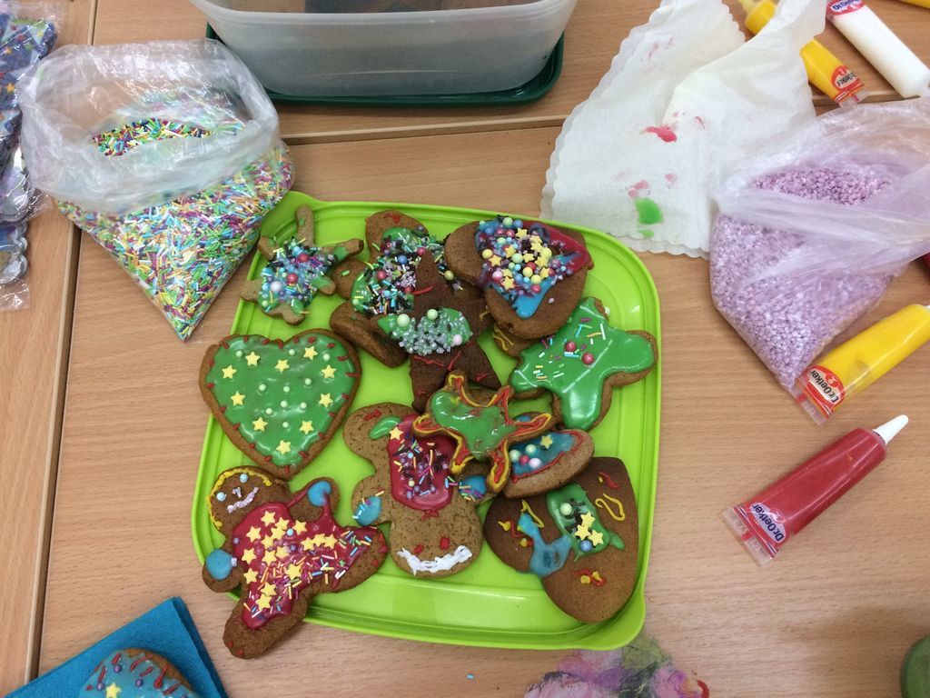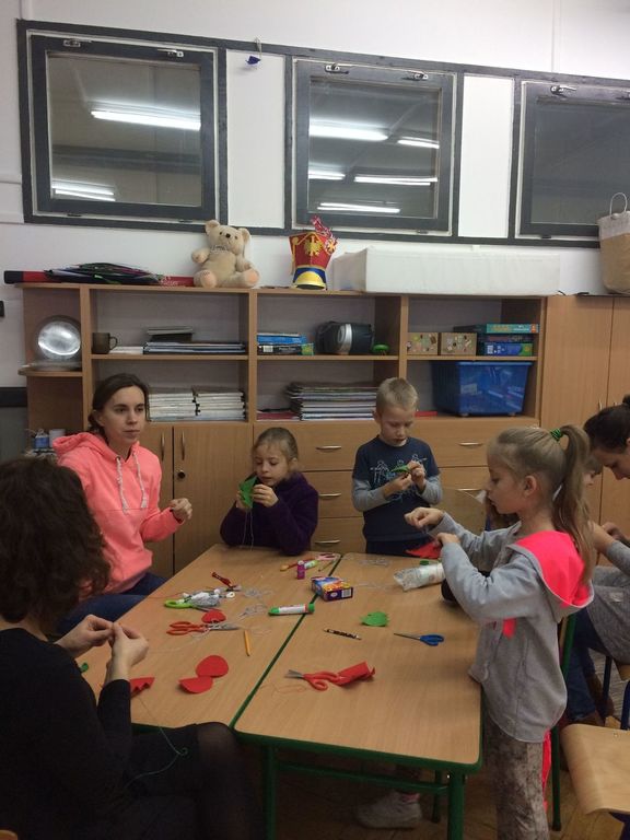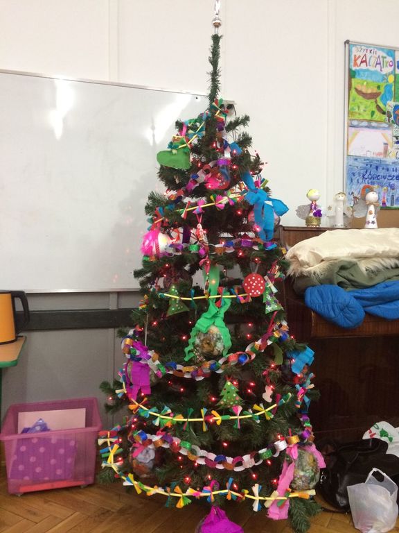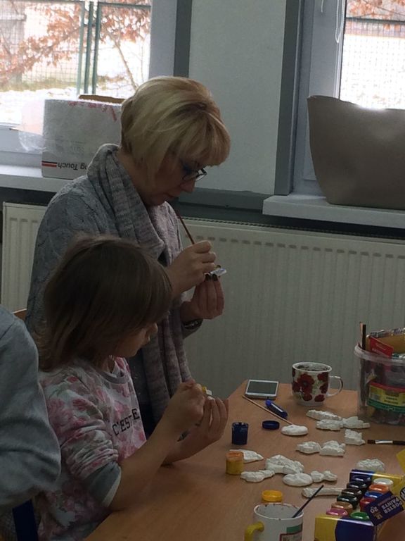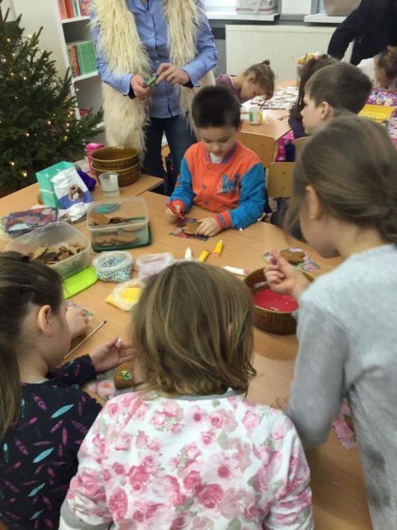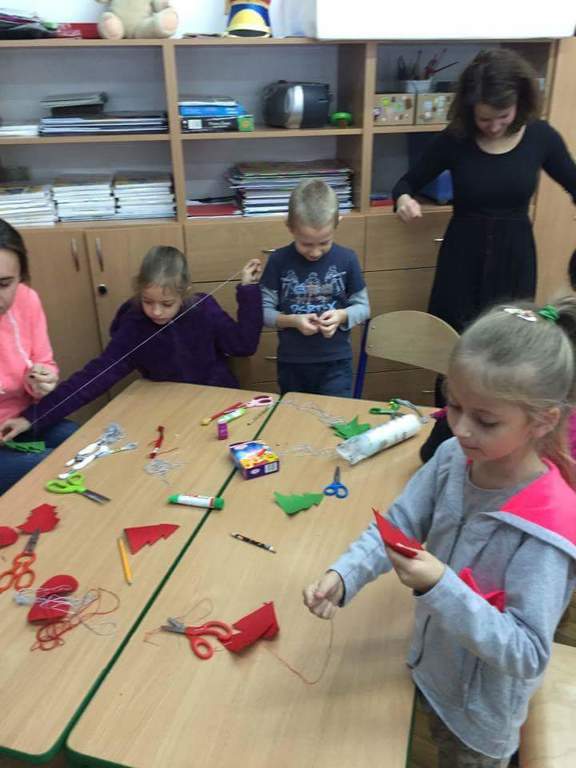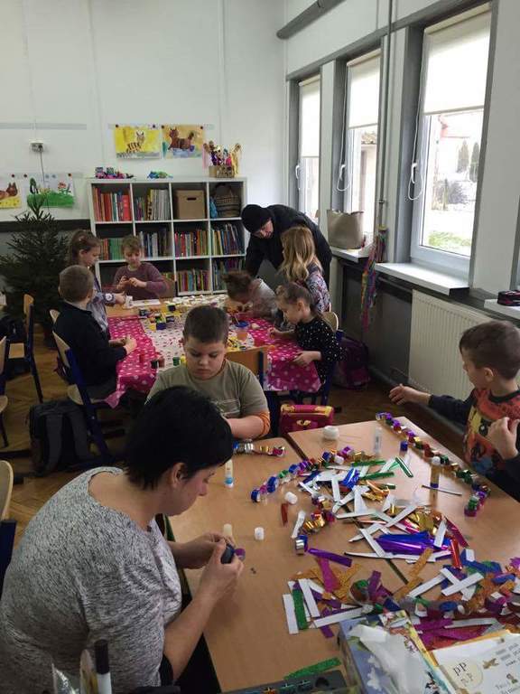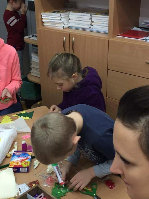 W przygotowanych stanowiskach można było wykonać bombkę z masy papierowej,opisać pierniczki,uszyć filcową choinkę,pomalować gipsową zawieszkę,czy przygotować bardzo długi łańcuch choinkowy.