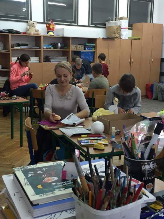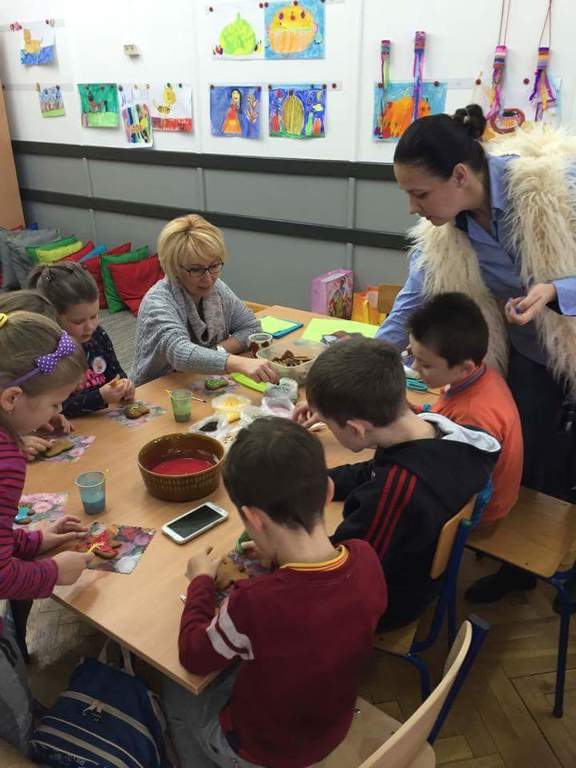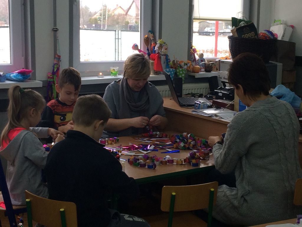 Warsztatom towarzyszyła miła,rodzinna atmosfera.Efektem wspólnej pracy są prześliczne ozdoby,a można je obejrzeć w sali nr 26.