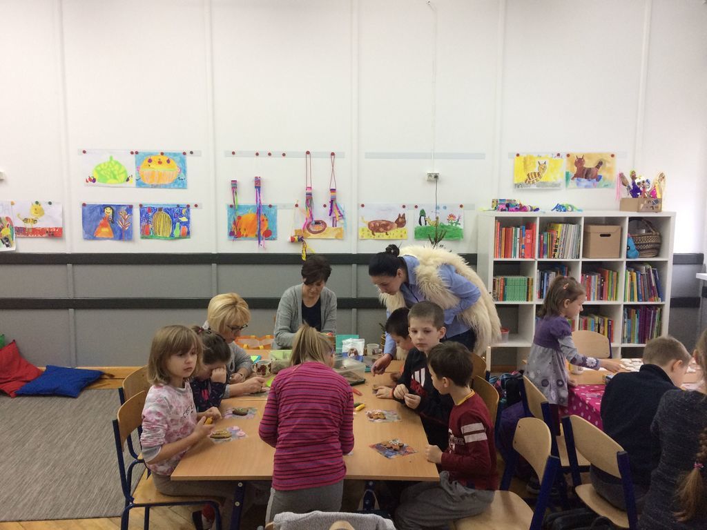 8 grudnia w klasie pierwszej odbyły się warsztaty świąteczne.Dzieci wraz z mamami przygotowywały ozdoby bożonarodzeniowe.Warsztaty poprzedziła lekcja czytania.Lekturą "Przygody detektywa Noska", mama Szymona Zuchniewicza wprowadziła dzieci w świąteczny nastrój.