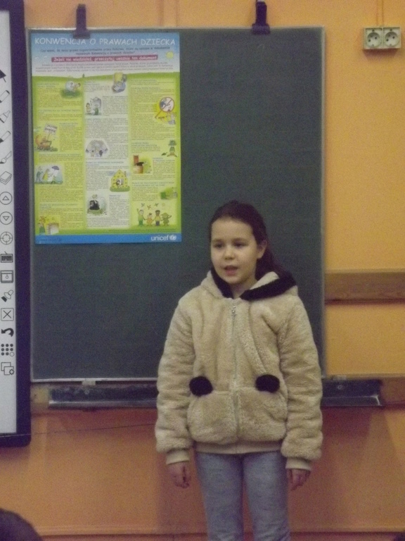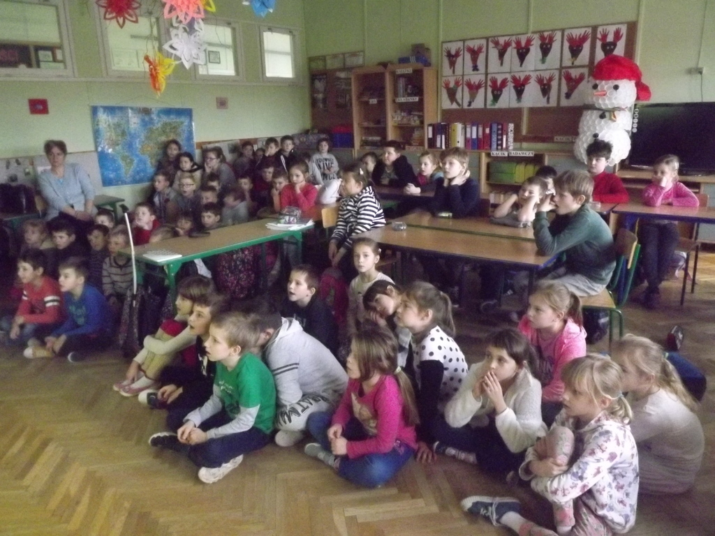 10 XII 2016 r. obchodziliśmy Międzynarodowy Dzień Praw Człowieka. Z tej okazji uczniowie klas drugich i trzecich wzięli udział w spotkaniu z Panią psycholog –Katarzyną Żero. Celem pogadanki było przybliżenie dzieciom praw człowieka oraz uwrażliwienie na potrzeby innych, zwłaszcza tych, którzy żyją w krajach, gdzie toczy się wojna. Uczniowie dowiedzieli się, że prawo do nauki jest przywilejem, a nie „przykrym obowiązkiem”. W trakcie rozmowy dzieci przypomniały sobie też swoje obowiązki wynikające z roli ucznia, kolegi, Polaka…