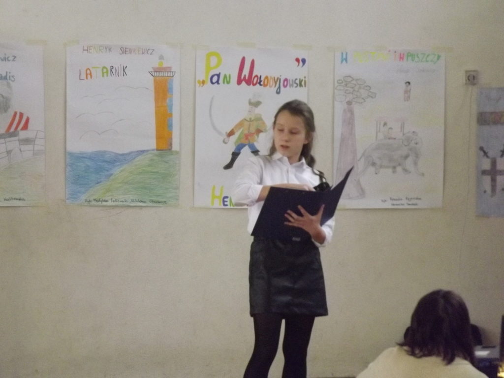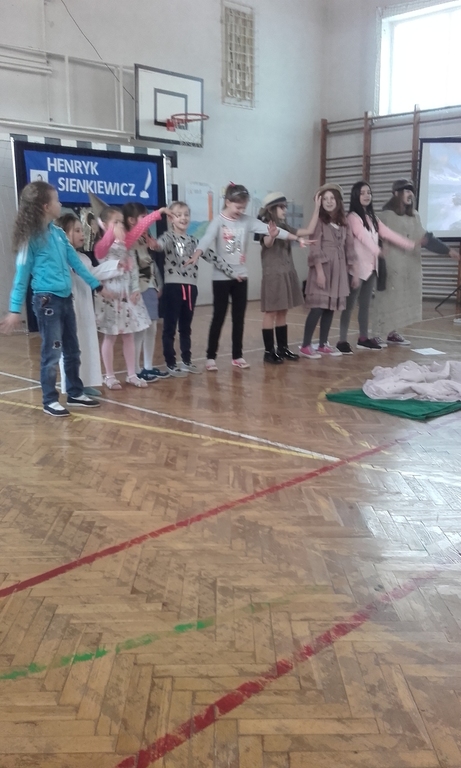 Pierwsze półrocze dla klas IV-VI było czasem realizowania projektu edukacyjnego związanego z obchodami „Roku Sienkiewicza”. Zakończył się on w grudniu, a w ostatni poniedziałek nadszedł czas prezentacji wykonanych zadań. Pod kierunkiem nauczycieli matematyki, języka polskiego, języka angielskiego, przyrody, muzyki i plastyki uczniowie przygotowali występy, inscenizacje i szereg prac.
