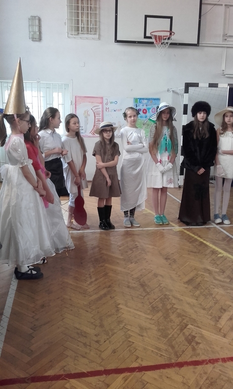 Uroczystość rozpoczął występ Koła Muzycznego, które zaprezentowało utwór „Rzeka marzeń” z ekranizacji powieści „W pustyni i w puszczy.”Później obejrzeliśmy multimedialne prezentacje uczennic klasy VI na temat książek Henryka Sienkiewicza i podróży Stasia i Nel. W ramach projektu Koło Teatralne przygotowało inscenizację „Bajki” H. Sienkiewicza, a także wręczono nagrody w Konkursie Wiedzy na temat utworów naszego noblisty. Na lekcjach matematyki i języka polskiego uczniowie wykonali projekt mieszkania w baobabie i makiety przestrzenne prezentujące sceny z powieści „W pustyni i w puszczy.”Można było także obejrzeć plakaty prezentujące twórczość pisarza zarówno w języku polskim jak i po angielsku. Największą atrakcją okazał się chyba pokaz mody , na którym uczniowie prezentowali się w strojach bohaterów z książek Sienkiewicza. Pojawili się i rycerze ,i pan Wołodyjowski , i Oleńka , i uczniowie przebrani za Janka Muzykanta .Największą popularnością cieszyła się wśród dziewcząt Nel Rawlison. Oprawą muzyczną pokazu były ścieżki dźwiękowe z ekranizacji powieści Henryka Sienkiewicza.