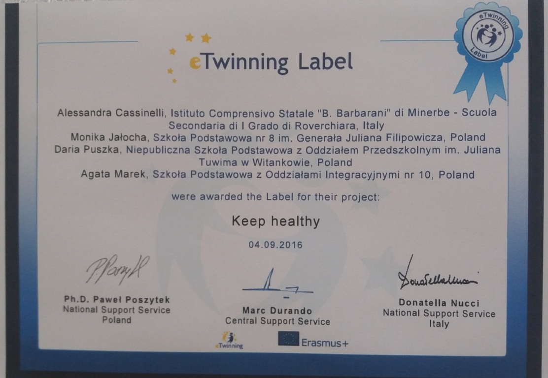 W pierwszym półroczu obecnego roku szkolnego chętni uczniowie z naszej szkoły wzięli udział w projekcie e-twinning, którego pomysłodawcą był nauczyciel języka angielskiego. Do projektu włączyła się między innymi szkoła z Włoch i dwie szkoły z Polski. Projekt nosił tytuł ‘Keep healthy’ i podzielony był na kilka zadań, na których realizację każdy z uczestników miał określony czas. Językiem komunikacji ze wszystkimi uczestnikami projektu był język angielski. W pierwszym etapie uczestnicy fotografowali swoje zdrowe przekąski, kolejno opisywali je w kilku zdaniach i zamieszczali na platformie ‘twinspace’. Następnie, uczniowie tworzyli książki kucharskie z wykorzystaniem prezentacji multimedialnych. W kolejnym etapie uczestnicy nagrali realizację wybranych przez siebie przepisów. Następnym etapem było przygotowanie zestawu ćwiczeń, które pomagają dbać o zdrowie i formę. Ostatnim zaś etapem projektu było stworzenie plakatów zachęcających do prowadzenia zdrowego trybu życia, zwracania uwagi na to co jemy i zwiększania swojej aktywności fizycznej. Wszyscy uczestnicy projektu sumiennie realizowali zadania, co pozwoliło na zwiększenie swobody komunikowania się w języku angielskim z rówieśnikami. Był to pierwszy i na pewno nie ostatni projekt e-twinning w naszej szkole.