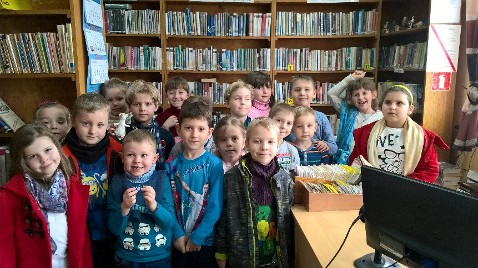 Po krótkiej prezentacji i zapoznaniu się z księgozbiorem biblioteki uczniowie poznali różnice między biblioteką szkolną a publiczną. Następnie wysłuchali dwóch zabawnych wierszyków ze zbioru „Przysłowia Polskie. Rymowanki dla dzieci tj. „”Pogodowe psoty czyli w marcu jak w garncu” oraz „Budowanie samolotu czyli co dwie głowy to nie jedna”.