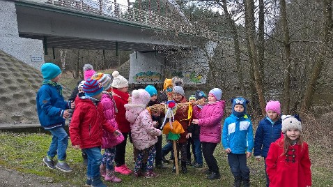 Zaniepokojeni pozostawioną przed biblioteką Marzanną udali się wszyscy nad rzekę Świder, znajdującą się w bliskim sąsiedztwie biblioteki, aby tam pożegnać zimę.