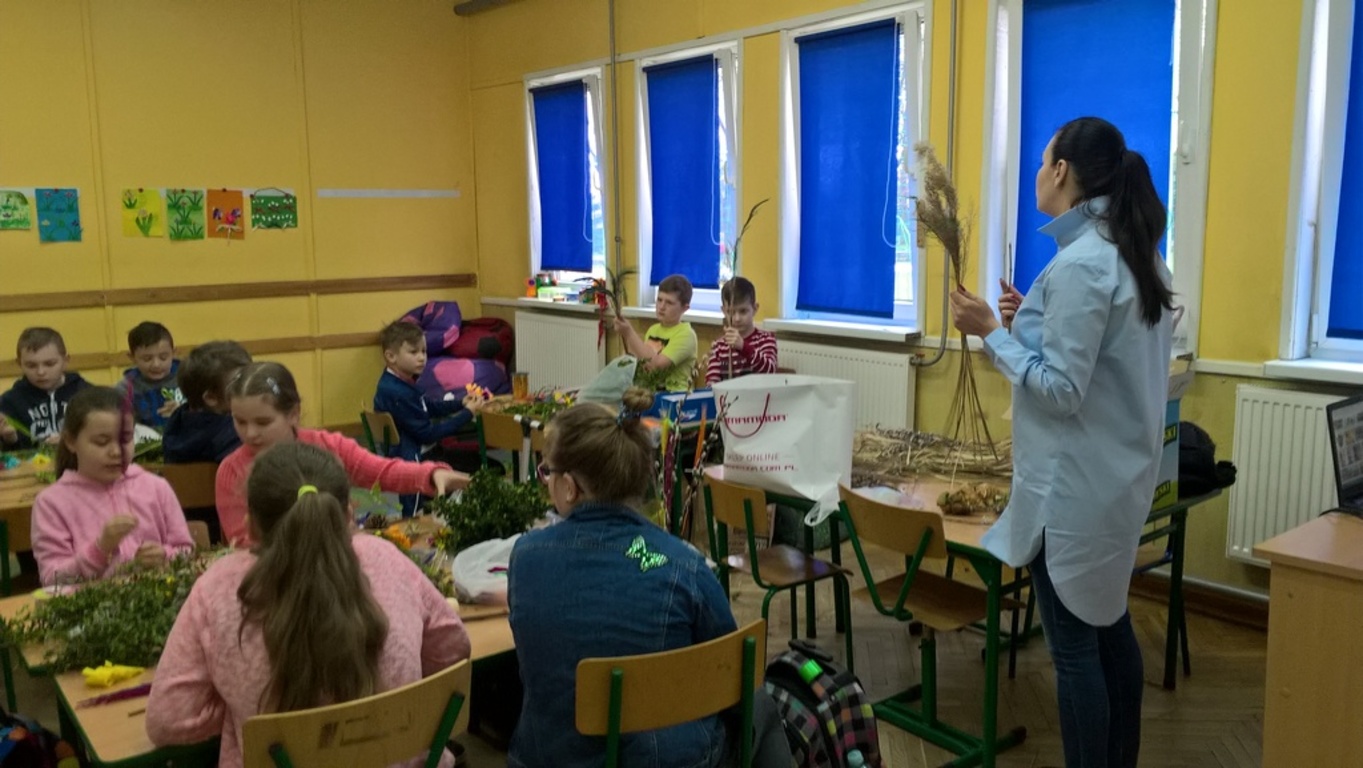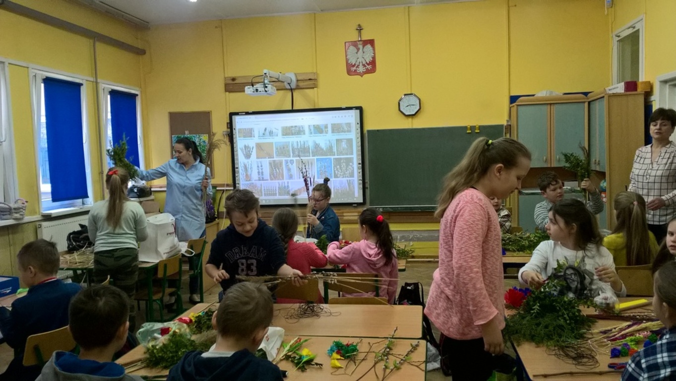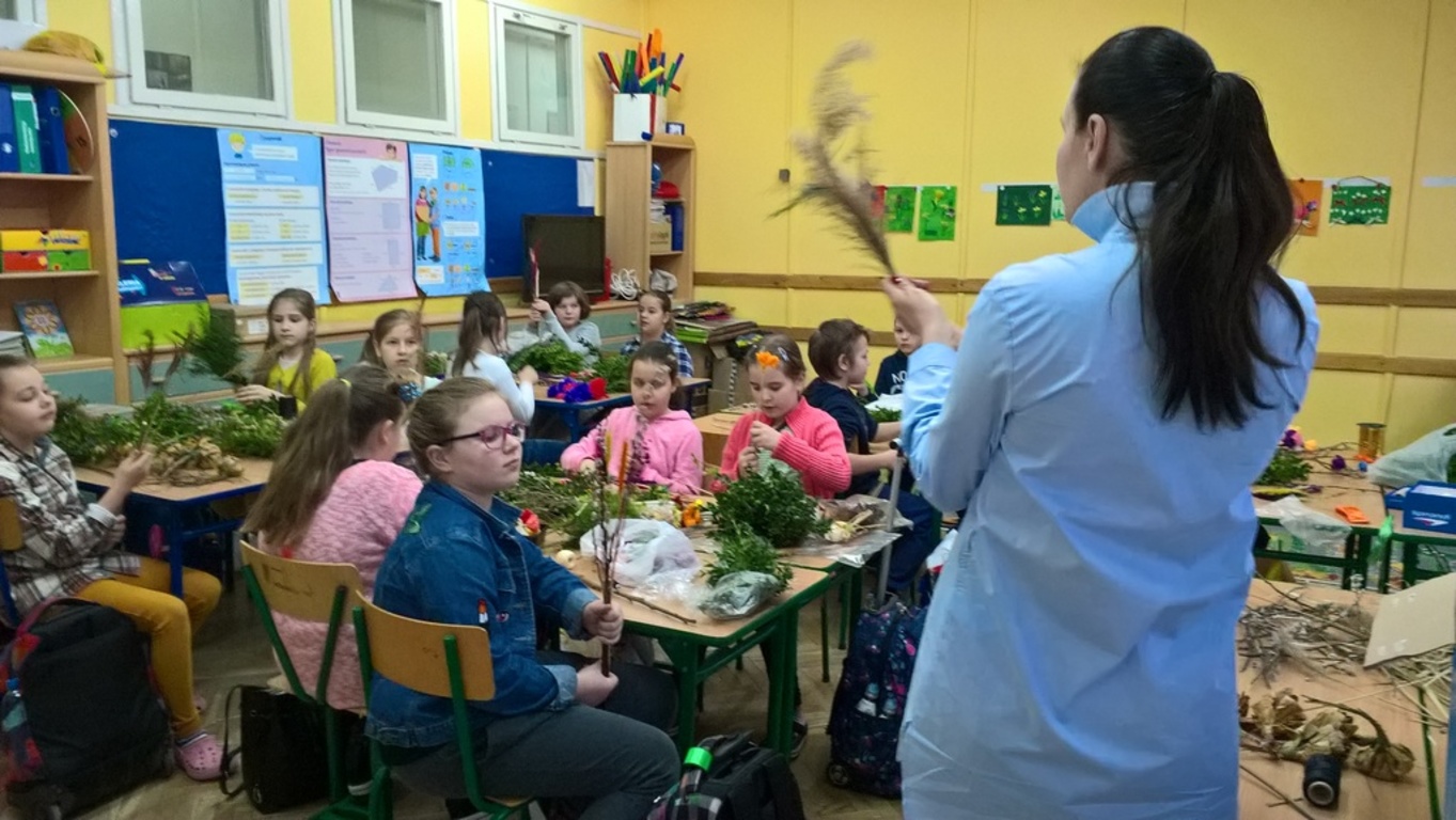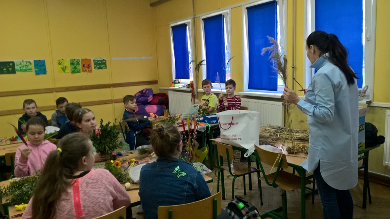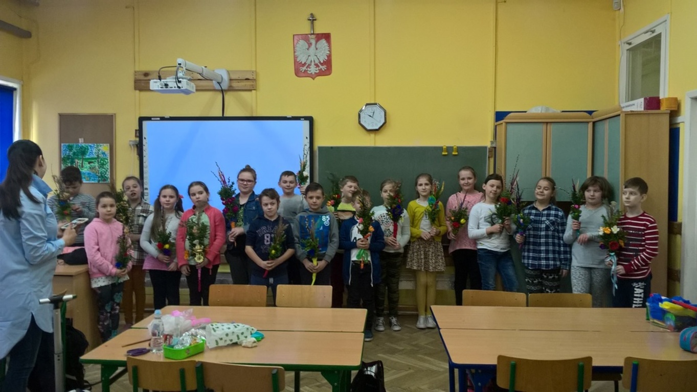 Dnia 06.04.2017 r. uczniowie klasy IIIB robili świąteczne palemki. Inicjatorką pomysłu była Pani Ewelina Gaumer - Mama jednej z uczennic. Do wykonania palemek dzieci wykorzystały bazie, gałązki bukszpanu, kolorowe kwiaty z bibuły oraz suszone trawy. Własnoręcznie zrobione palemki z pewnością będą piękną ozdobą wielkanocnego stołu.