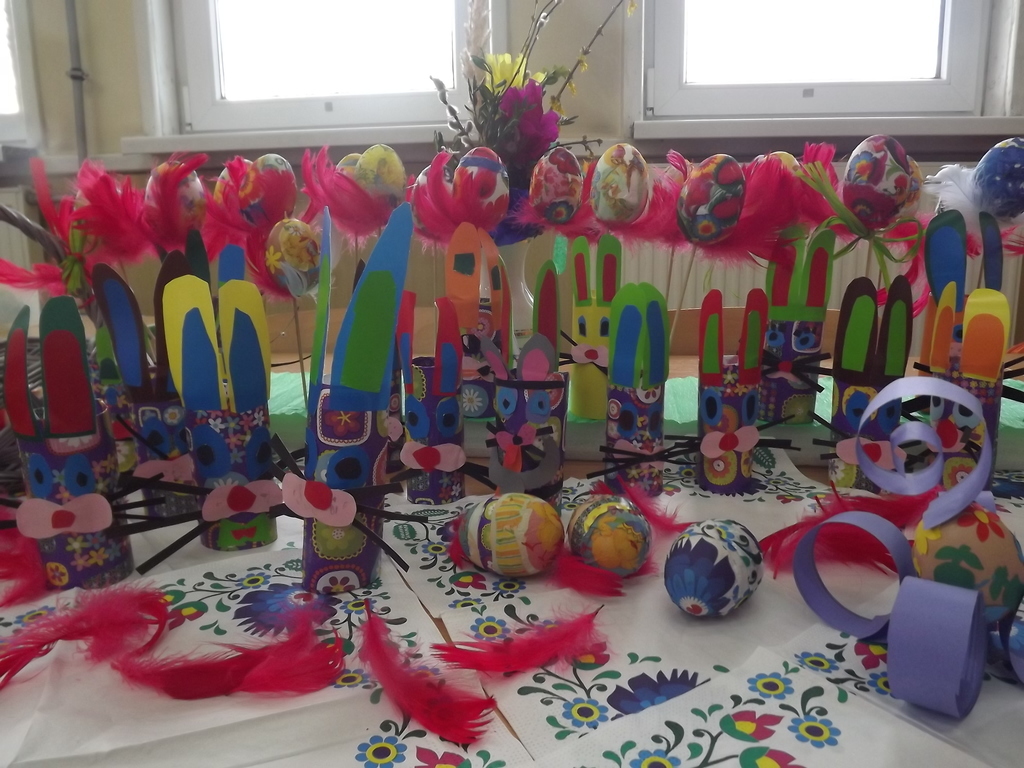 10 kwietnia 2017r. odbyły się w zerówce warsztaty wielkanocne. Dzieci zrobiły wesołe zajączki oraz piękne, kolorowe pisanki. Dziękujemy za pomoc mamie Alana - pani Renacie Buławie. A oto efekty naszej pracy.