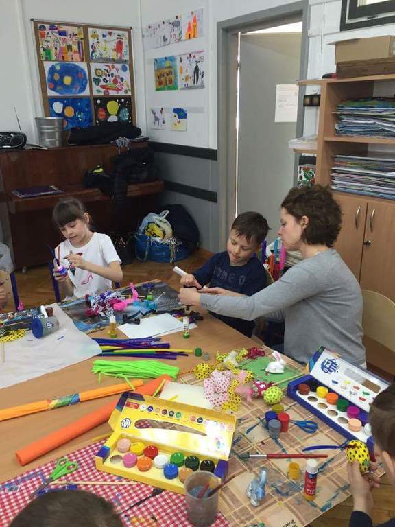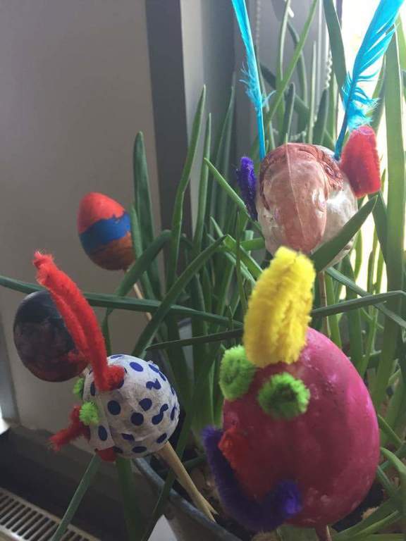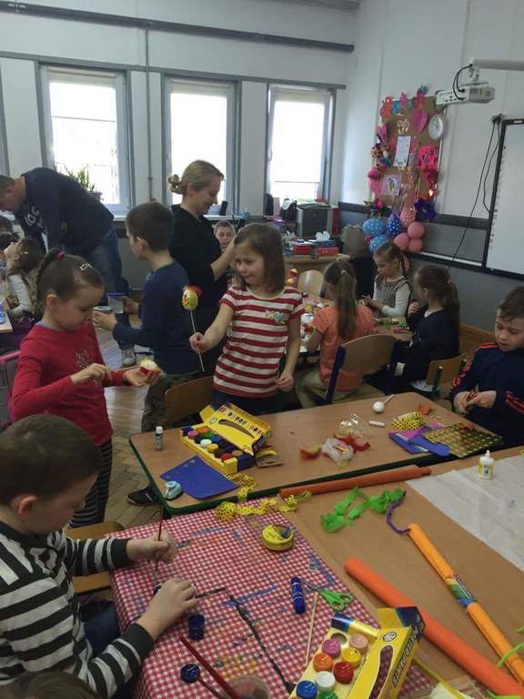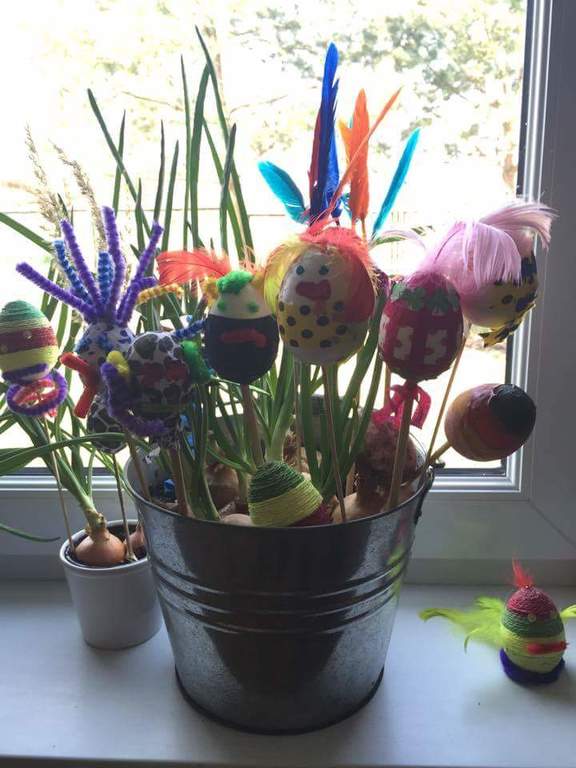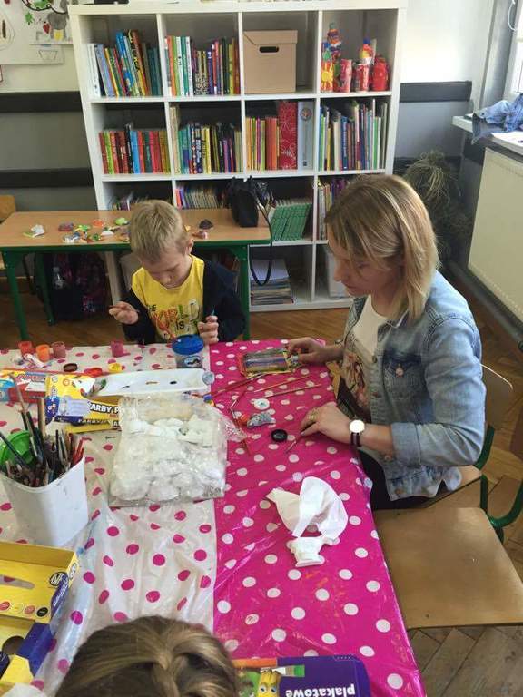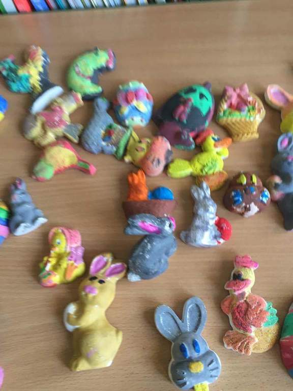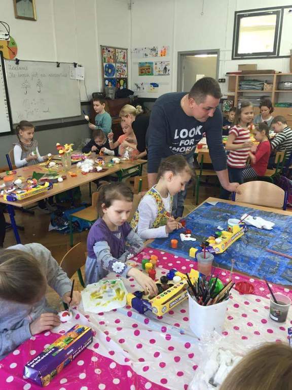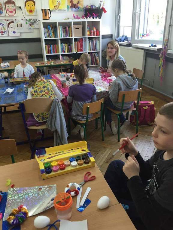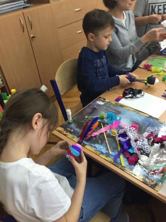 Tradycyjnie dzieci z rodzicami przygotowywały ozdoby wielkanocne: pisanki, gipsowe koguciki, zajączki i baranki.