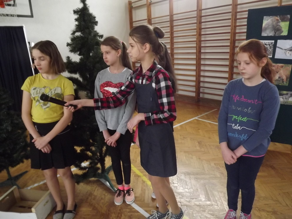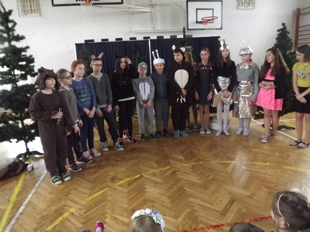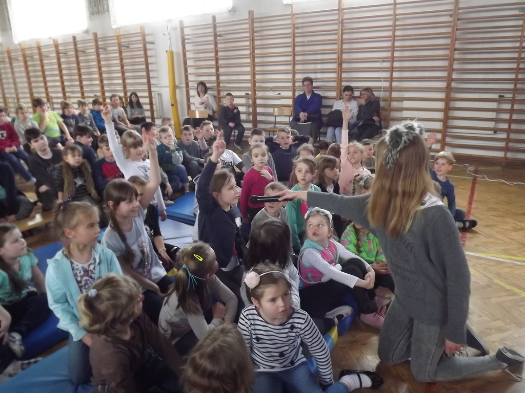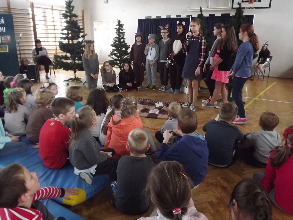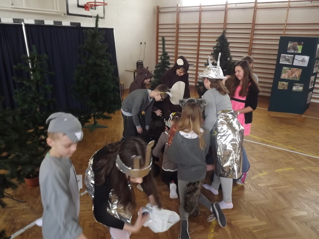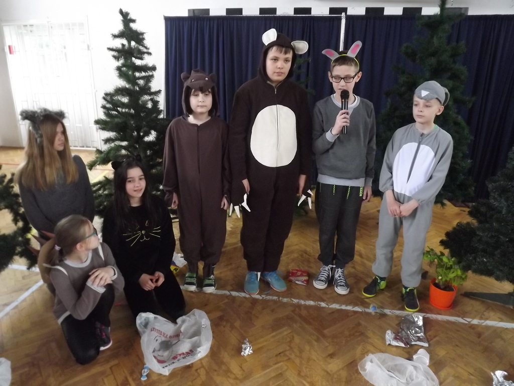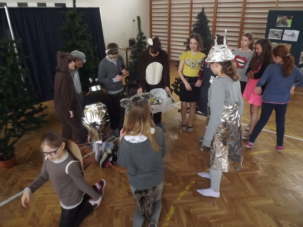 Na koniec najmłodsze dzieci mogły uczestniczyć w krótkim quizie na ,,Młodego przyrodnika”, odpowiadając na pytania związane z przyrodą zadawane przez zwierzątka bohaterów naszej inscenizacji.