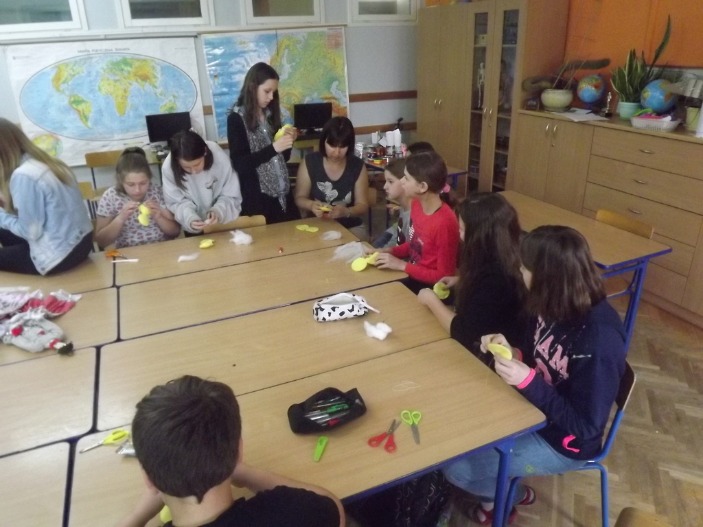 Realizując zadania zawarte w szkolnym Programie Wychowania i profilaktyki : ,,Spotkania z ludźmi z pasją”, 15.05.2017 klasa piąta uczestniczyła w warsztatach artystycznych, które poprowadziła pani Tatiana Prosanti z Mołdawii. Była to nagroda dla uczniów tej klasy za zajęcie pierwszego miejsca w szkolnym konkursie na plakat i najciekawsze hasła związane z tematem:,, Uzależnieniom-nie”. Warsztaty sfinansowała Rada Rodziców.