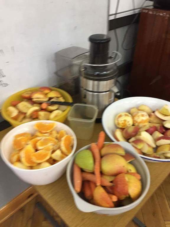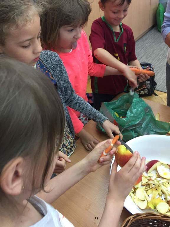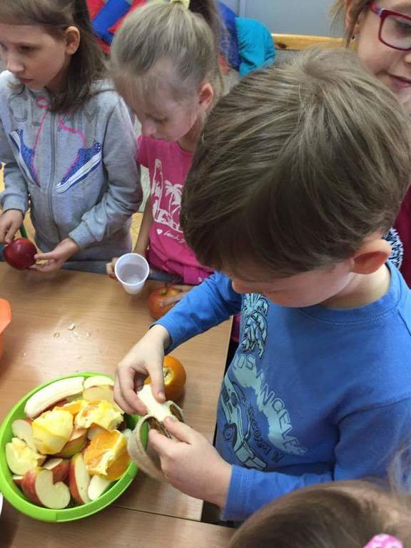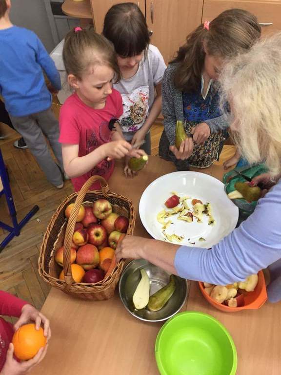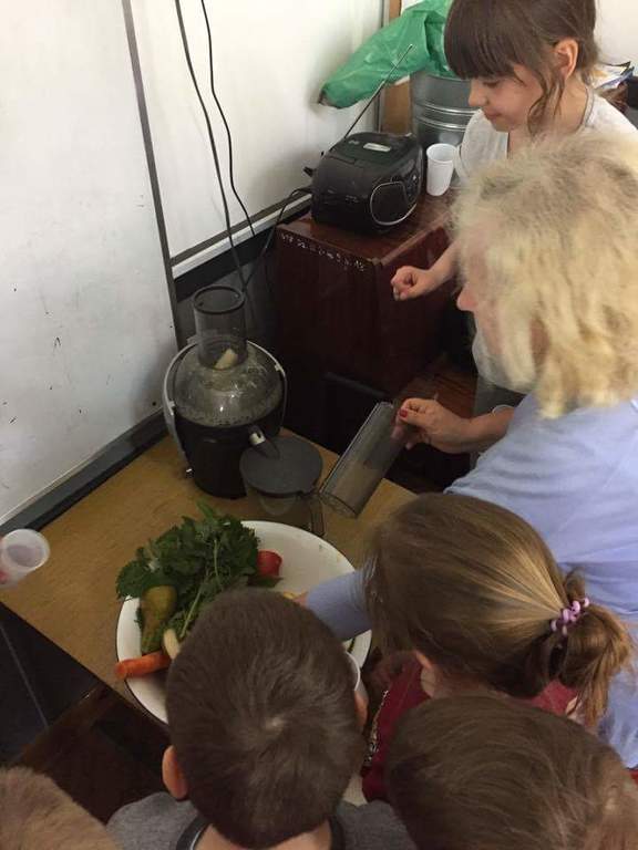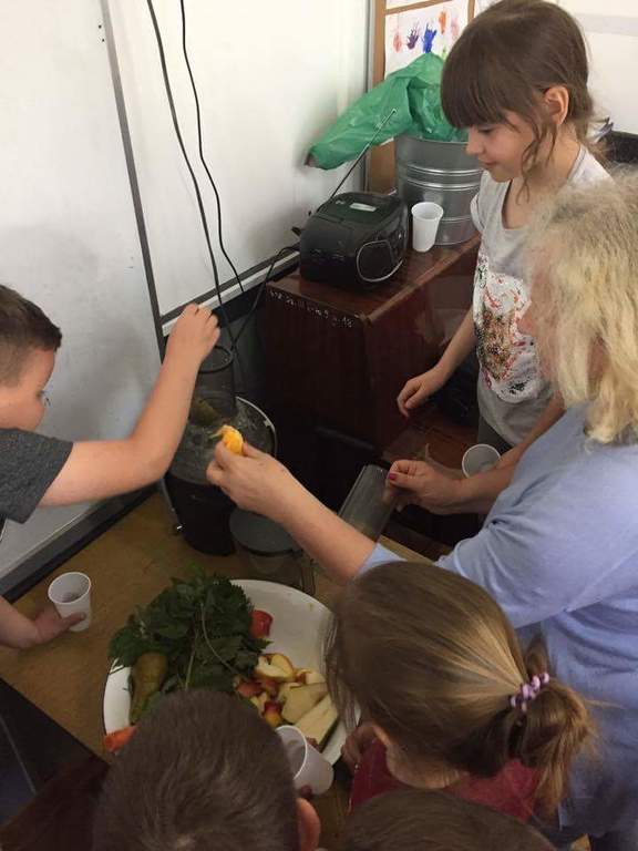 W ramach realizacji Programu ,,Trzymaj Formę” 09. 05.2017r. w kl. I-III odbyły się spotkania z dietetykiem. Nasi uczniowie wykazali duże zainteresowanie tematem zdrowej, prawidłowo zbilansowanej diety . Tematyka zdrowego odżywiania kontynuowana była przez kolejne dwa dni w formie kawiarenki ,, Soki i musy” w klasie pierwszej. Uczniowie z przyniesionych przez siebie owoców i warzyw przygotowywali zdrowe i smaczne soki i musy. Szczególną ciekawość smaku wzbudził u uczniów dodatek świeżej pokrzywy jako źródła żelaza i witamin . Uczniowie uzupełnili wiedzę o zdrowym odżywianiu podczas spotkania z pielęgniarką szkolną. Mamy nadzieję, że zdobyte umiejętności i wiedzę wykorzystają w przygotowaniu wspólnych posiłków z rodziną .