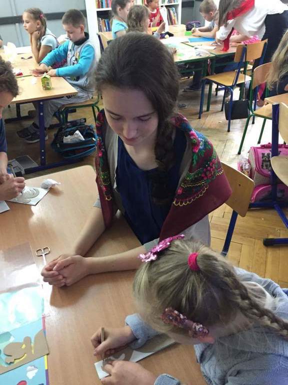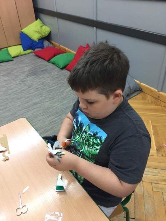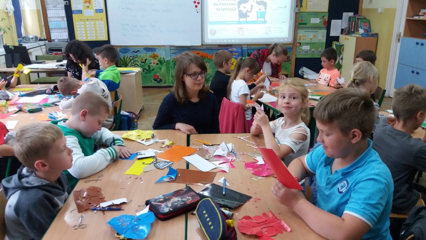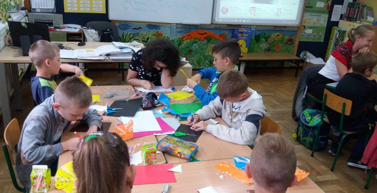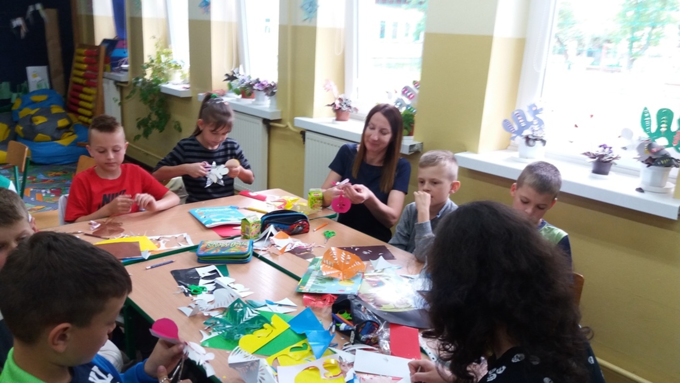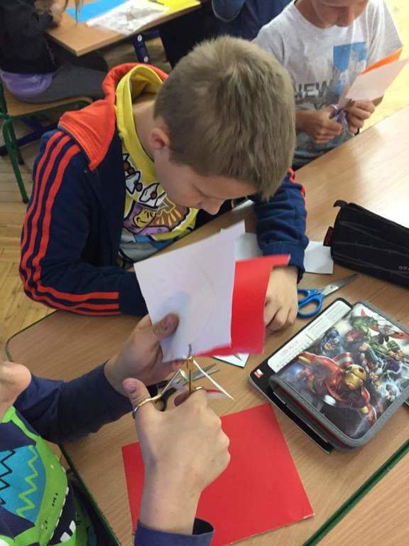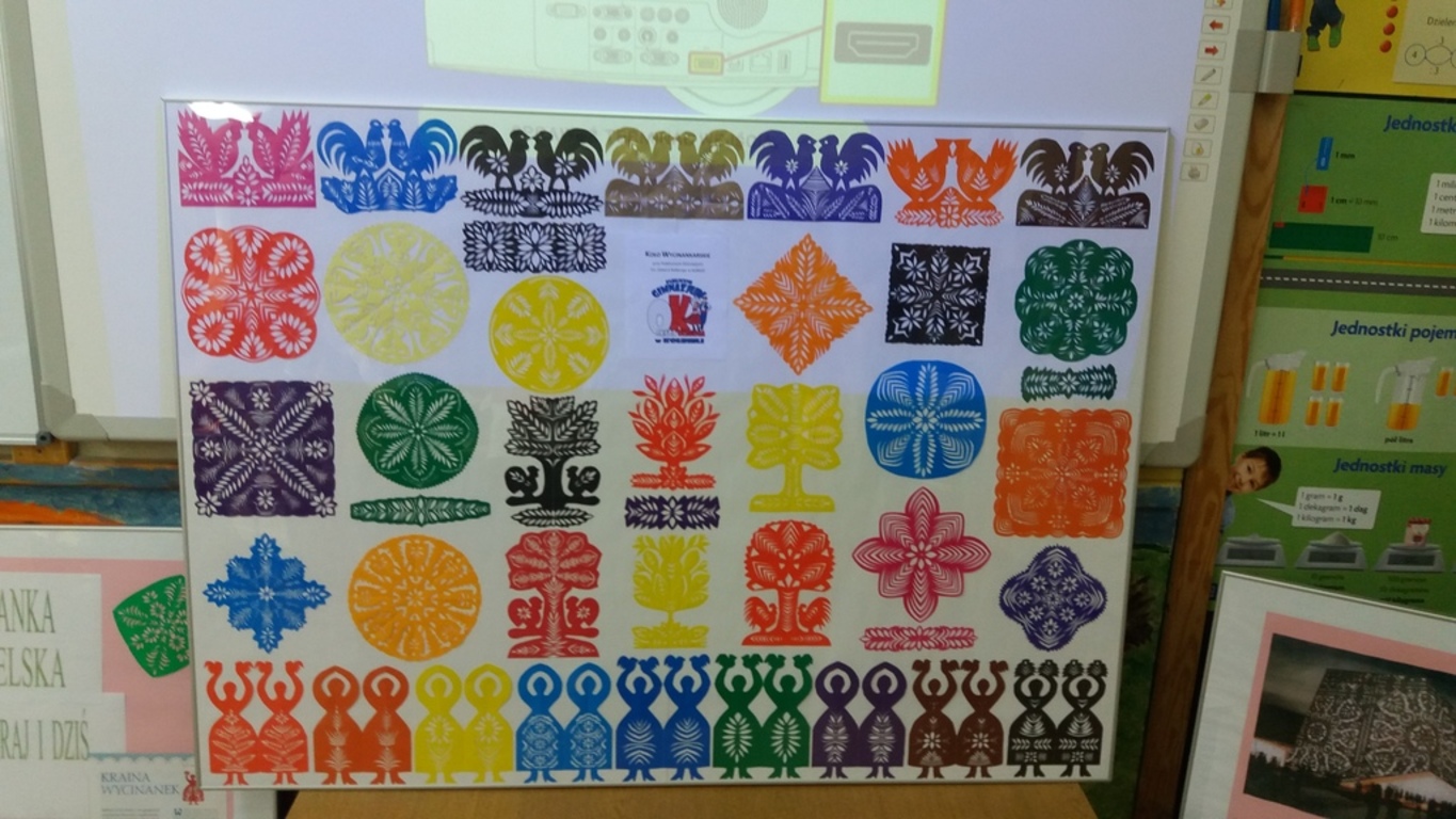 Dzięki kontaktom zawiązanym podczas jarmarku wielkanocnego udało się do naszej szkoły zaprosić uczniów kołbielskiego gimnazjum im. Oskara Kolberga , którzy wraz z opiekunką przyjechali 13 czerwca na warsztaty plastyczne. Organizacją zajęć zajęła się p. Elżbieta Dziewulska, dzięki której mogły w nich uczestniczyć klasy I, II a i VI. Okazało się ,że wycinanki w klasie VI najlepiej wychodziły chłopcom, którzy odkryli w sobie prawdziwy talent i wykazali się dużym zaangażowaniem, co widać na zdjęciach. Dzięki tym zajęciom nie tylko nauczyliśmy się techniki wycinania, ale przybliżyliśmy sobie tradycje naszego regionu i doceniliśmy naszą „małą ojczyznę.”