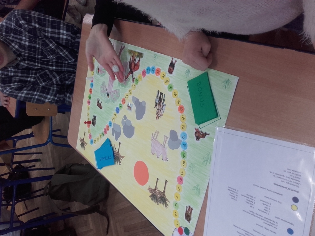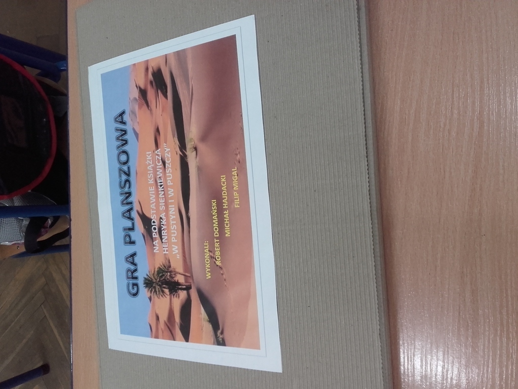 Lektura nie zawsze dobrze kojarzy się uczniom, zwłaszcza jeśli jest długa i obfituje w wiele wydarzeń. W tym roku szkolnym uczniowie klasy V przygotowywali w grupach gry planszowe oparte na powieści „W pustyni i w puszczy.” Okazało się ,że niektóre prace były tak starannie wykonane, miały piękne opakowania i pokrowce, że wyglądały jak zrobione profesjonalnie. Żal byłoby nie wykorzystać takich gier, więc uczniowie przystąpili do ich testowania. Niektóre instrukcje zawierały naprawdę trudne zadania do wykonania. Myślę, że była to ciekawa forma pracy na języku polskim.