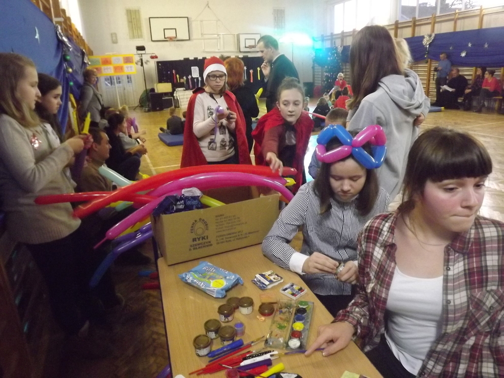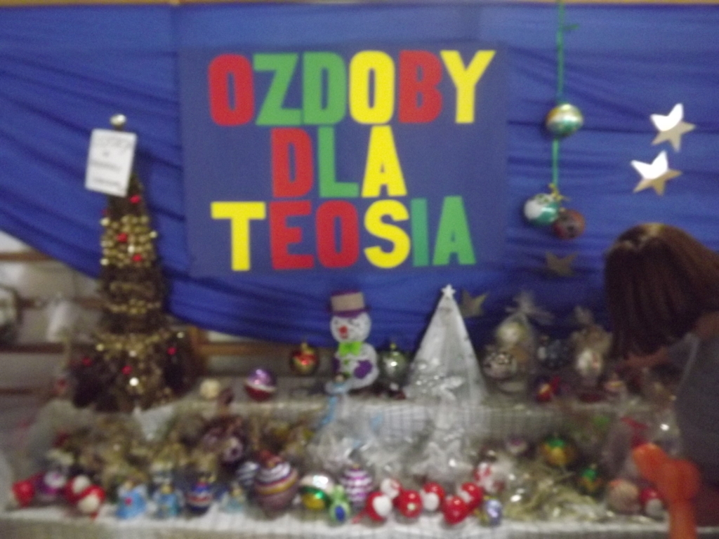 Można było też samemu zostać Mikołajem, bo w czasie spotkania trwał kiermasz ozdób świątecznych wykonanych przez wolontariuszy z otwockich szkół, w tym także z naszej Ósemki. Całość zebranych funduszy została przekazana na rzecz małego Teosia, który czeka na kosztowną operację. Zresztą przybył on też ze swoją rodzina na spotkanie z Mikołajem.