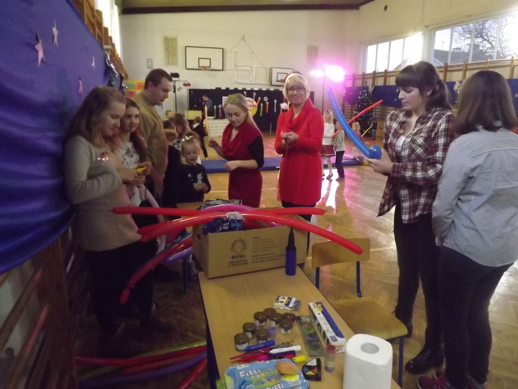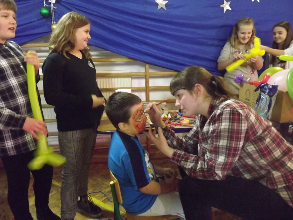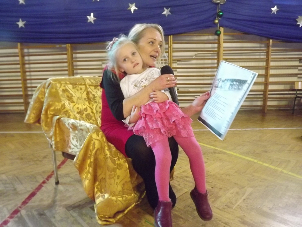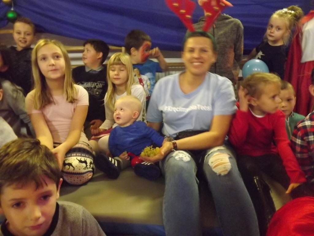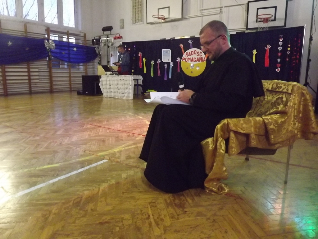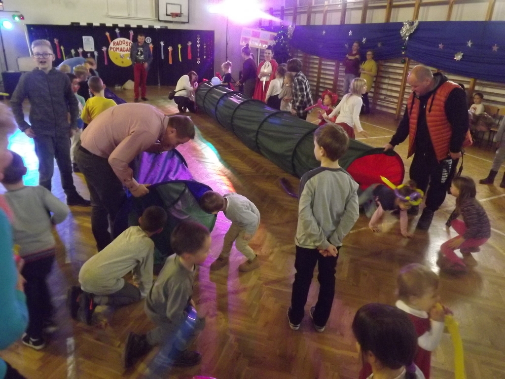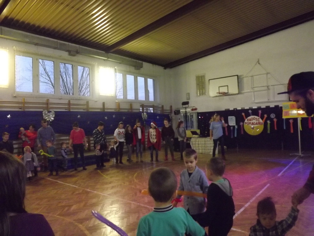 Zjednoczenie Apostolstwa Katolickiego działające przy parafii we współpracy z naszą szkołą w niedzielę, 10 grudnia, zorganizowało świąteczne spotkanie z Mikołajem. Zaproszono na nie wszystkie dzieci, zwłaszcza licznie przybyły te najmłodsze. Gośćmi honorowymi byli :pani dyrektor Agnieszka Korniluk, ks. proboszcz Robert Turyk i przewodnicząca Rady Rodziców pani Kamila Radomska-Piętka. Przeczytali oni dzieciom świąteczne bajki, a później rozpoczęła się zabawa. Centralnym punktem było przybycie Mikołaja, który wszystkim milusińskim rozdał prezenty. Ustawiła się długa kolejka, ale dzięki pomocy Śnieżynek szybko uporano się z podarunkami.