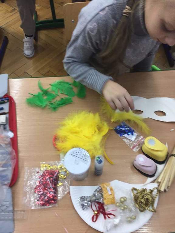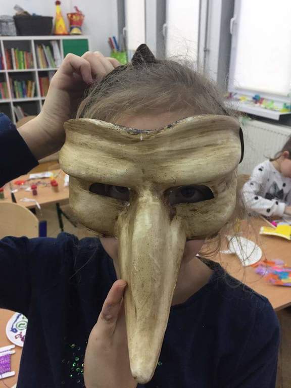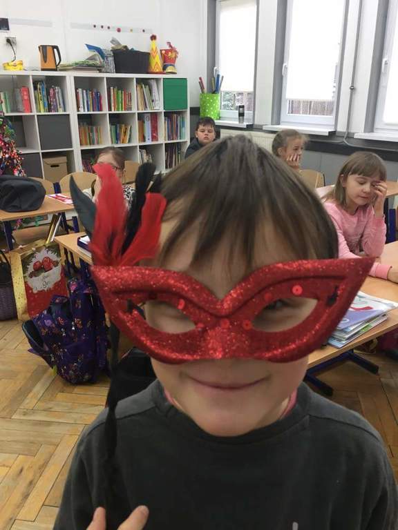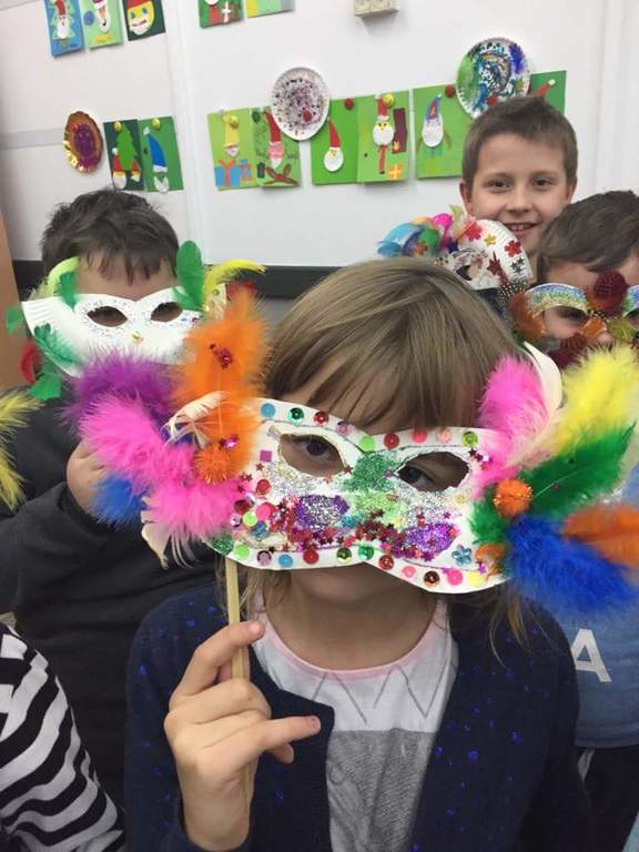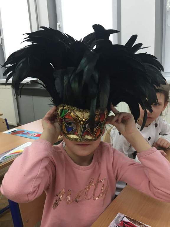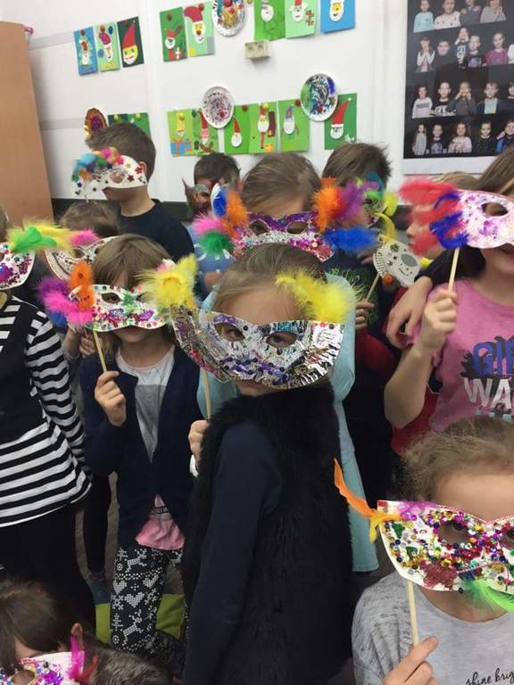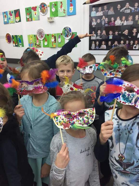 Czas Bożego Narodzenia rozpoczyna okres zimowych bali,maskarad i zabaw.Bawią się ludzie na wszystkich kontynentach,a w Europie najhuczniej i najpiękniej Wenecjanie.Na tę okazję przygotowują barwne,teatralne maski.Ta tradycja sięga bez mała 900 lat. Klasa druga zainspirowana oryginalnymi maskami weneckimi,przyniesionymi przez mamę Szymona,przygotowała maski na zbliżający się bal karnawałowy w szkole. Wychowawczyni i dzieci z klasy drugiej bardzo dziękują p. Katarzynie Rutkowskiej ,że w tak zapracowanym tygodniu przedświątecznym znalazła czas na przygotowanie warsztatów.Powstały małe dzieła sztuki. Zapraszamy do obejrzenia zdjeć .