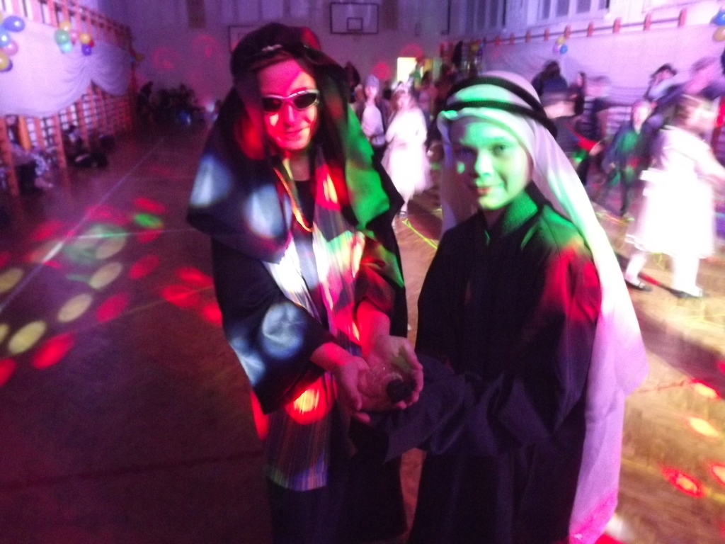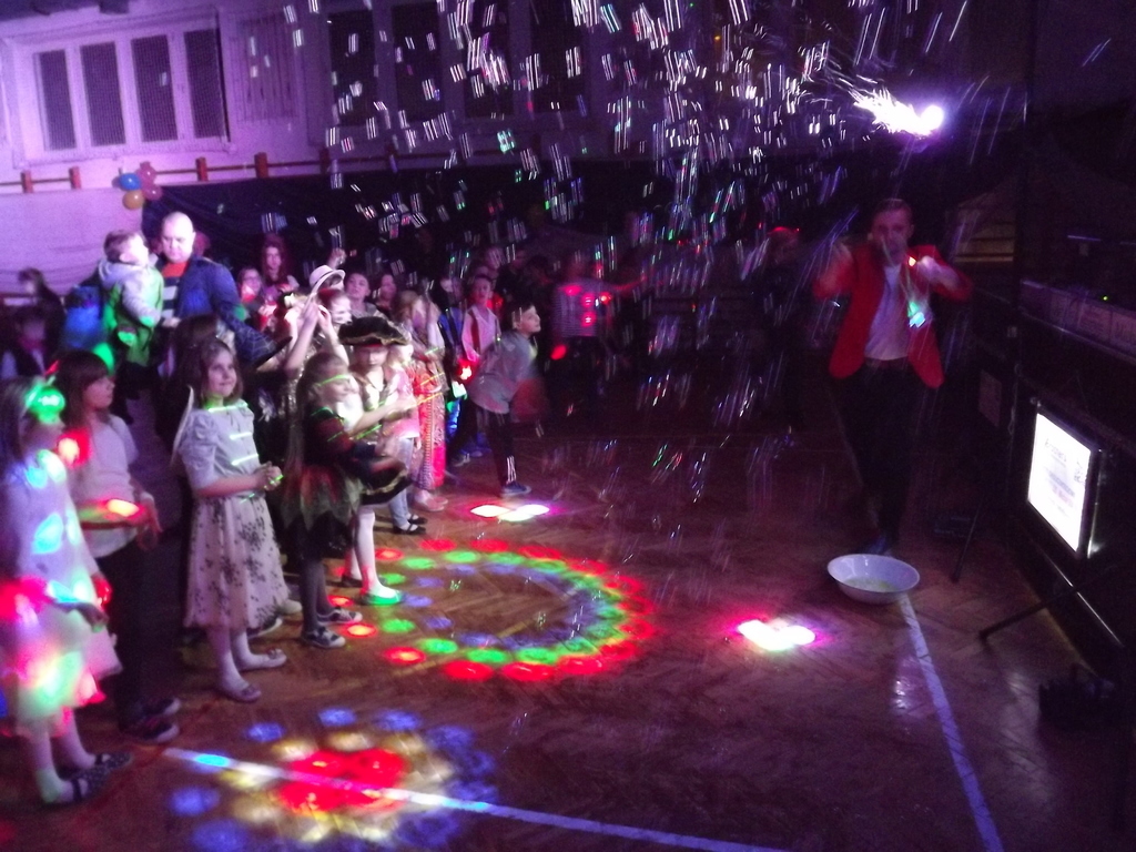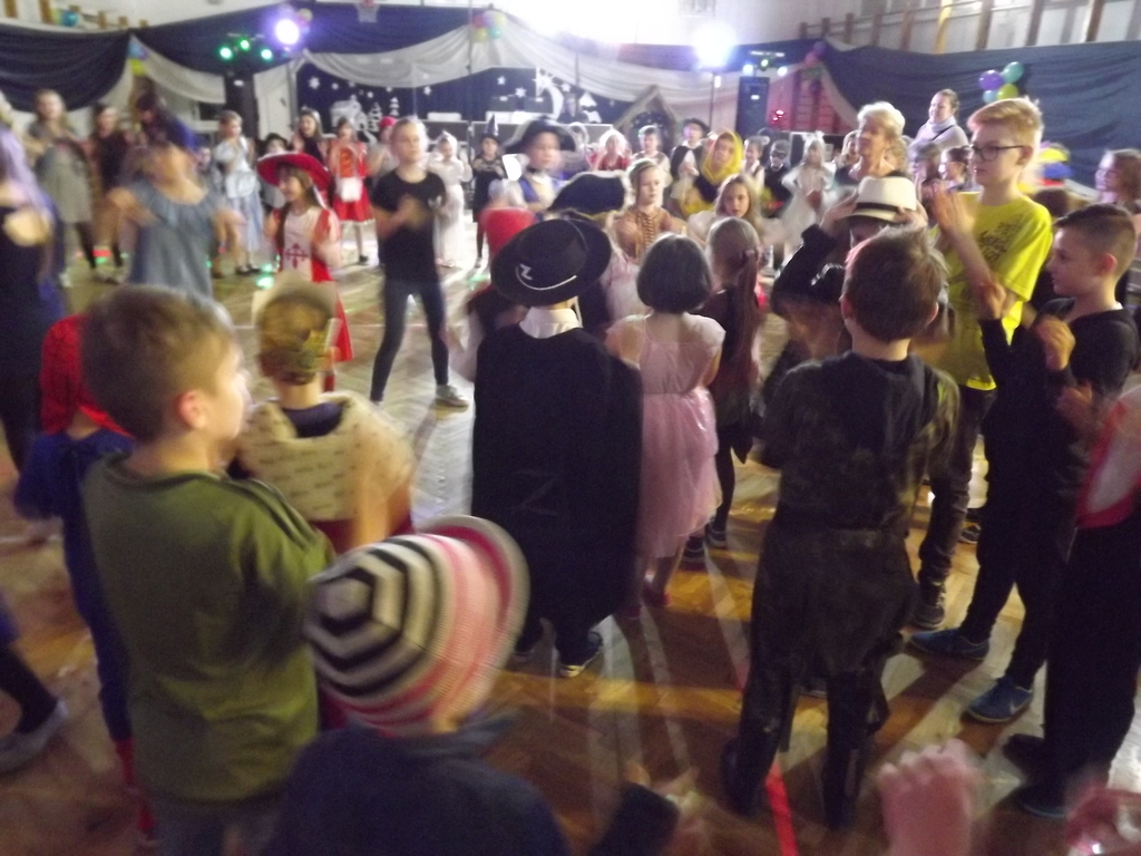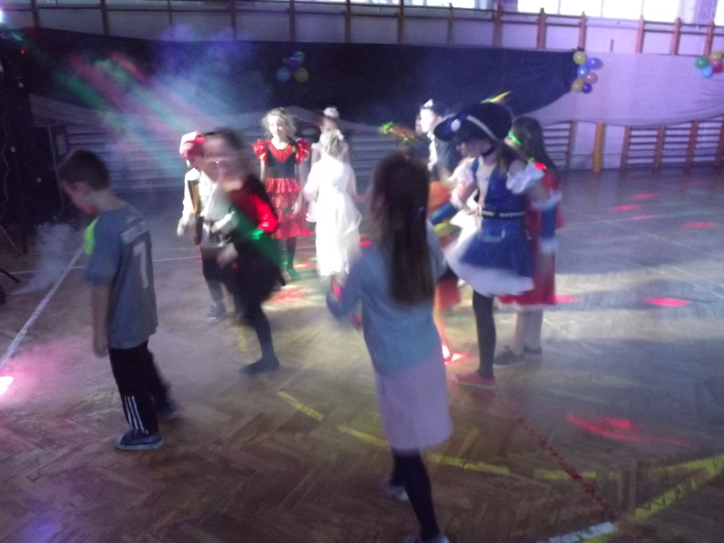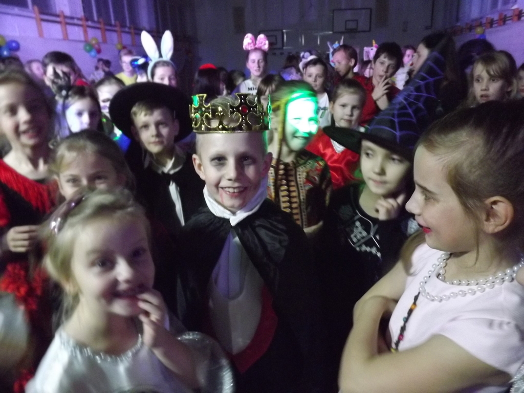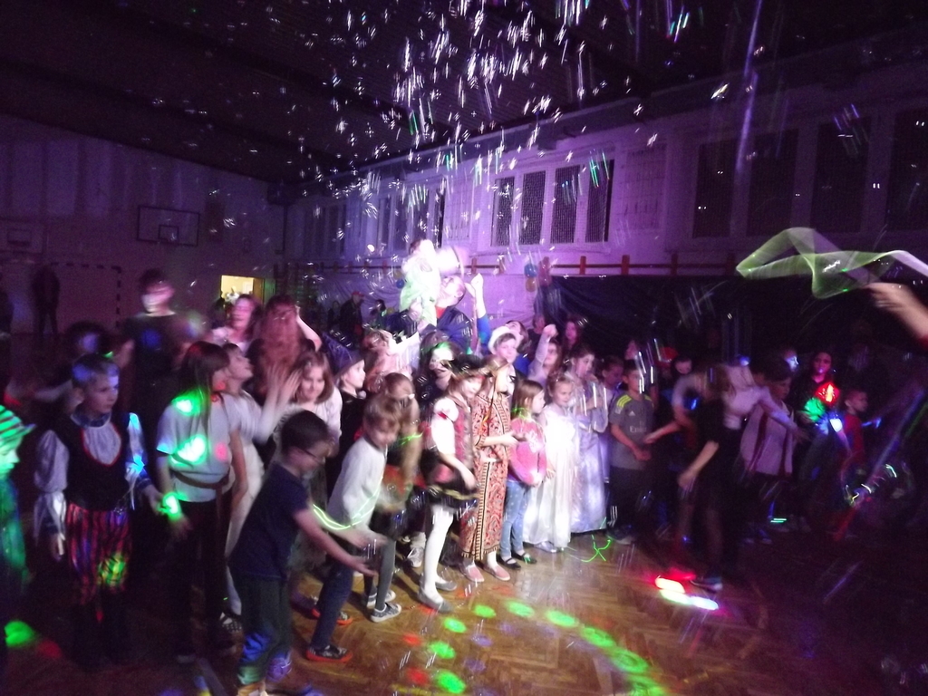 Jak każe dobry obyczaj na bal przybyło wiele Jegomości, zacne księżniczki, książęta, jak i inni goście. Na parkiecie w tym roku wyjątkowo pięknie królowały w tańcu klasa II i VII, dlatego Pan Wodzirej ukoronował je symboliczną koroną jako króla i królową balu. Na zakończenie balu mogliśmy podziwiać piękny i kolorowy pokaz baniek mydlanych.