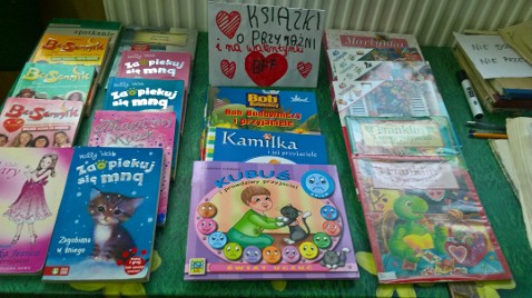 Z przygotowanej wcześniej wystawki książek o miłości i przyjaźni uczniowie drogą losowania wybrali 2 książeczki, które chcieli głośno przeczytać. Wśród nich był „Franklin