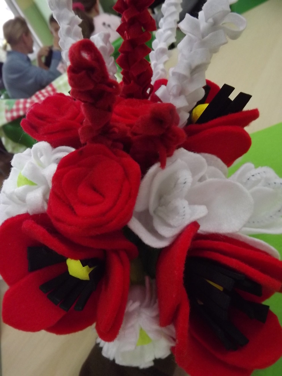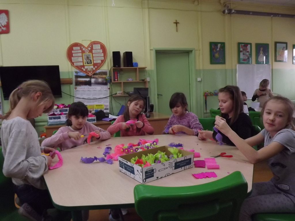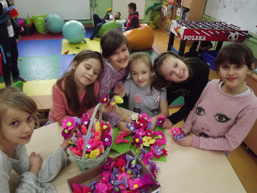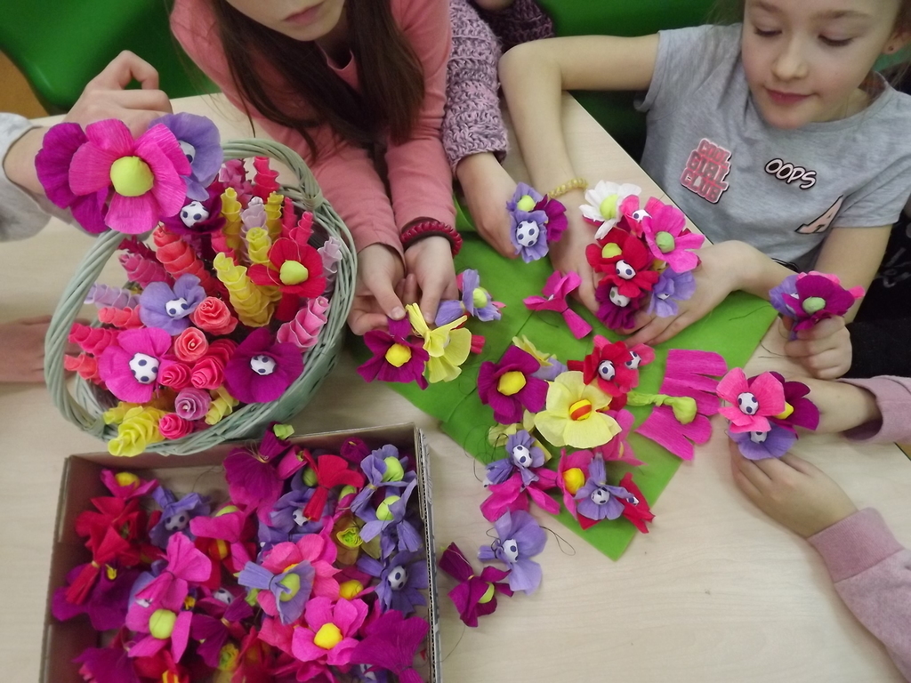 Do naszej szkoły jeszcze nie zawitała jeszcze wiosna, ale wokół nas zaczęły pojawiać się pierwsze kolorowe kwiaty z filcu i krepiny włoskiej . To efekty pracy kół plastycznych na świetlicy szkolnej. Ruszyły pełną parą przygotowania do wiosennych konkursów, a także do akcji "Palemka" i Jarmarku Wielkanocnego. Prezentujemy nasze rękodzieła i zapraszamy wszystkich chętnych Uczniów i Rodziców do pracy na rzecz promocji naszej szkoły.