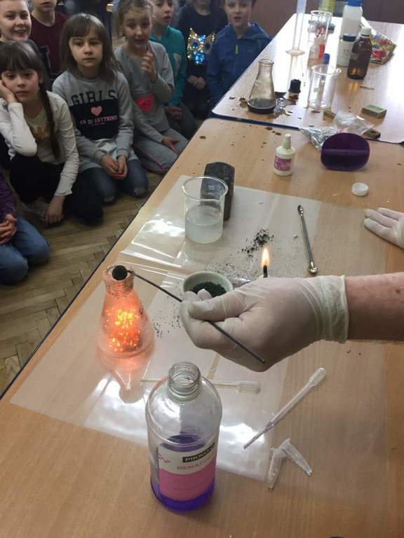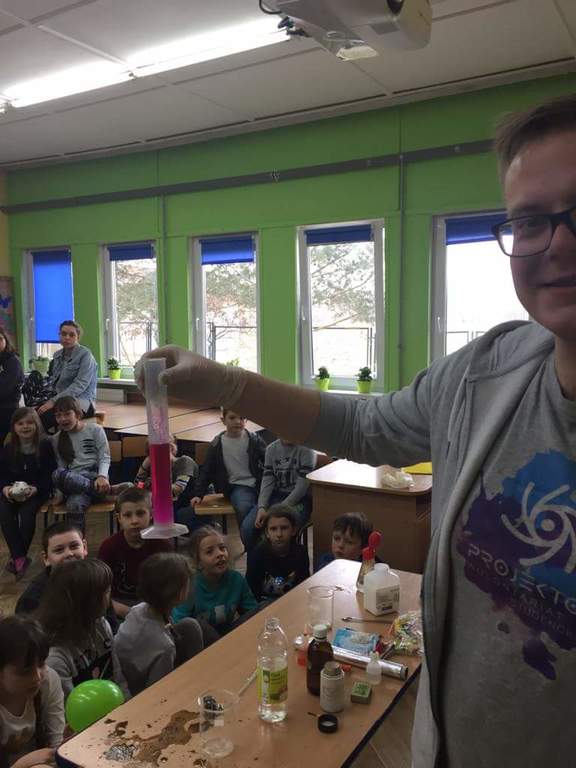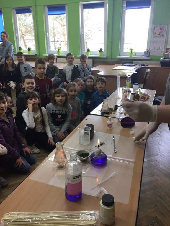 Dziś gościlismy w naszej szkole wolontariuszy z Fundacji Rozwoju "Projektor".Przeprowadzili oni dla klas I-II zajęcia animacyjne, plastyczne,językowe.Największym zainteresowaniem cieszyły się eksperymenty chemiczne, które pokazały, że nie trzeba mieć specjalnych składników,aby przeprowadzać ciekawe doswiadczenia.