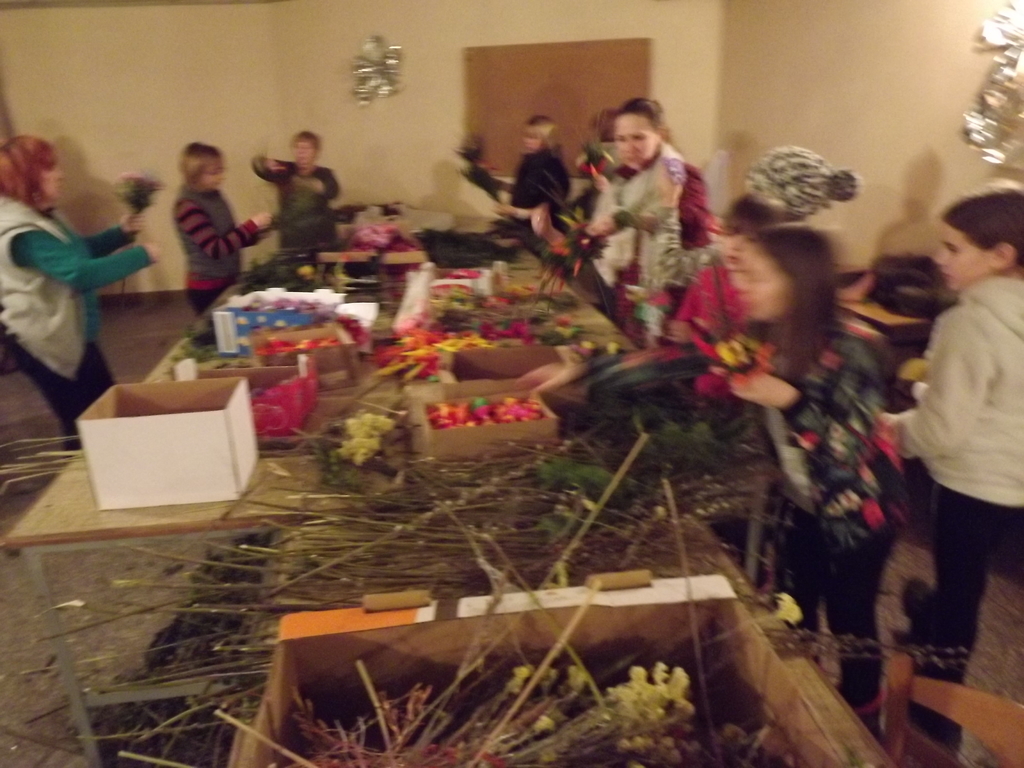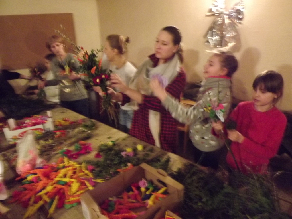 Juz tradycyjnie nasza szkoła wspólnie ze Wspólnotą Zjednoczenia Apostolstwa Katolickiego i nieformalnym lokalnym kołem "Kobiet z pasją" oraz naszymi Rodzicami i Uczniami przystąpiliśmy do akcji świątecznej, której głównym celem było zrobienie kwiatów i samo wyplatanie palm wielkanocnych, które jak co roku są sprzedawane a dochód przeznaczany jest na rzecz dzieci naszej szkoły i parafii.