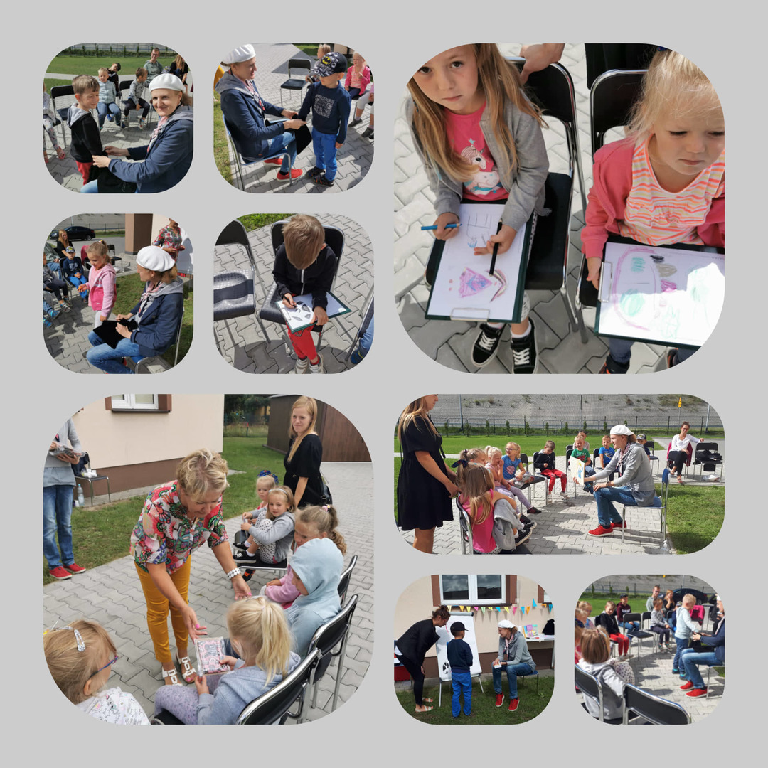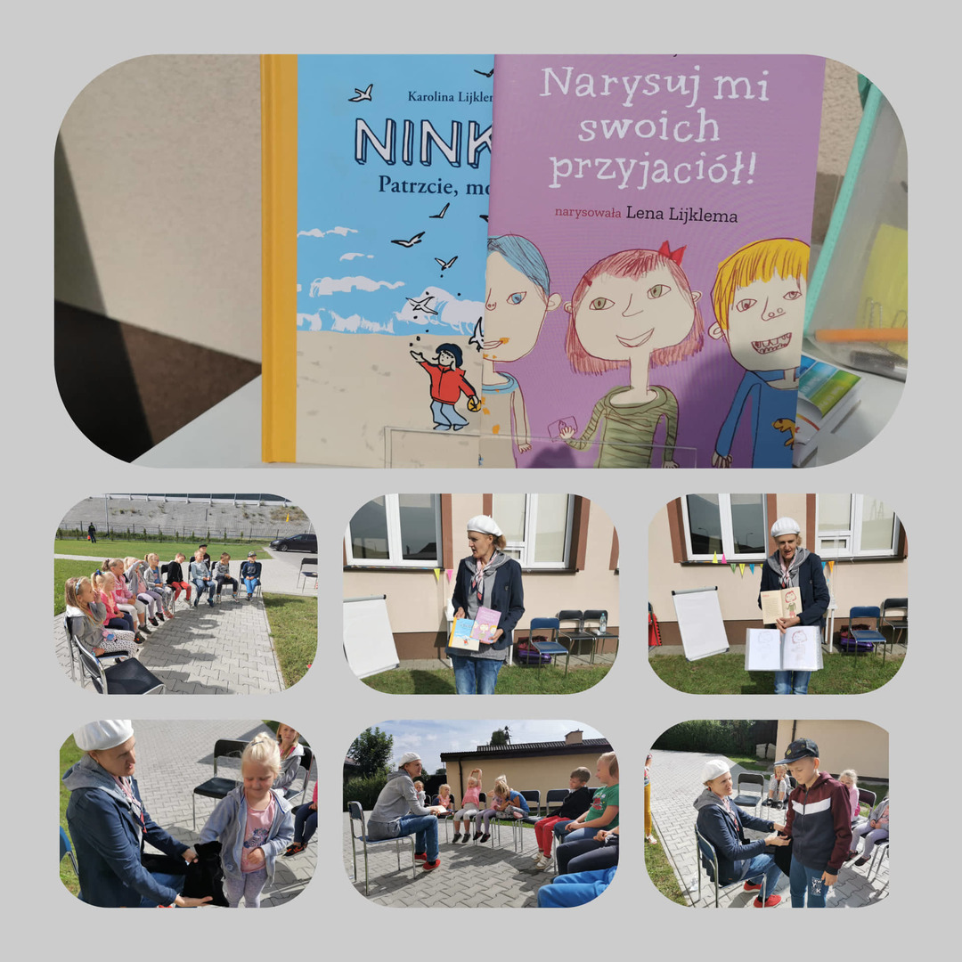 Spotkanie prowadziła Pani Karolina Lijklema, autorka i ilustratorka książek dla dzieci, między innymi: serii opowieści o Nince: „ Mikołaju, czekam!”, „ Patrzcie, morze!”, „Dziadku, chodź!” – wydane przez Wydawnictwo Muza. Natomiast nakładem Wydawnictwa Widnokrąg ukazały się książki tej autorki z serii „Co się stało?”: ”Małe wypadki”, „Wielkie plamy”, „Straszny bałagan”.