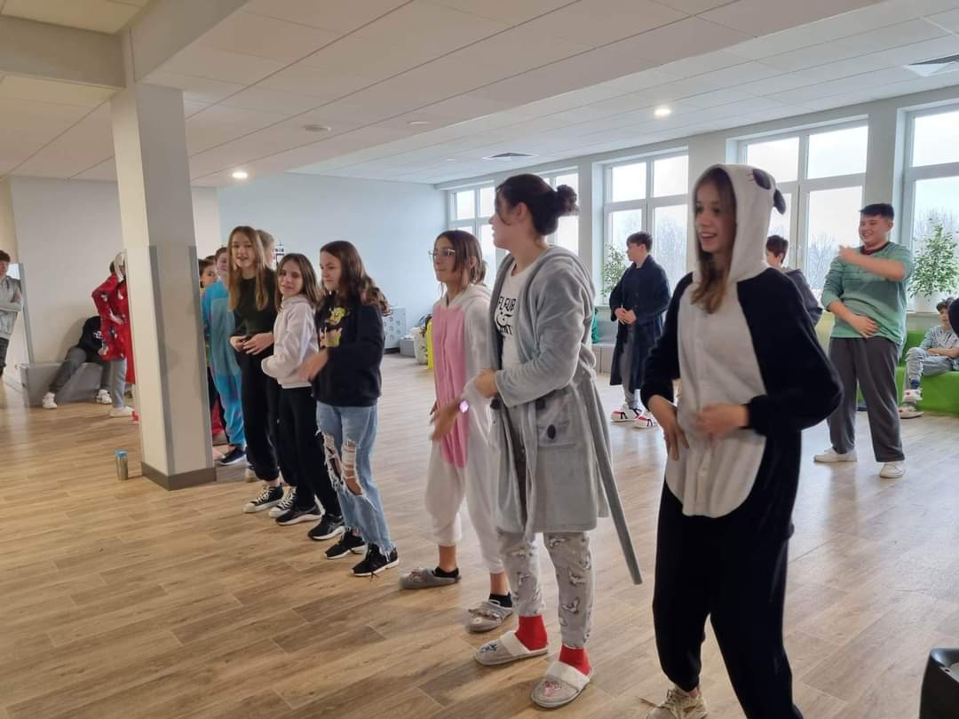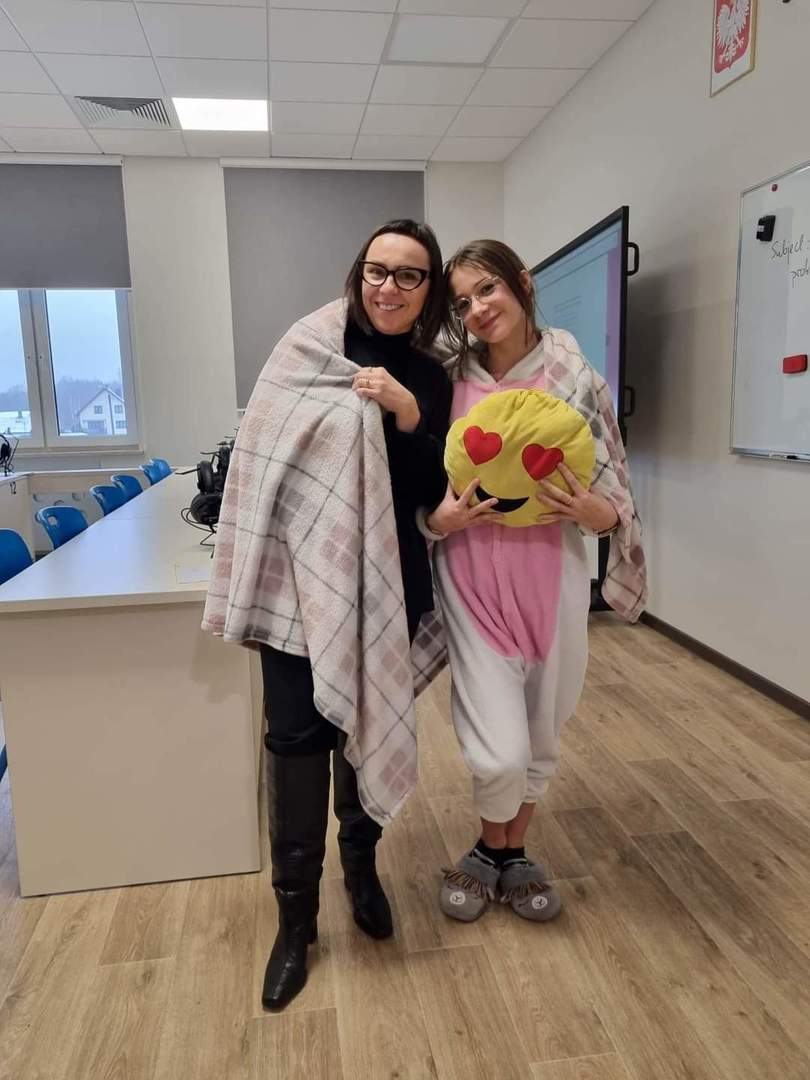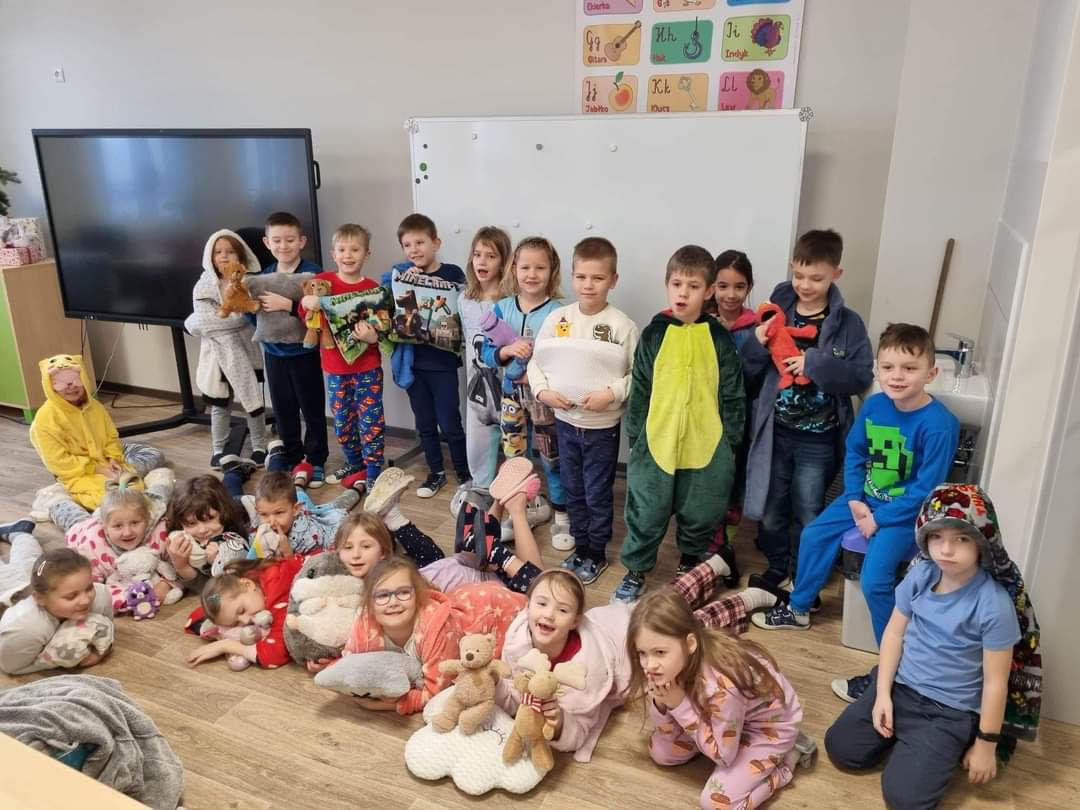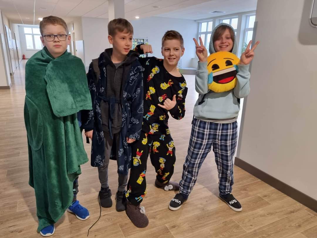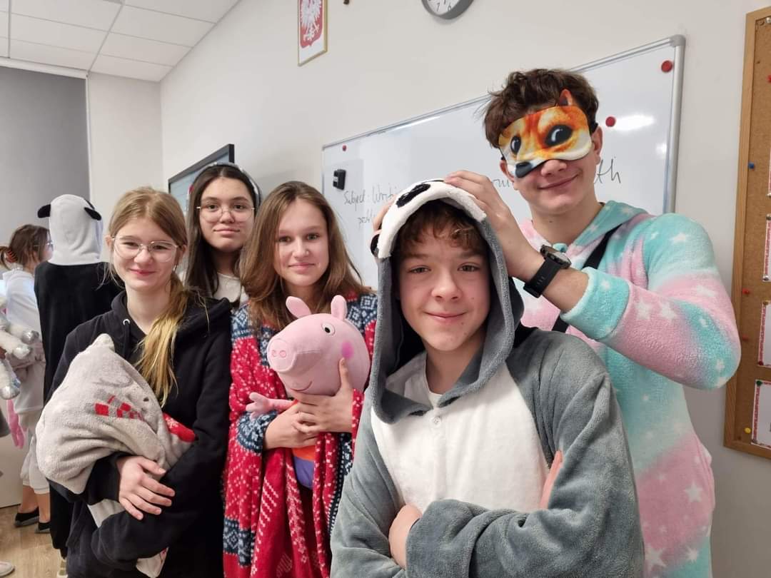 Uczniowie przyszli w piżamach, szlafrokach, kapciach i dobrze się wszyscy bawiliśmy, ale to wydarzenie stało się także okazją do rozmowy o śnie i jego roli w życiu każdego człowieka. Amelka Domańska przygotowała quiz na temat snu dla klas młodszych i starszych, a na tablicy Samorządu Uczniowskiego pojawiły się informacje o higienie snu i konsekwencjach jego niedoboru.