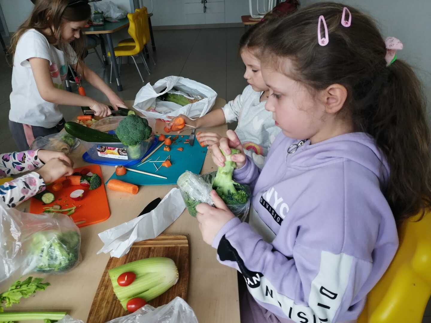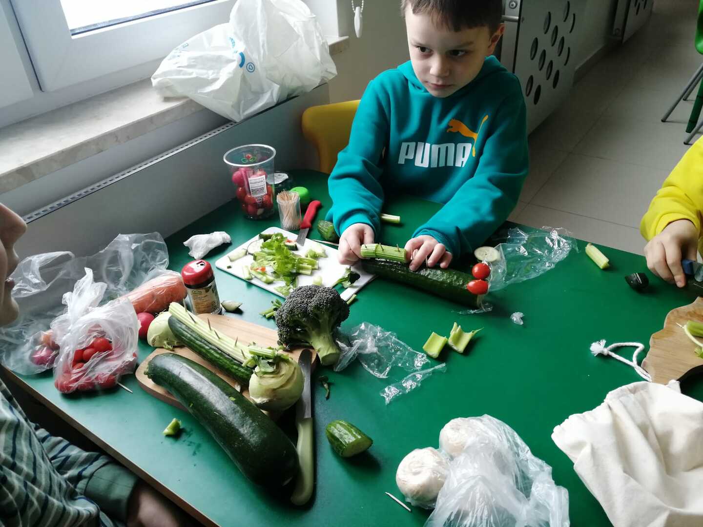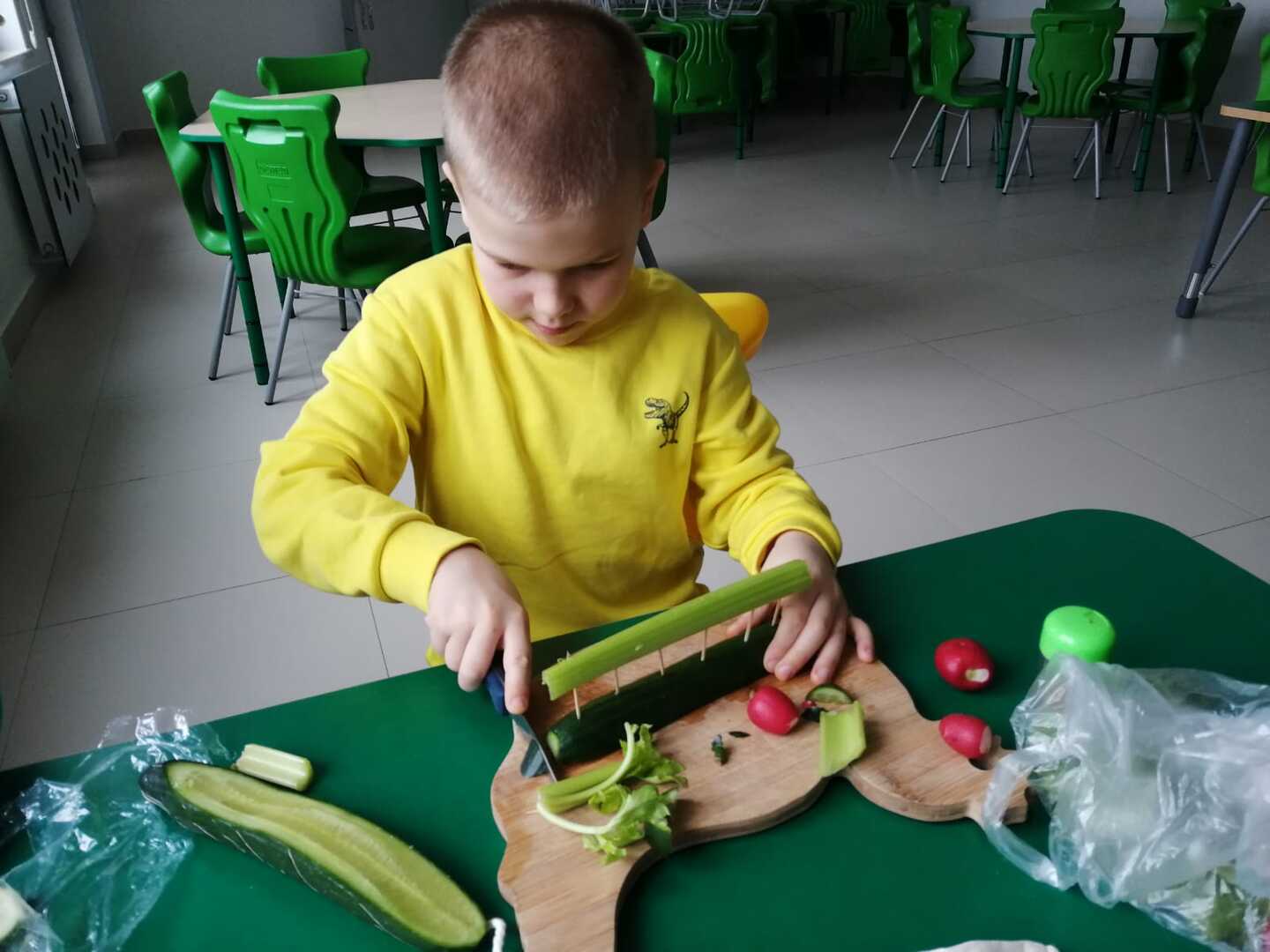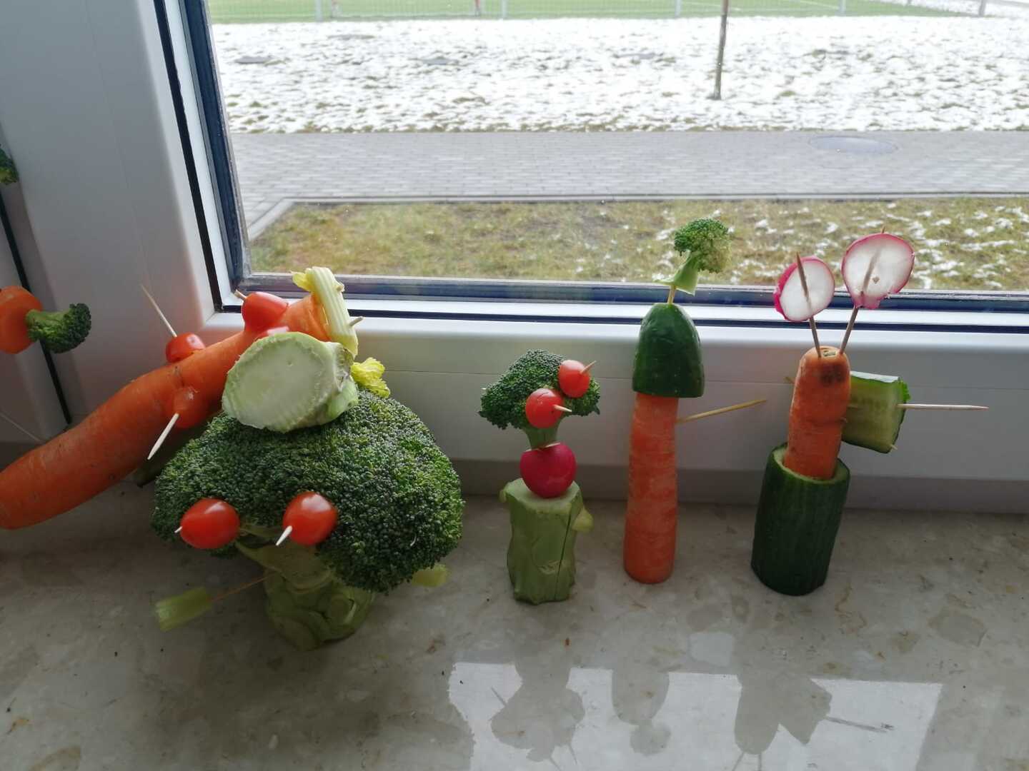 Laboratoria Przyszłości to nie tylko dobrze wyposażona kuchnia do dyspozycji uczniów. To przede wszystkim świetna zabawa! Pierwsza klasa w styczniu zaprosiła swoje babcie i swoich dziadków do wspólnego pieczenia i konsumowania muffin. Były pachnące, słodkie i jeszcze ciepłe, gdy wspólnie się nimi częstowaliśmy. Zachęceni tym wydarzeniem ostatnio także skorzystaliśmy z naszej szkolnej pracowni. Tym razem w roli główniej wystąpiły warzywa, z których robiliśmy rzeźby. Nie obyło się bez podjadania słodkich pomidorków, chrupiących marchewek i soczystych ogórków podczas tej kreatywnej lekcji. A na stołówkę w tym czasie zaglądało wielu ciekawskich, wiedzionych zapachem świeżych, krojonych warzyw. Zapraszamy do obejrzenia naszych wspaniałych jarzynowych prac. Smacznego 😊