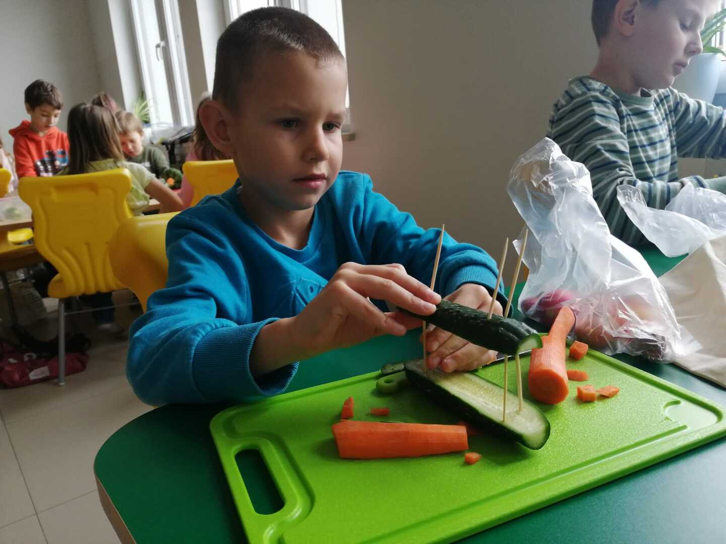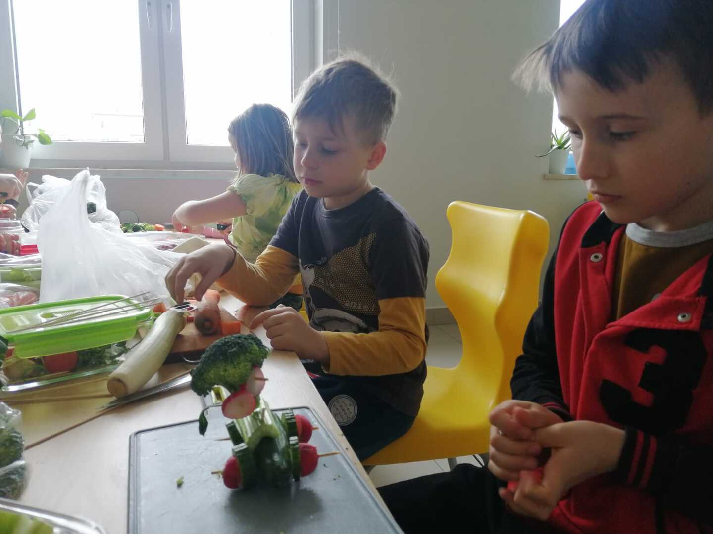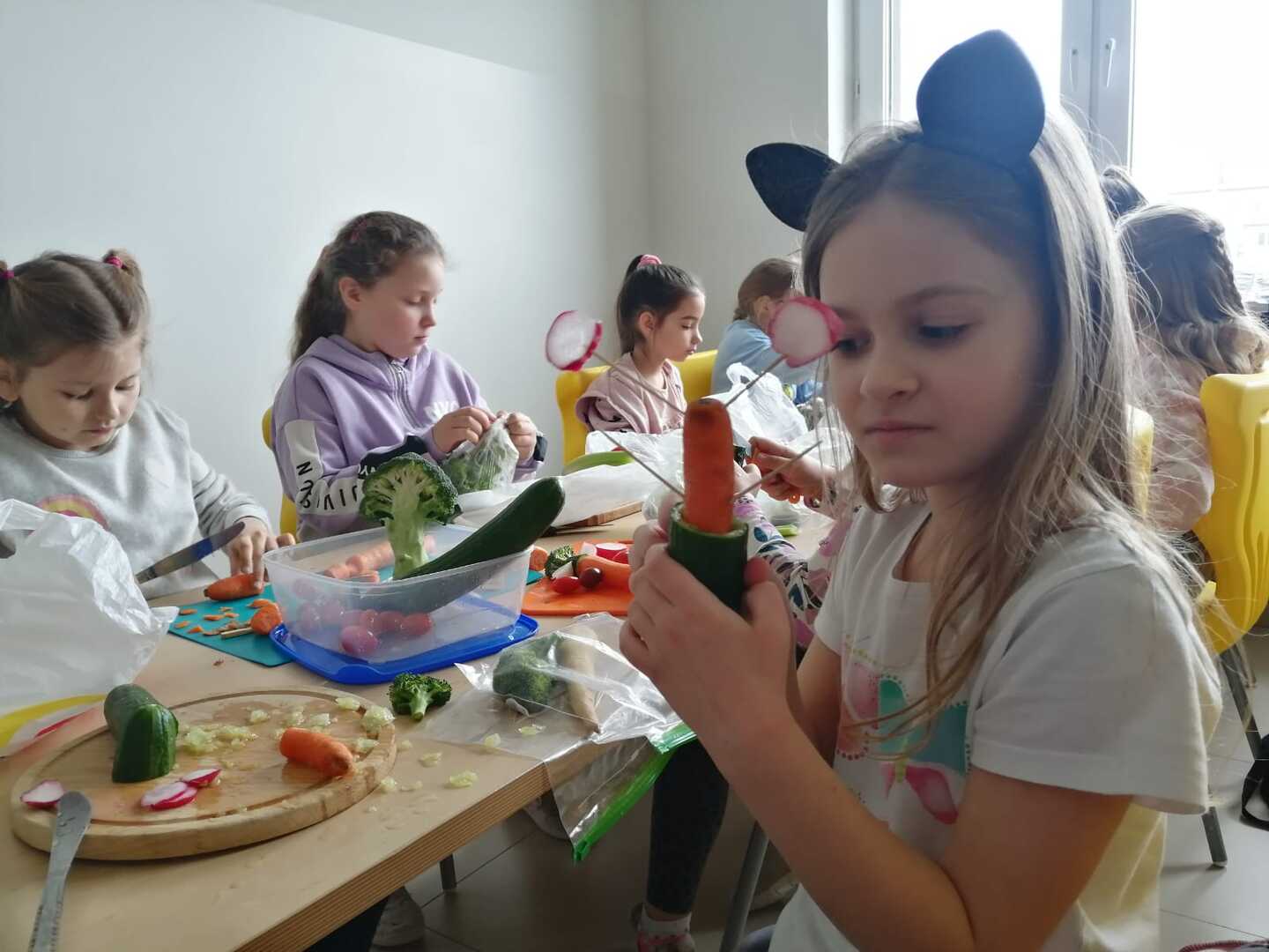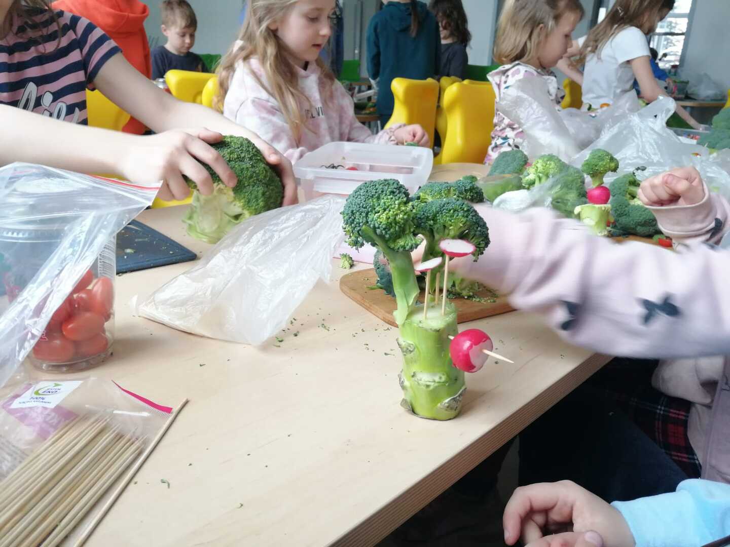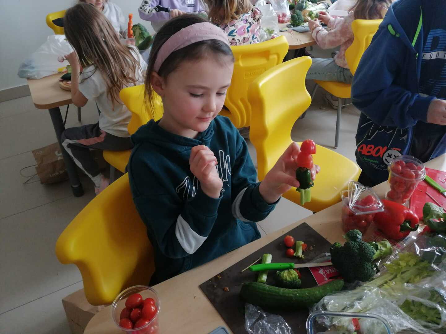 Laboratoria Przyszłości to nie tylko dobrze wyposażona kuchnia do dyspozycji uczniów. To przede wszystkim świetna zabawa! Pierwsza klasa w styczniu zaprosiła swoje babcie i swoich dziadków do wspólnego pieczenia i konsumowania muffin. Były pachnące, słodkie i jeszcze ciepłe, gdy wspólnie się nimi częstowaliśmy. Zachęceni tym wydarzeniem ostatnio także skorzystaliśmy z naszej szkolnej pracowni. Tym razem w roli główniej wystąpiły warzywa, z których robiliśmy rzeźby. Nie obyło się bez podjadania słodkich pomidorków, chrupiących marchewek i soczystych ogórków podczas tej kreatywnej lekcji. A na stołówkę w tym czasie zaglądało wielu ciekawskich, wiedzionych zapachem świeżych, krojonych warzyw. Zapraszamy do obejrzenia naszych wspaniałych jarzynowych prac. Smacznego 😊