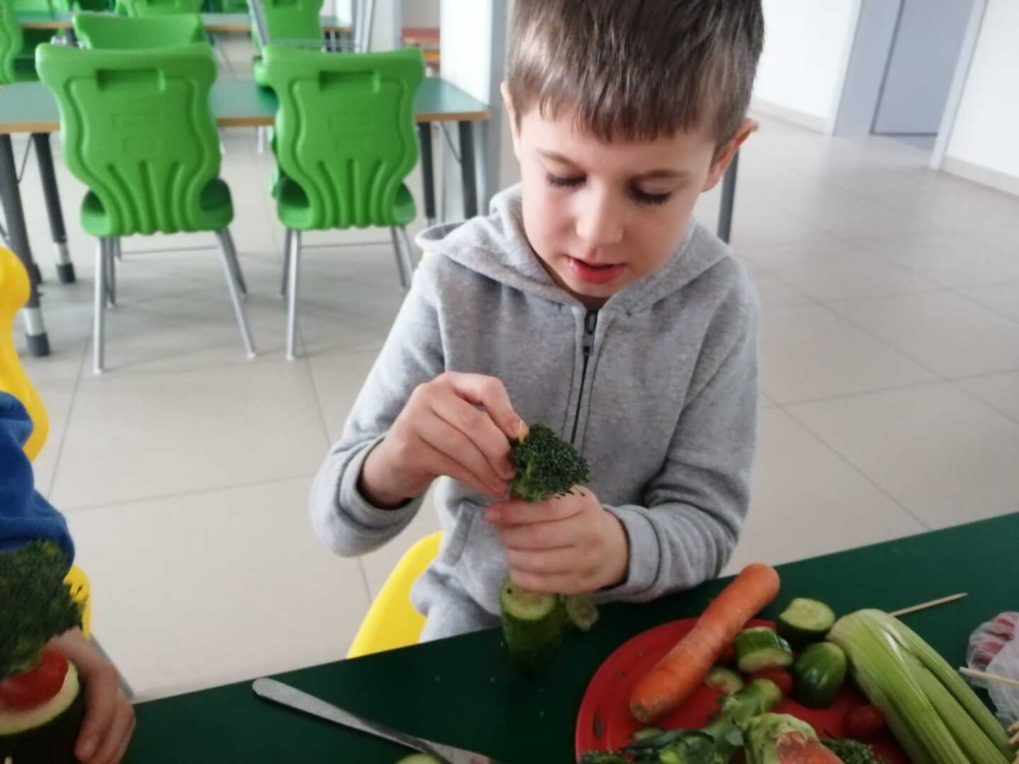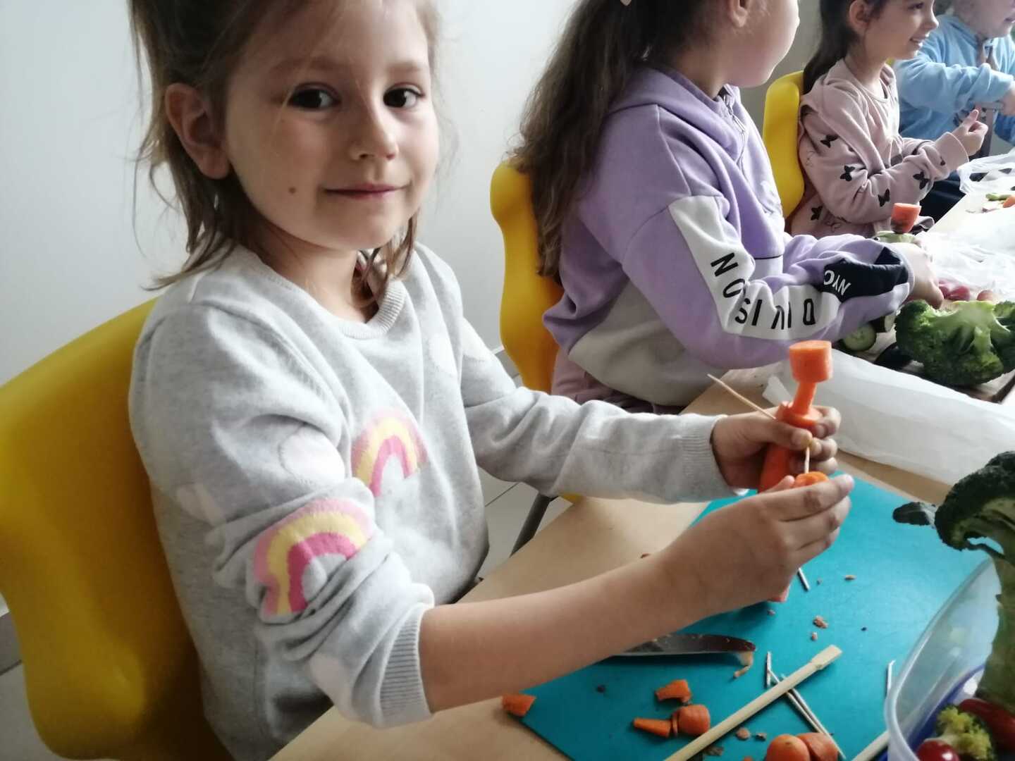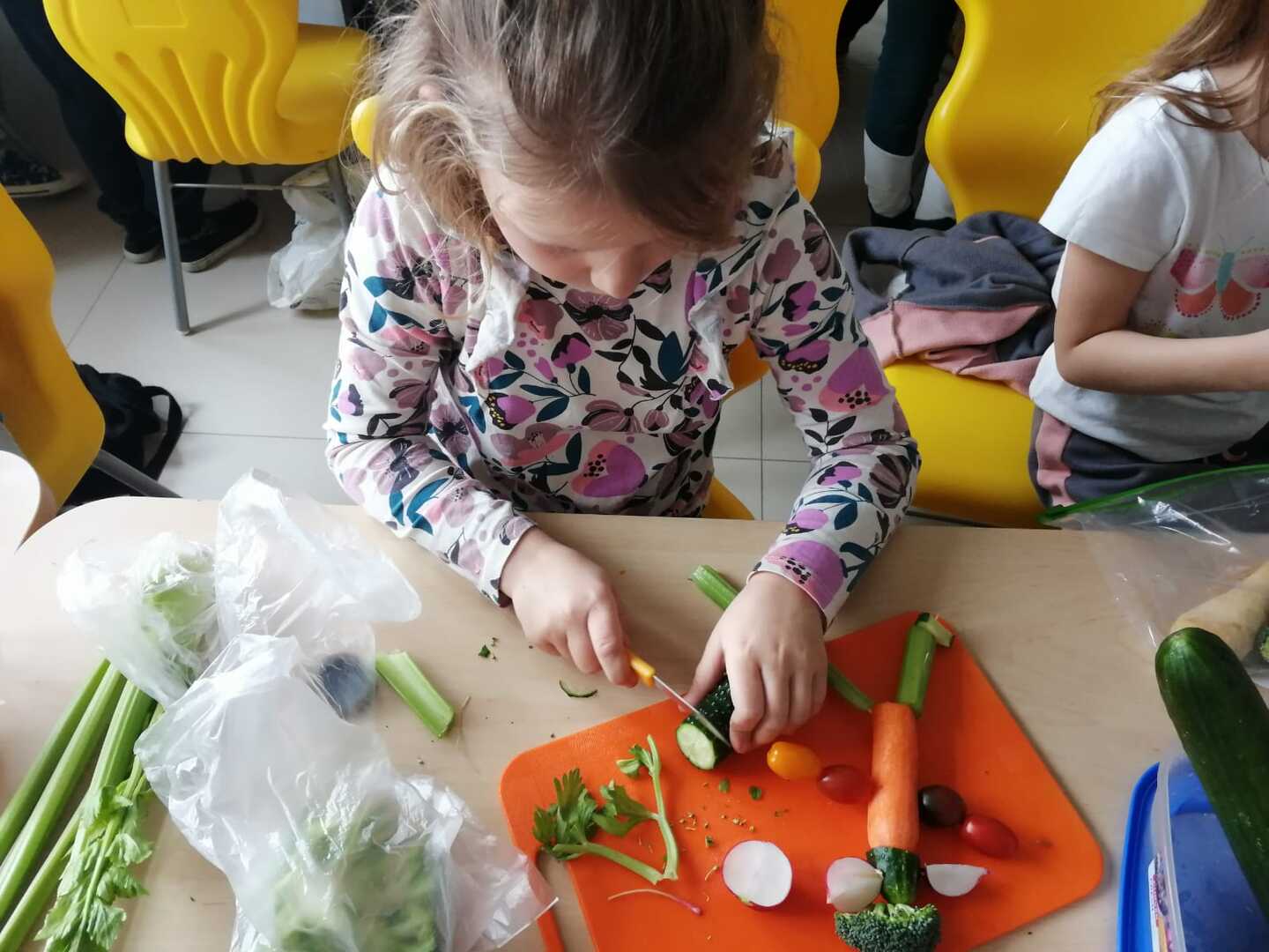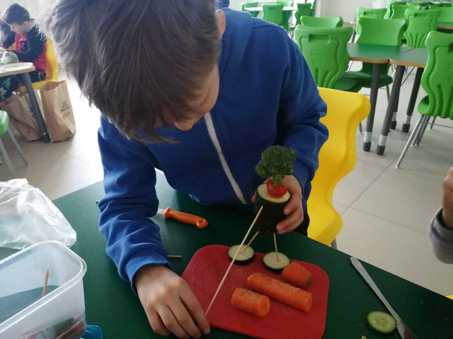 Laboratoria Przyszłości to nie tylko dobrze wyposażona kuchnia do dyspozycji uczniów. To przede wszystkim świetna zabawa! Pierwsza klasa w styczniu zaprosiła swoje babcie i swoich dziadków do wspólnego pieczenia i konsumowania muffin. Były pachnące, słodkie i jeszcze ciepłe, gdy wspólnie się nimi częstowaliśmy. Zachęceni tym wydarzeniem ostatnio także skorzystaliśmy z naszej szkolnej pracowni. Tym razem w roli główniej wystąpiły warzywa, z których robiliśmy rzeźby. Nie obyło się bez podjadania słodkich pomidorków, chrupiących marchewek i soczystych ogórków podczas tej kreatywnej lekcji. A na stołówkę w tym czasie zaglądało wielu ciekawskich, wiedzionych zapachem świeżych, krojonych warzyw. Zapraszamy do obejrzenia naszych wspaniałych jarzynowych prac. Smacznego 😊