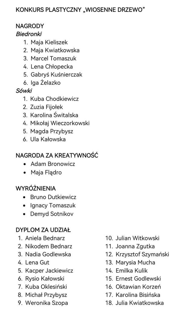 W miniony piątek w naszych grupach przedszkolnych 👧🧒 odbyło się rozstrzygnięcie konkursu plastycznego pt. "WIOSENNE DRZEWO" 🌳 . Jesteśmy pełni podziwu zdolności naszych najmłodszych dzieci 🤩 . Gratulujemy wszystkim przedszkolakom! Wasza kreatywność nie zna granic 🧑🎨👩🎨 .