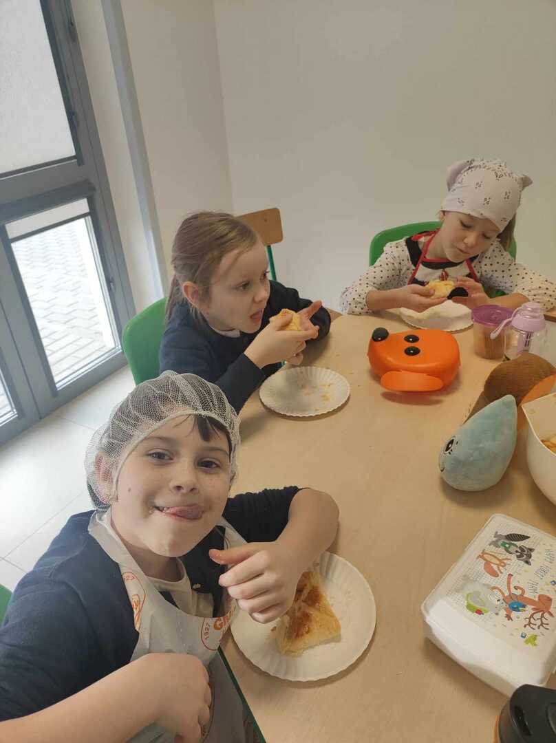 Uczniowie z niecierpliwością oczekiwali na efekt końcowy. Na koniec warsztatów wspólnie degustowano własnoręcznie przygotowane przekąski.