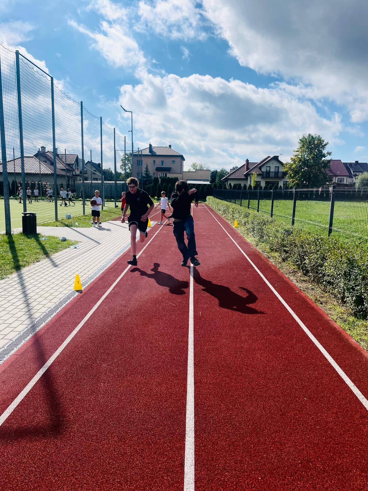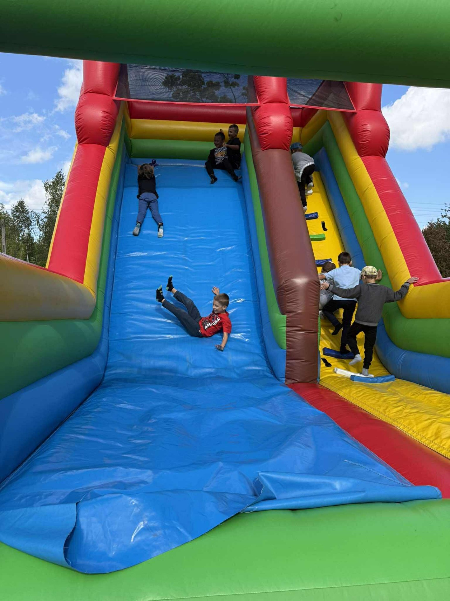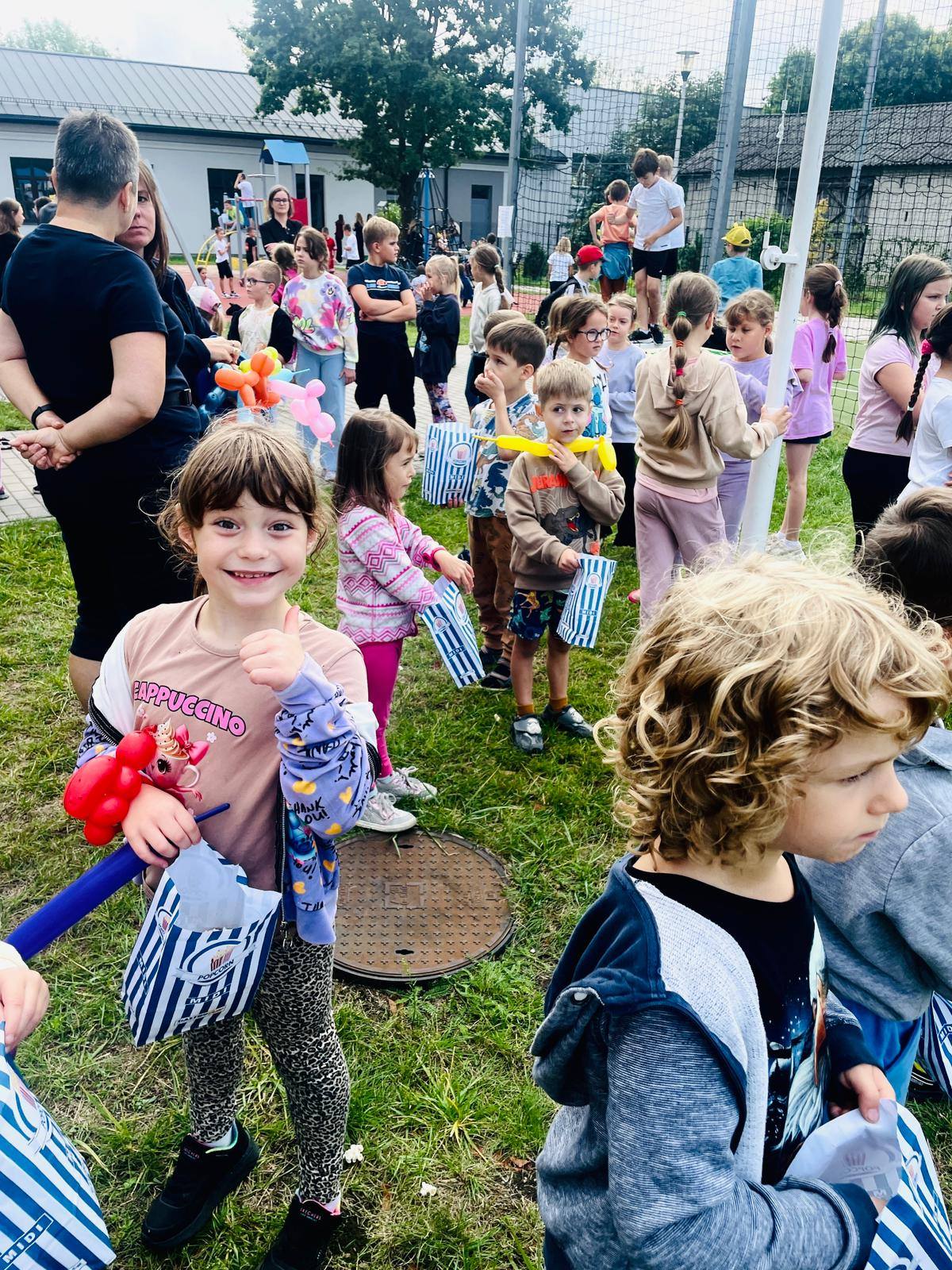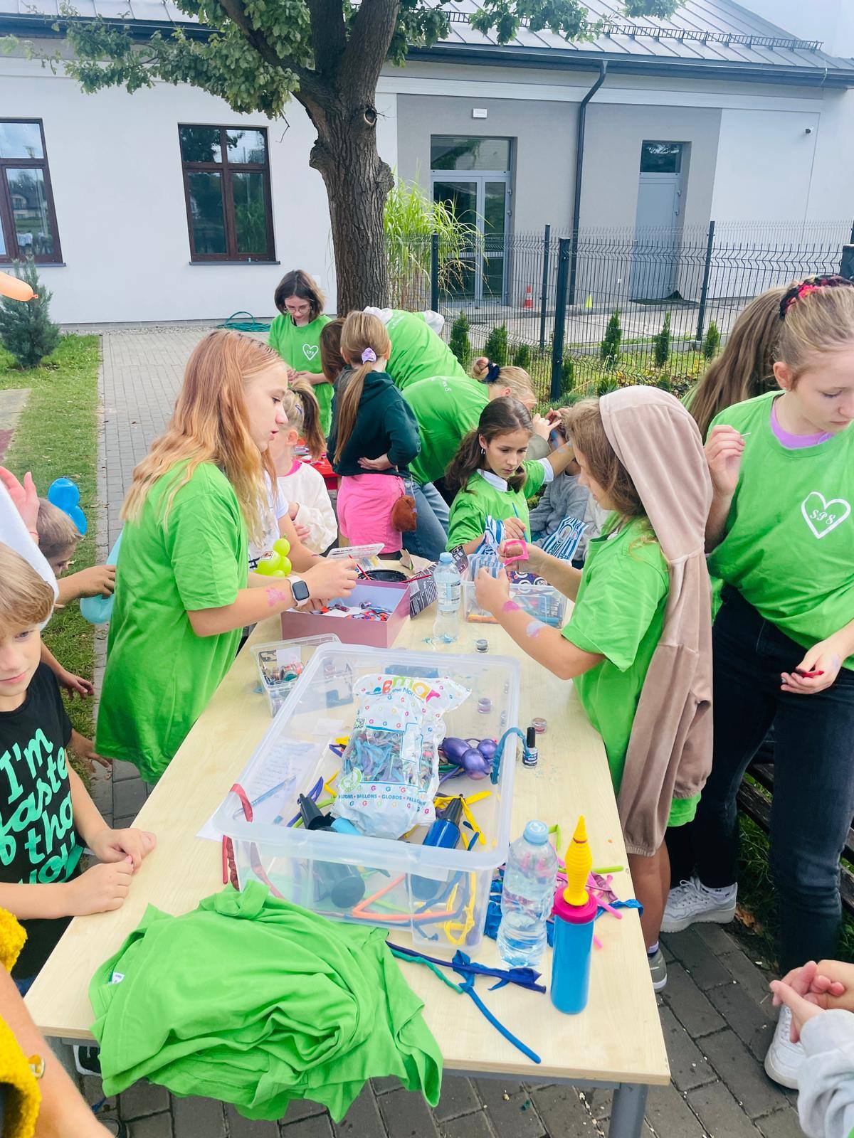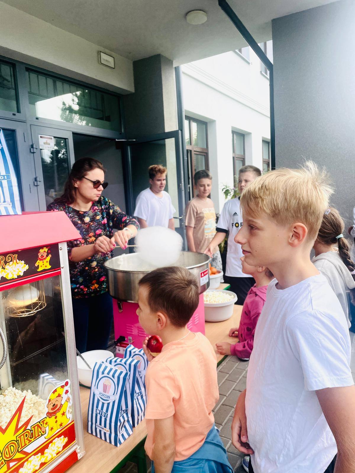 Po oficjalnej części uroczystości przenieśliśmy się na teren naszej szkoły, gdzie odbył się III Bieg Juliana Filipowicza. Uczniowie mieli okazję wziąć udział w wielu atrakcjach, takich jak kąciki z balonikowymi stworkami, tatuażami, malowaniem twarzy oraz dmuchańcami. Dzieci mogły delektować się owocami, popcornem i watą cukrową, co dodało radości i kolorów temu wyjątkowemu dniu.