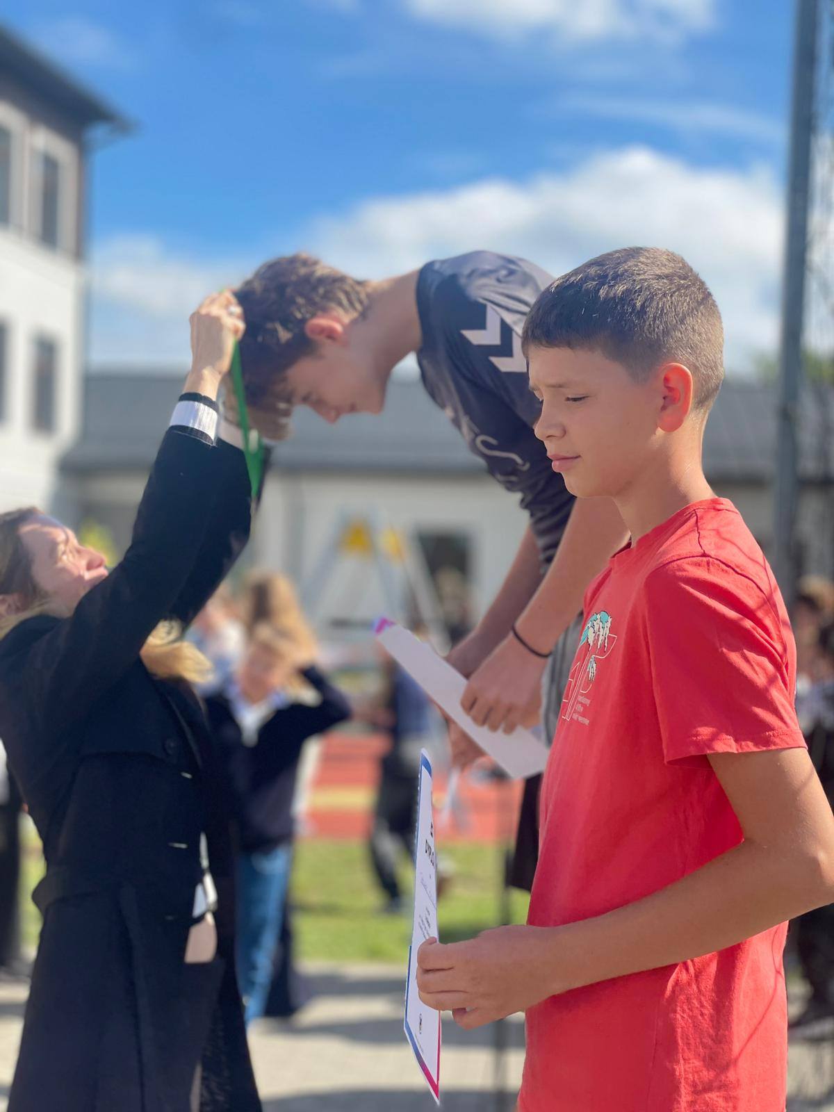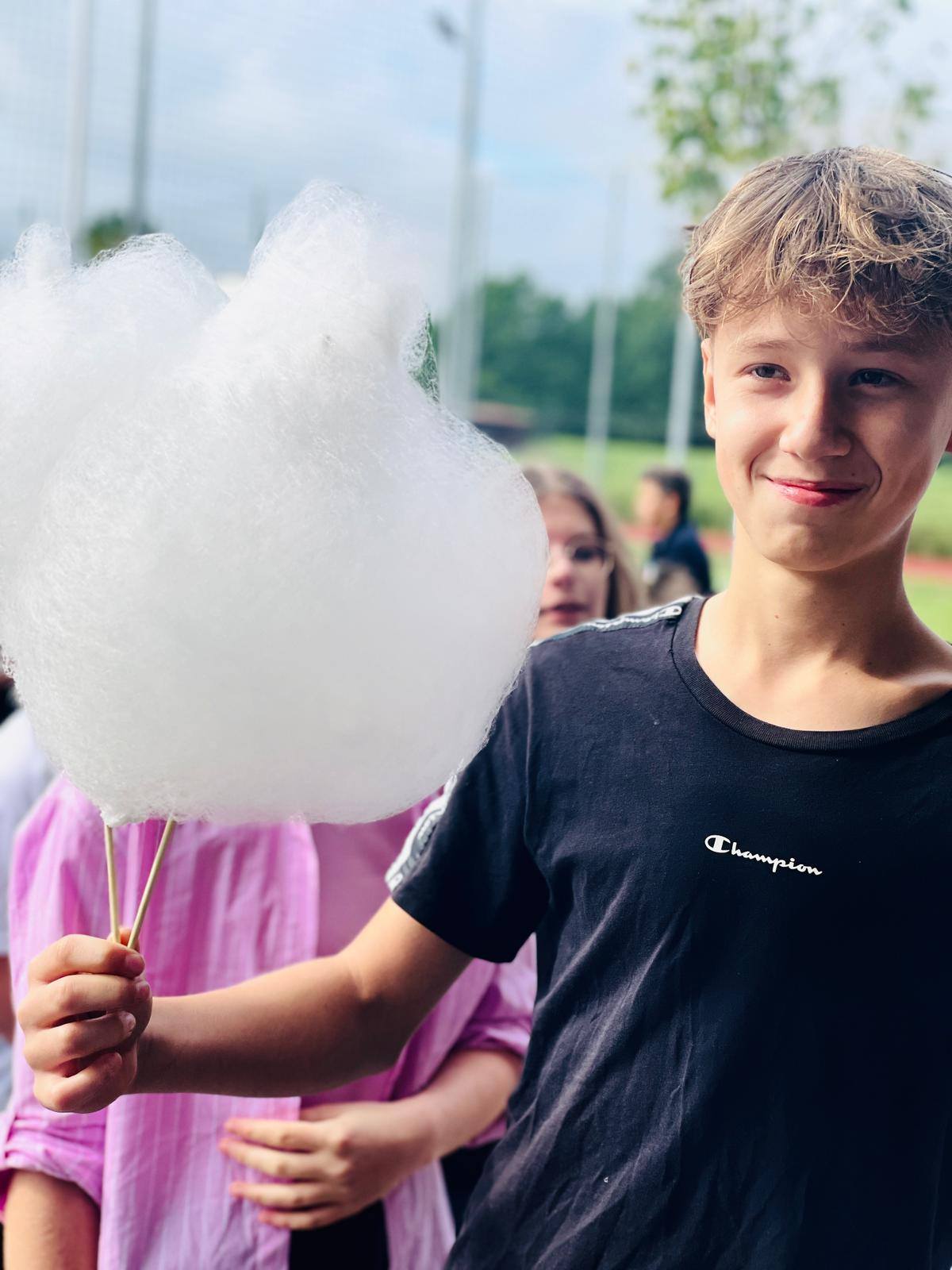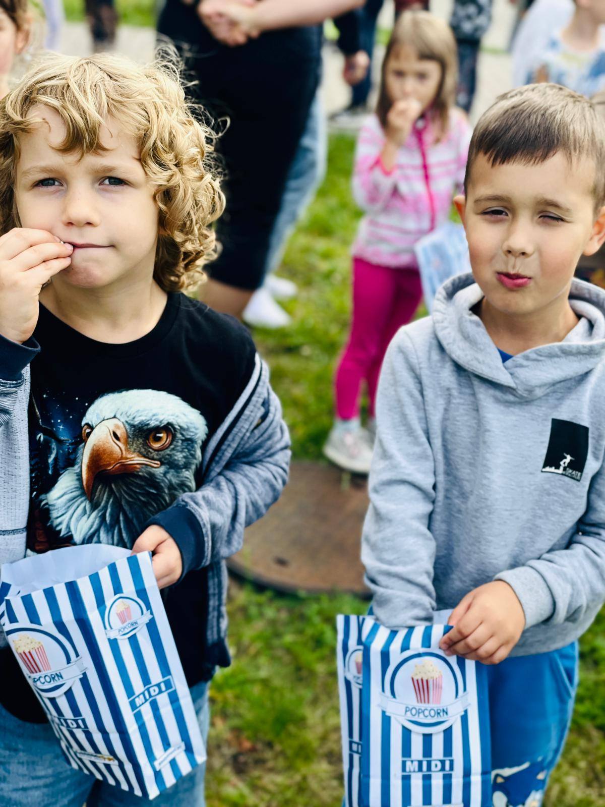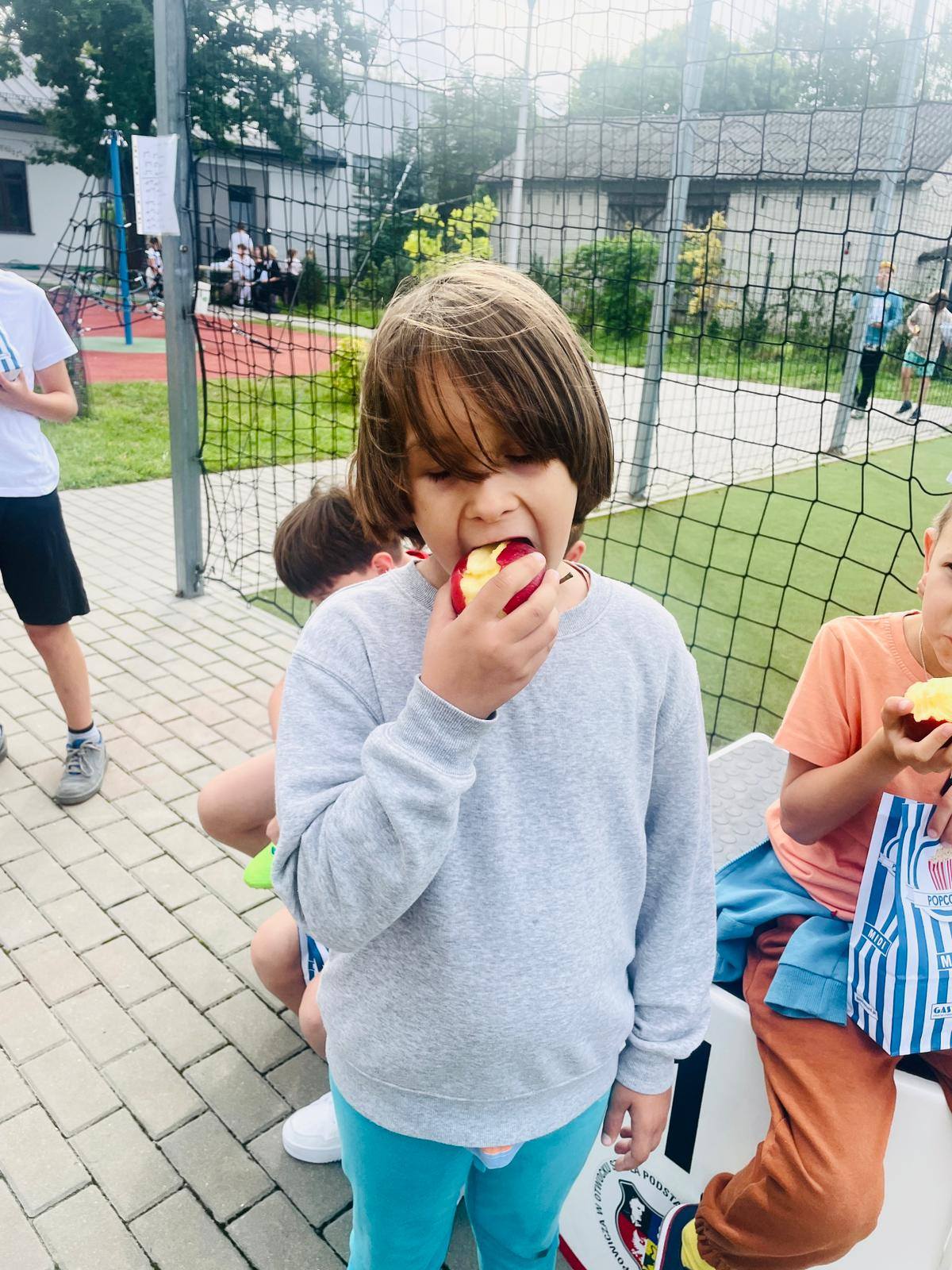 Po oficjalnej części uroczystości przenieśliśmy się na teren naszej szkoły, gdzie odbył się III Bieg Juliana Filipowicza. Uczniowie mieli okazję wziąć udział w wielu atrakcjach, takich jak kąciki z balonikowymi stworkami, tatuażami, malowaniem twarzy oraz dmuchańcami. Dzieci mogły delektować się owocami, popcornem i watą cukrową, co dodało radości i kolorów temu wyjątkowemu dniu.
