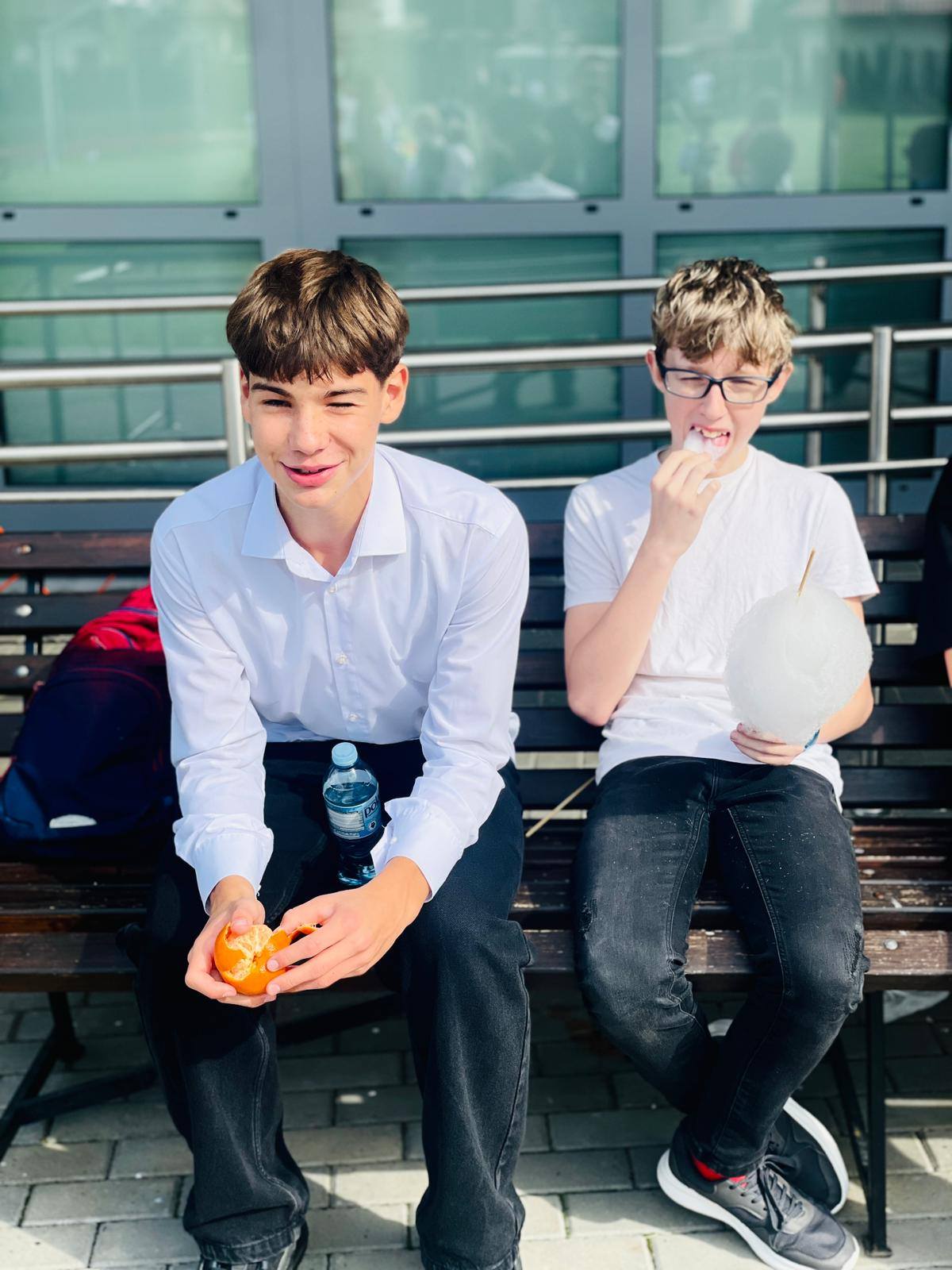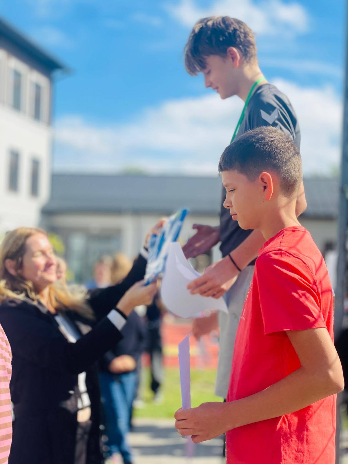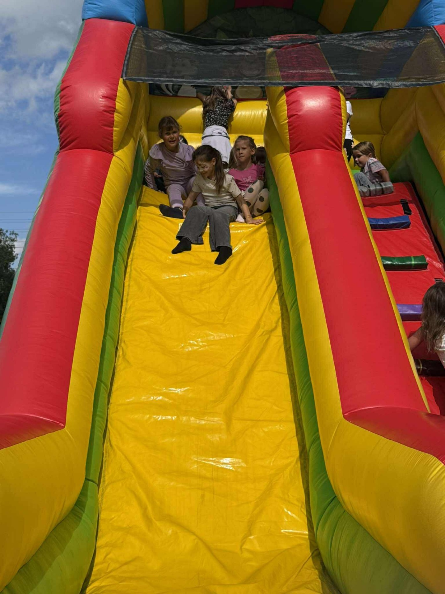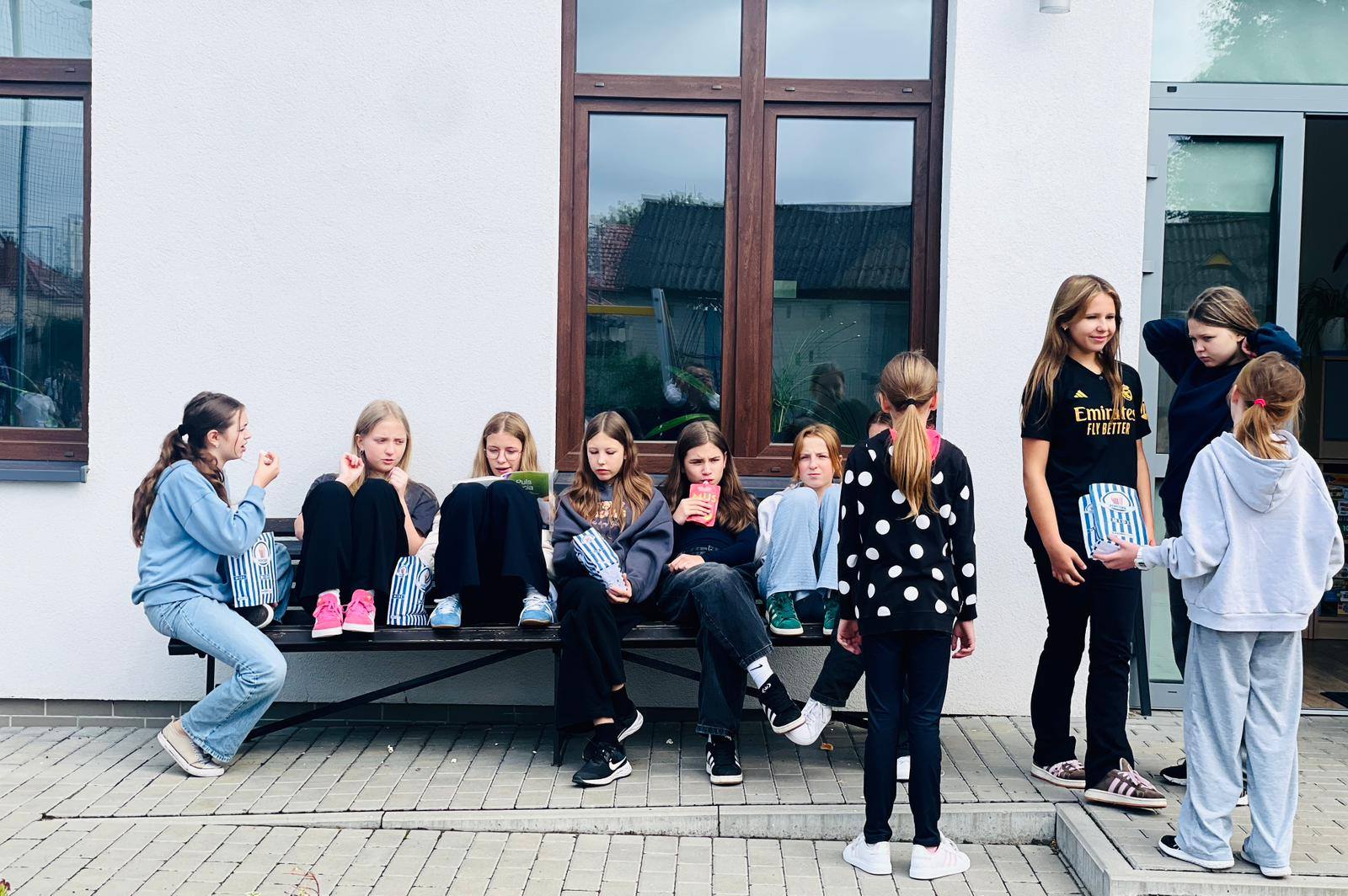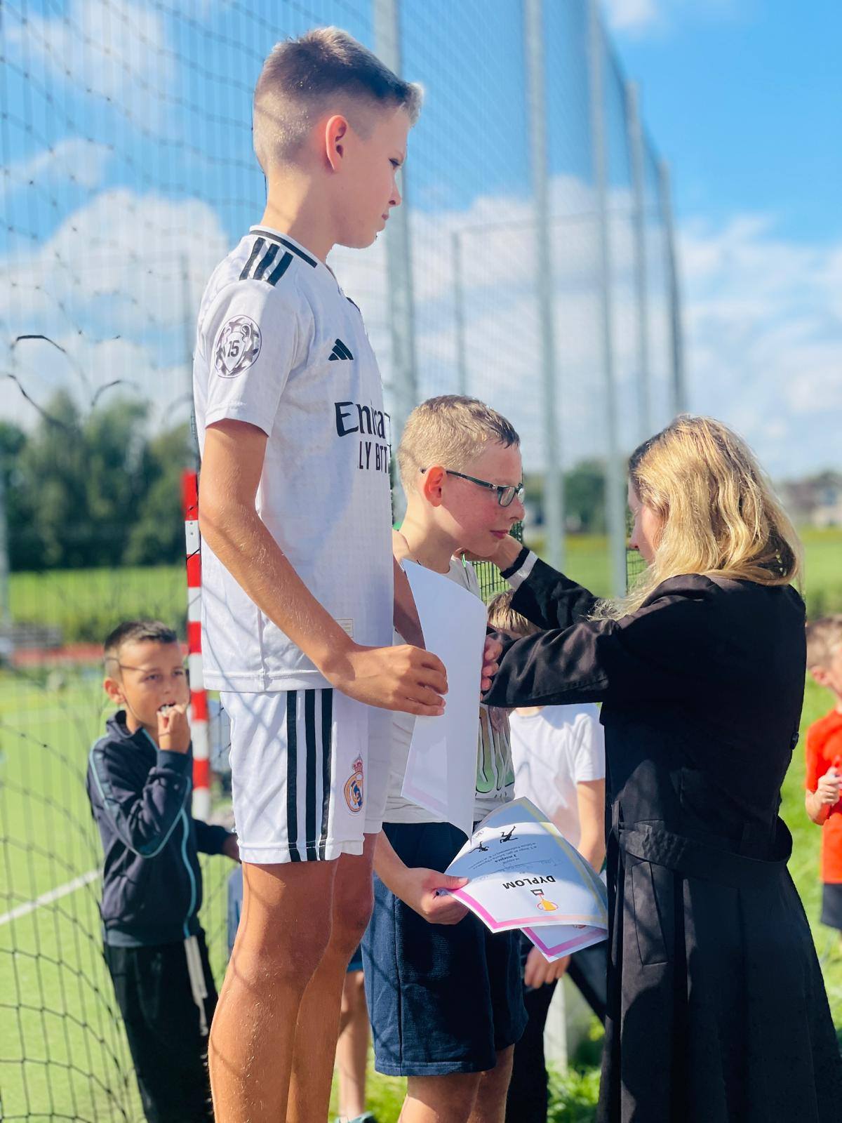 Po oficjalnej części uroczystości przenieśliśmy się na teren naszej szkoły, gdzie odbył się III Bieg Juliana Filipowicza. Uczniowie mieli okazję wziąć udział w wielu atrakcjach, takich jak kąciki z balonikowymi stworkami, tatuażami, malowaniem twarzy oraz dmuchańcami. Dzieci mogły delektować się owocami, popcornem i watą cukrową, co dodało radości i kolorów temu wyjątkowemu dniu.