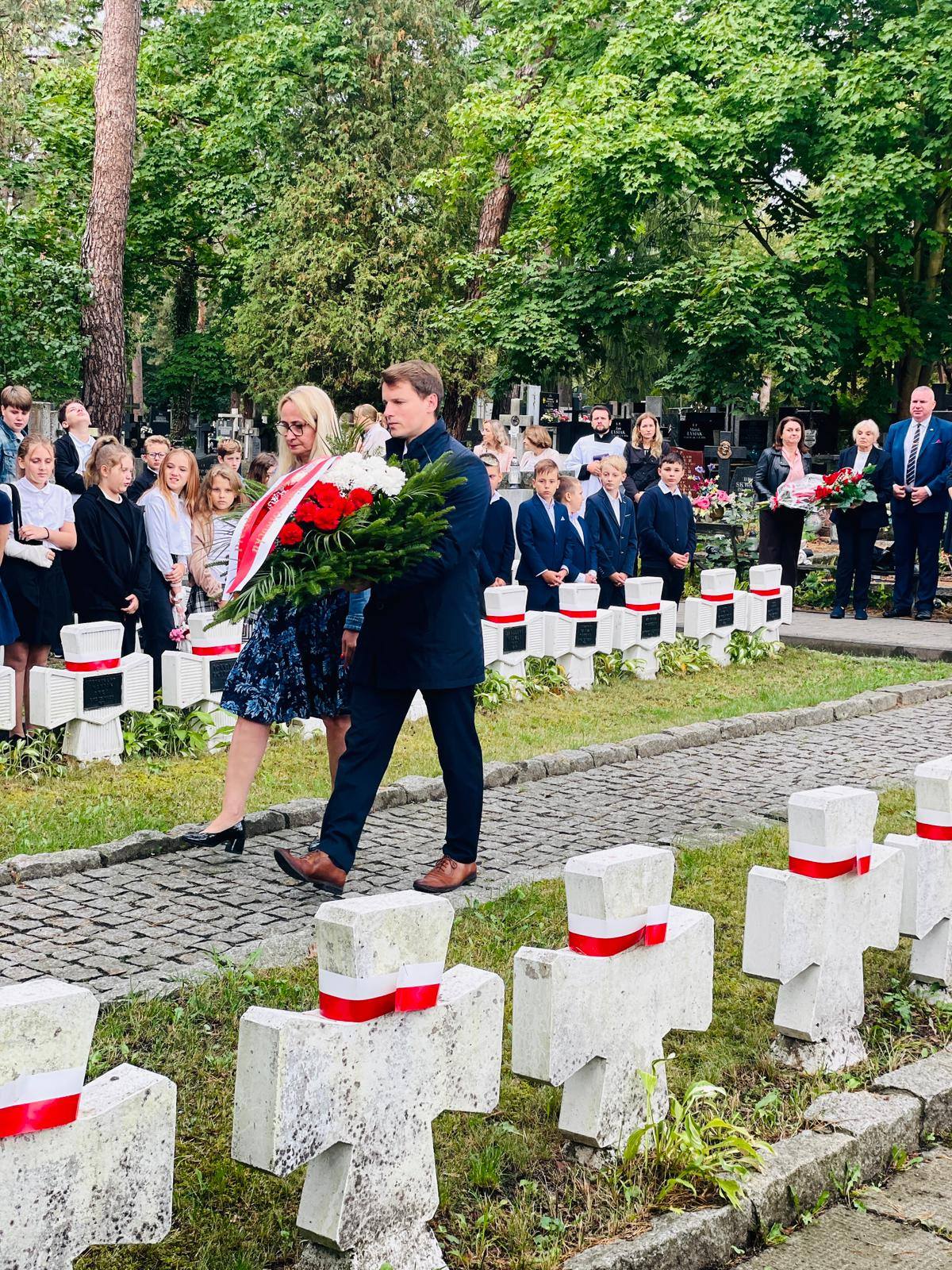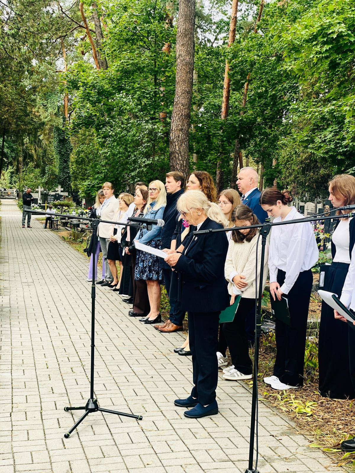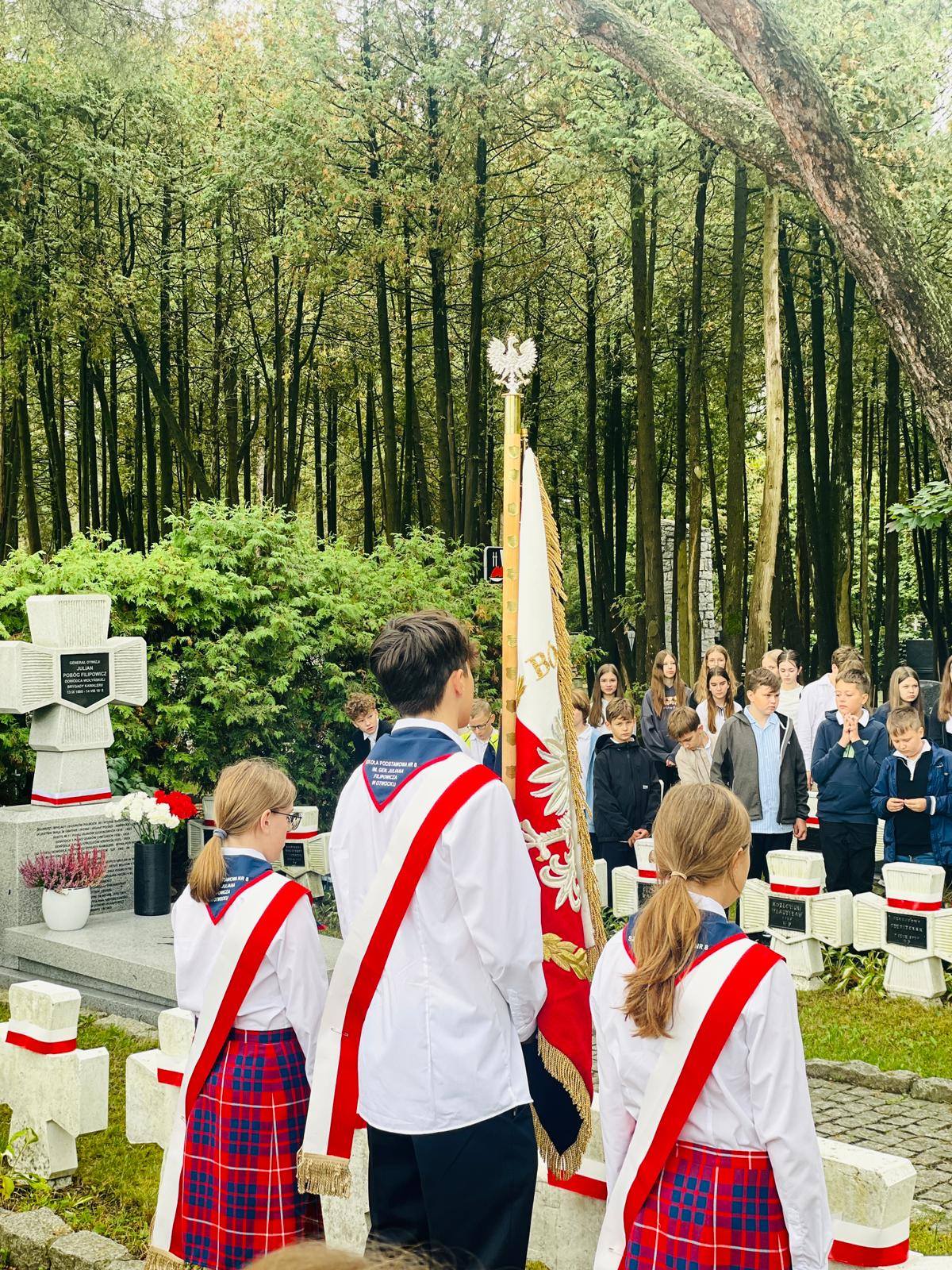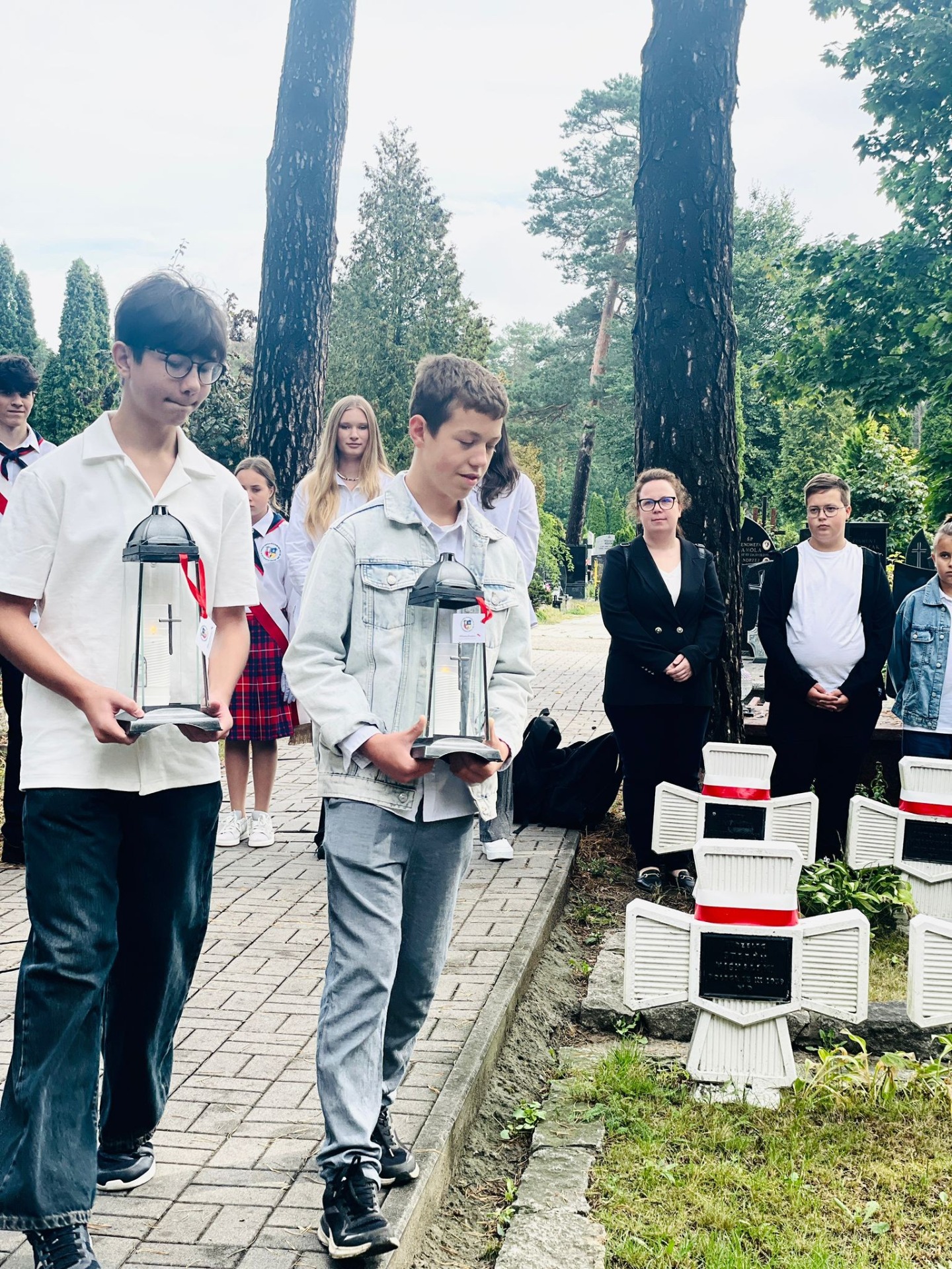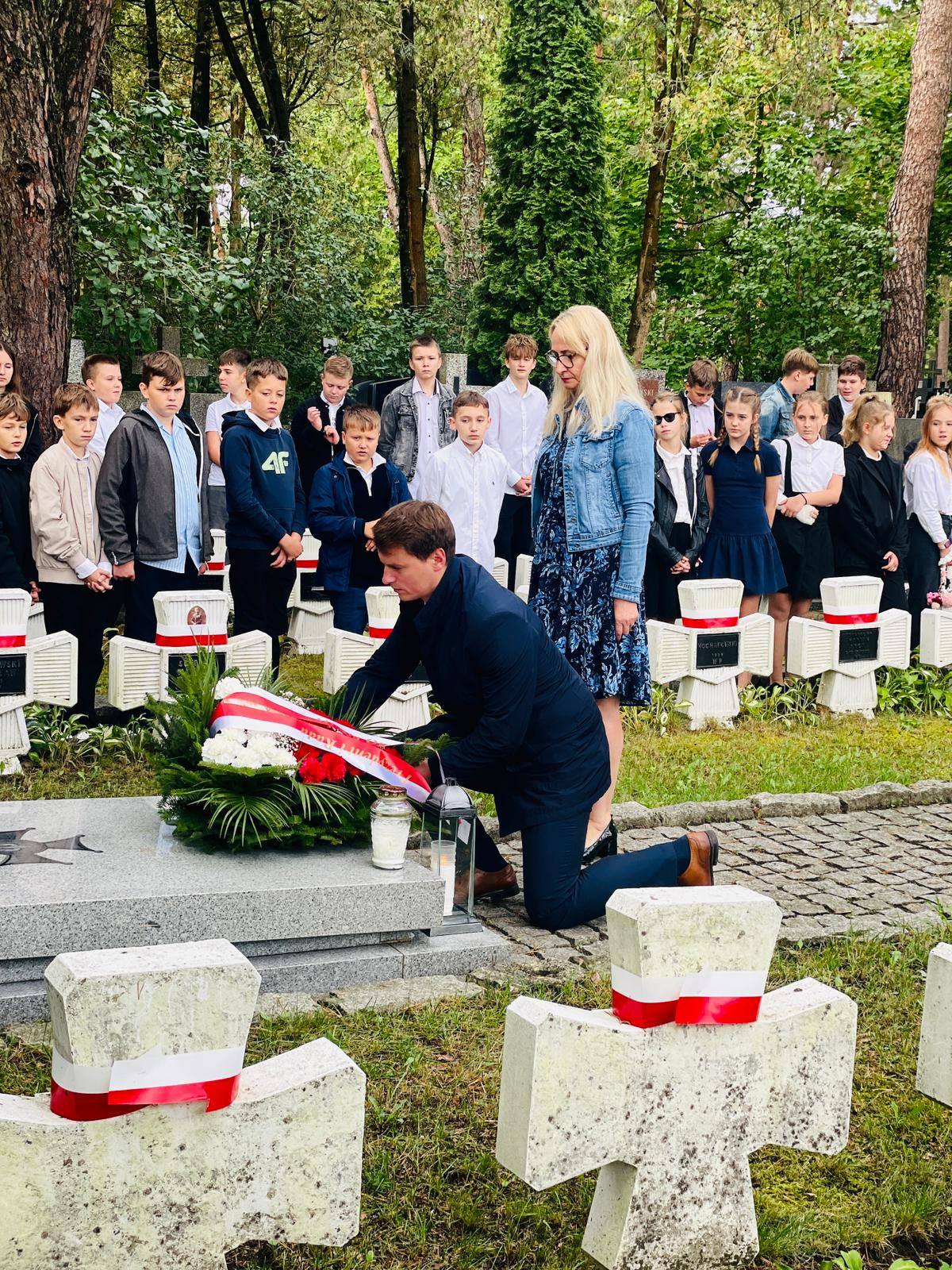 Obchody rozpoczęliśmy od uroczystości na cmentarzu, gdzie oddaliśmy hołd Generałowi Filipowiczowi w towarzystwie wyjątkowych gości: Prezydenta Miasta Otwocka, pana Jarosława Margielskiego, Przewodniczącej Komisji Oświaty, Kultury i Sportu, pani Joanny Chmielewskiej a także Dyrektor Oświaty, pani Hanny Skrzypczak. Wśród nas był również pan Artur Piętka oraz przedstawicielka rodziny generała, pani Joanna Filipowicz, która dzieliła z nami ten wzruszający moment w towarzystwie naszych uczniów.