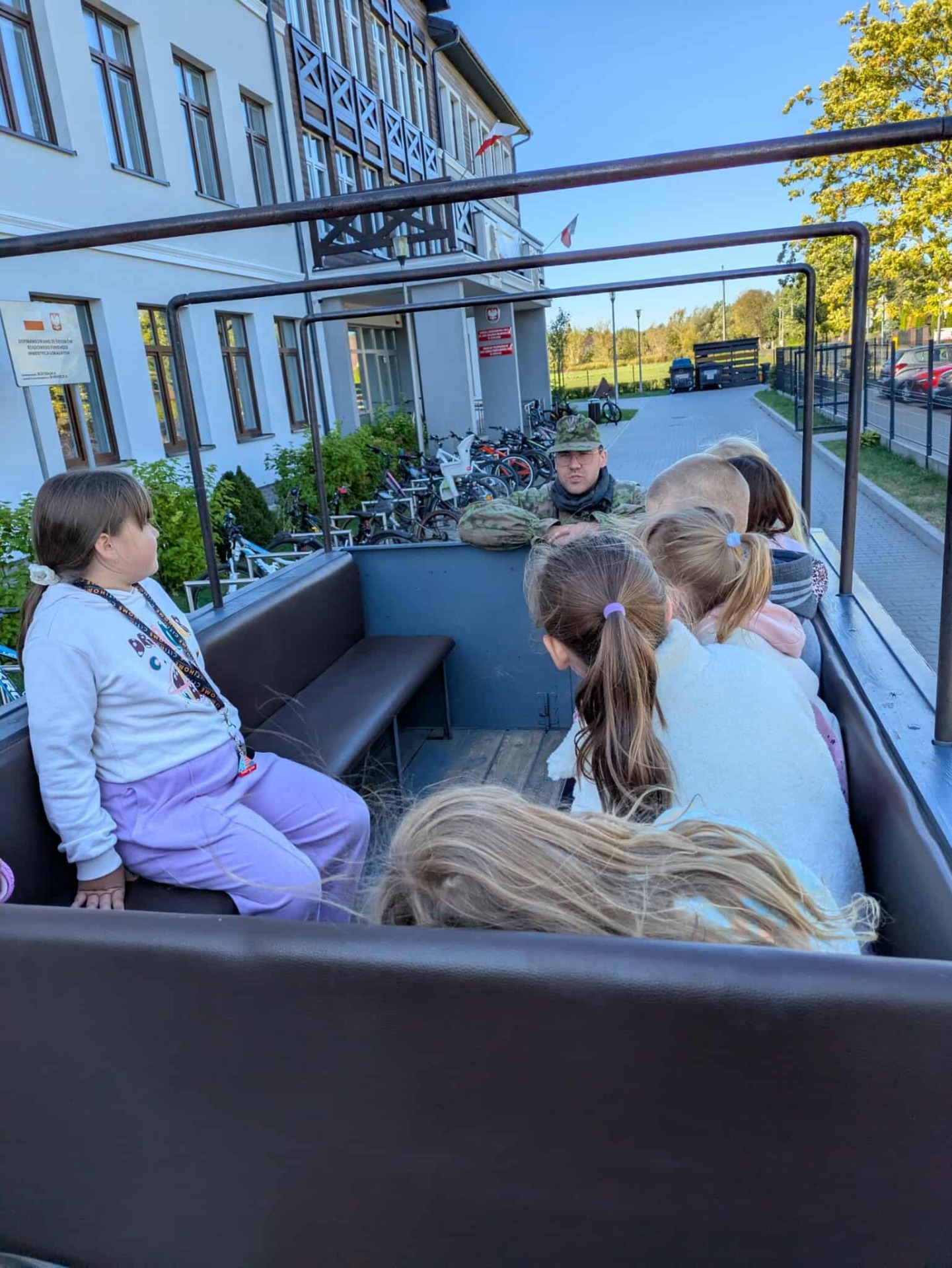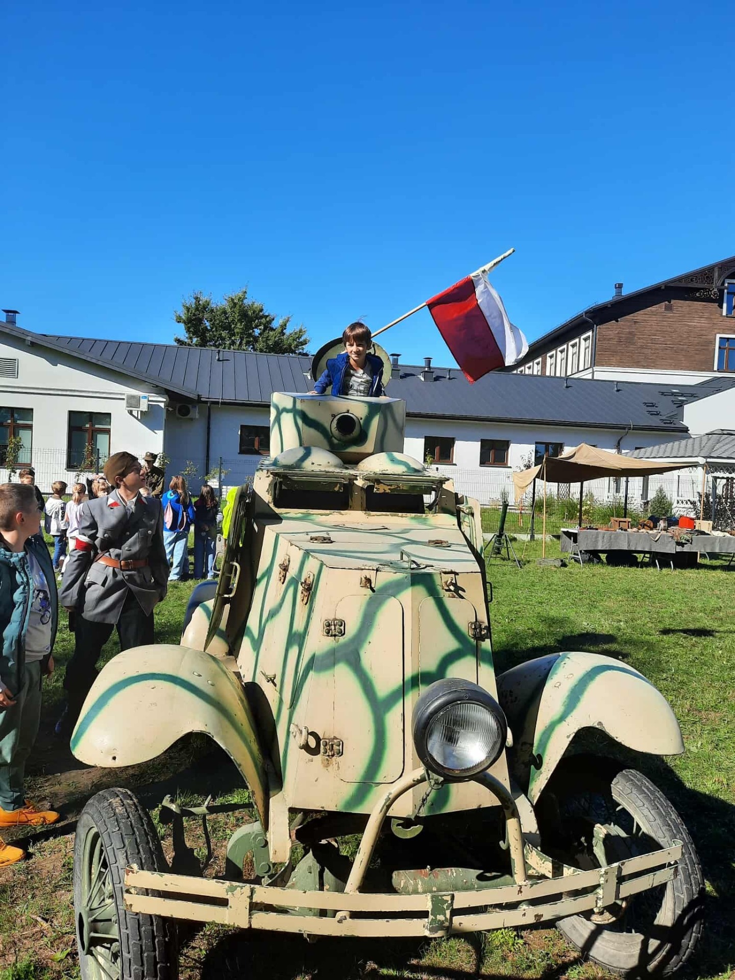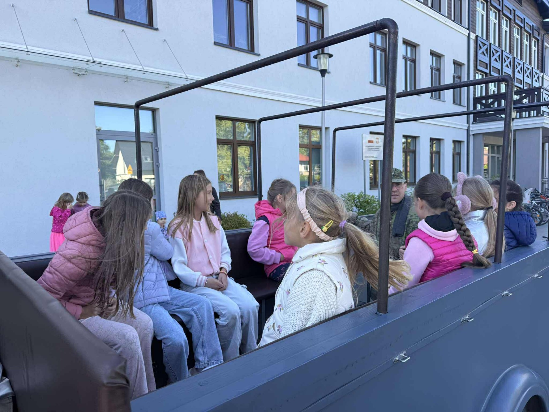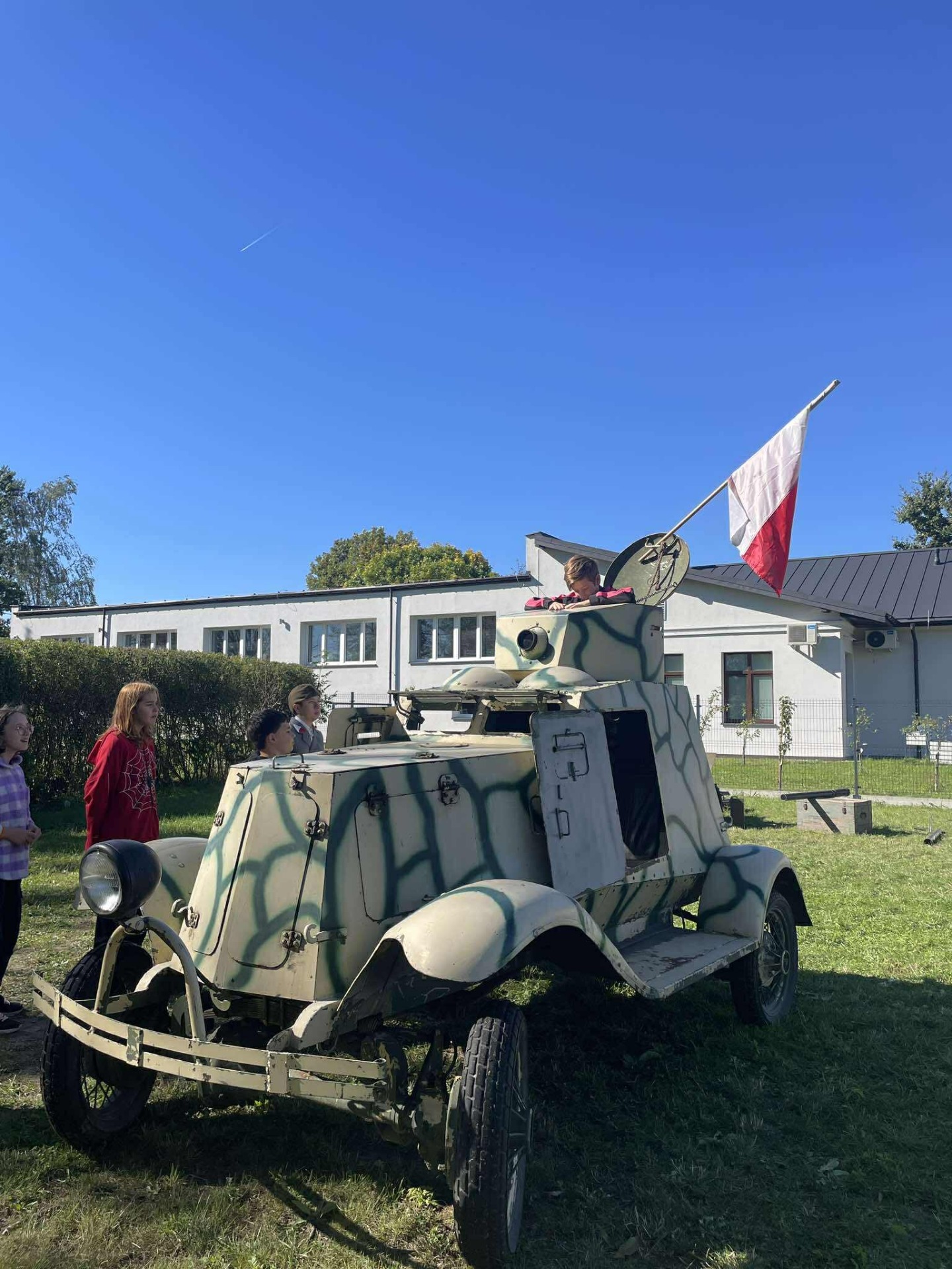 Na zakończenie, przejazd wojskową ciężarówką „Phanomen Granit” – niemieckim pojazdem zdobytym przez powstańców warszawskich! To był prawdziwy hit! Uczniowie mieli okazję poczuć się jak w czasie II wojny światowej, siedząc w tej historycznej maszynie.