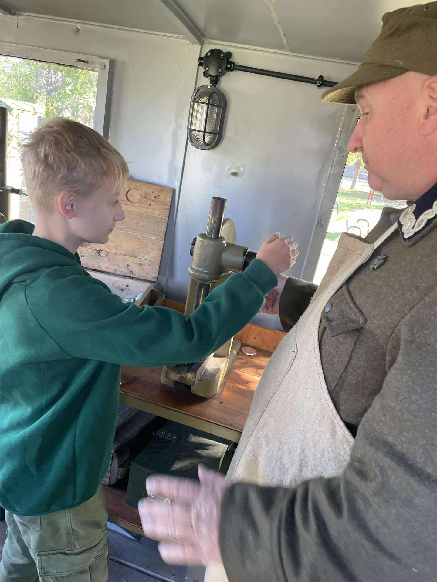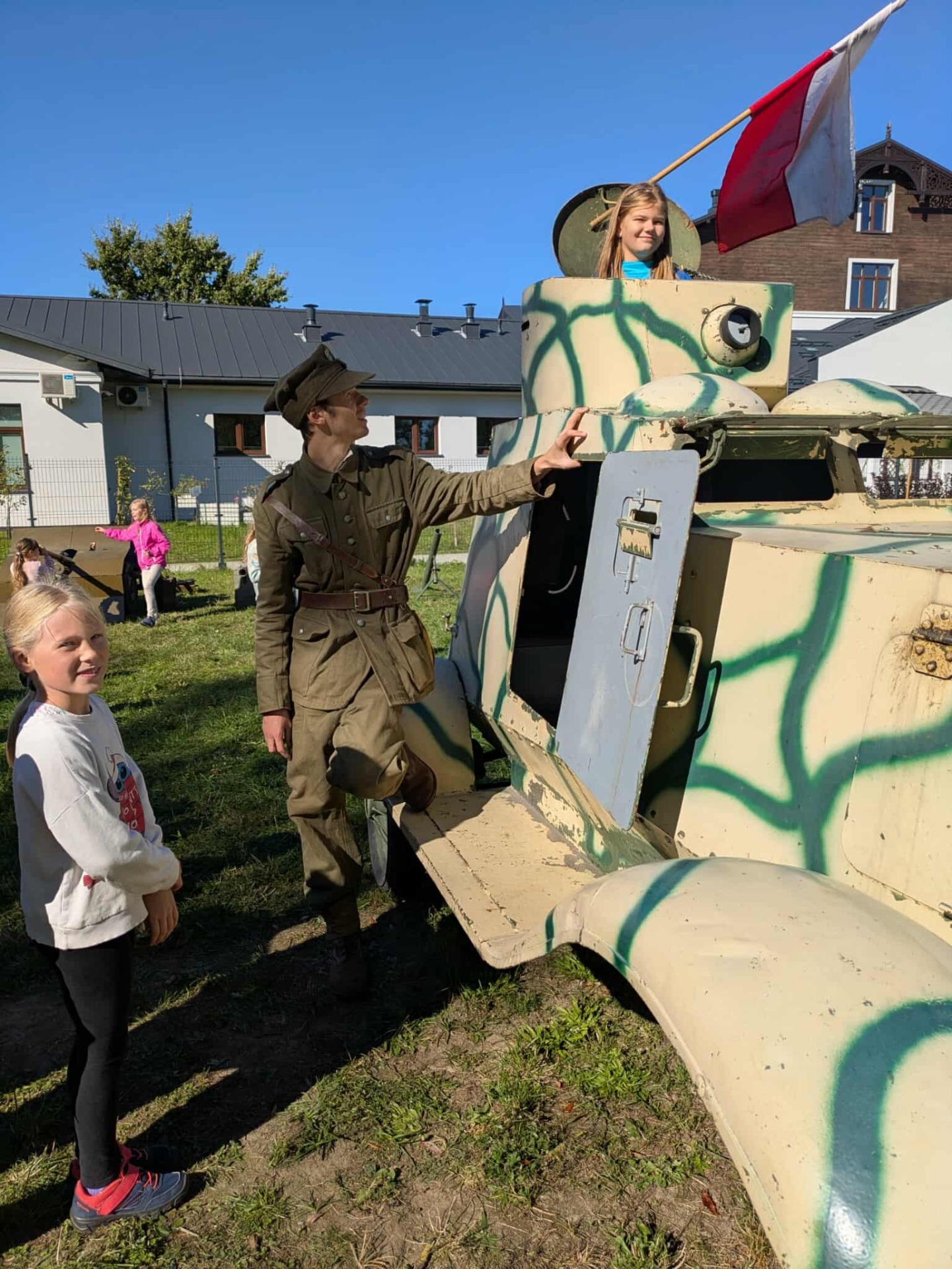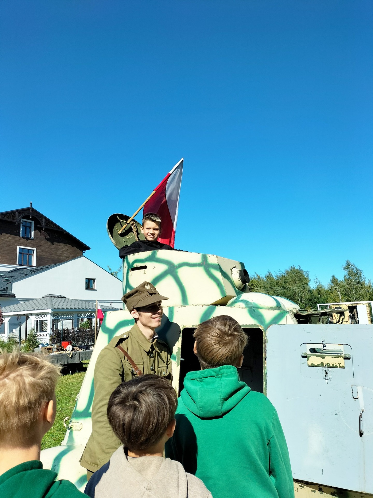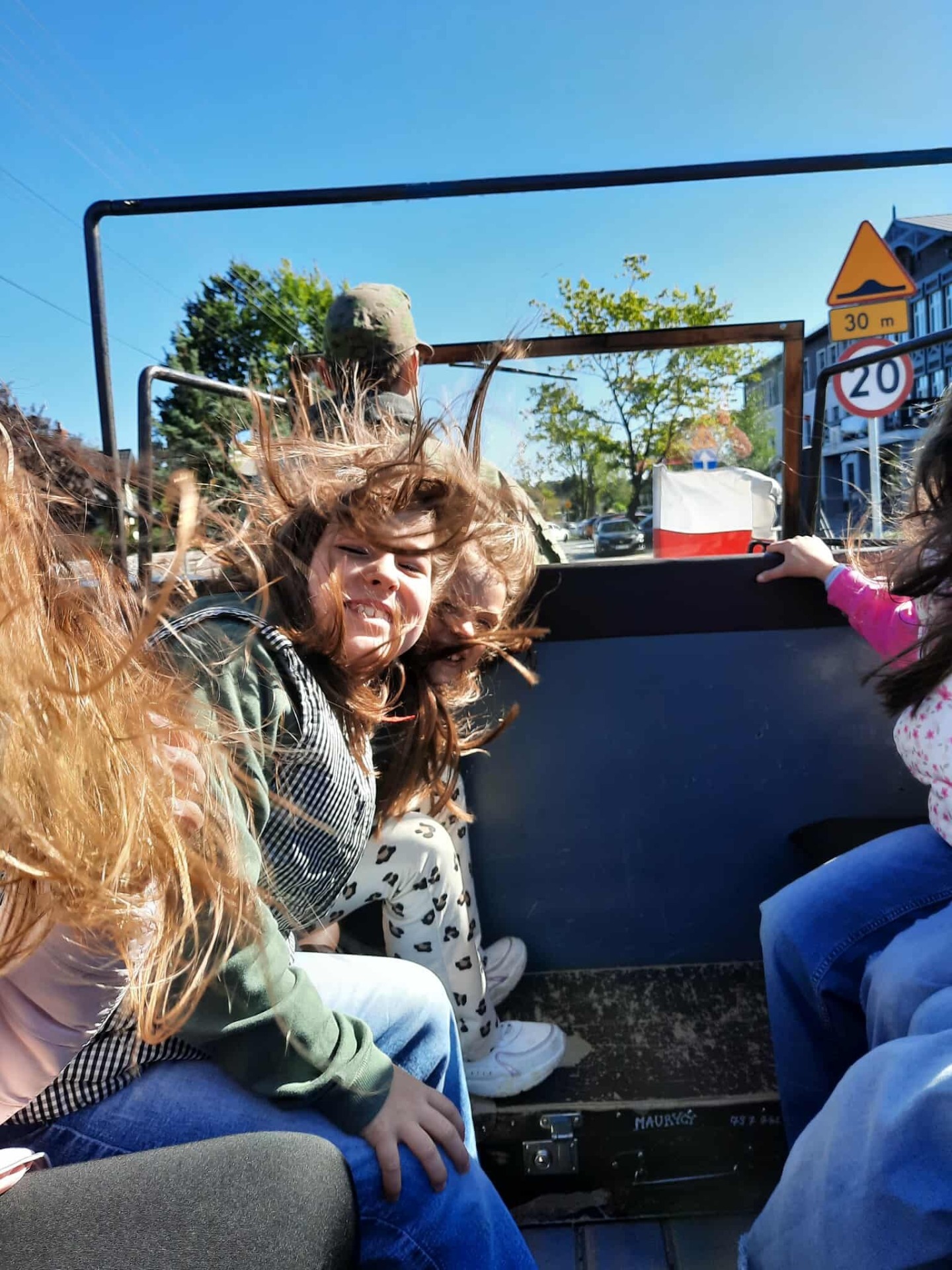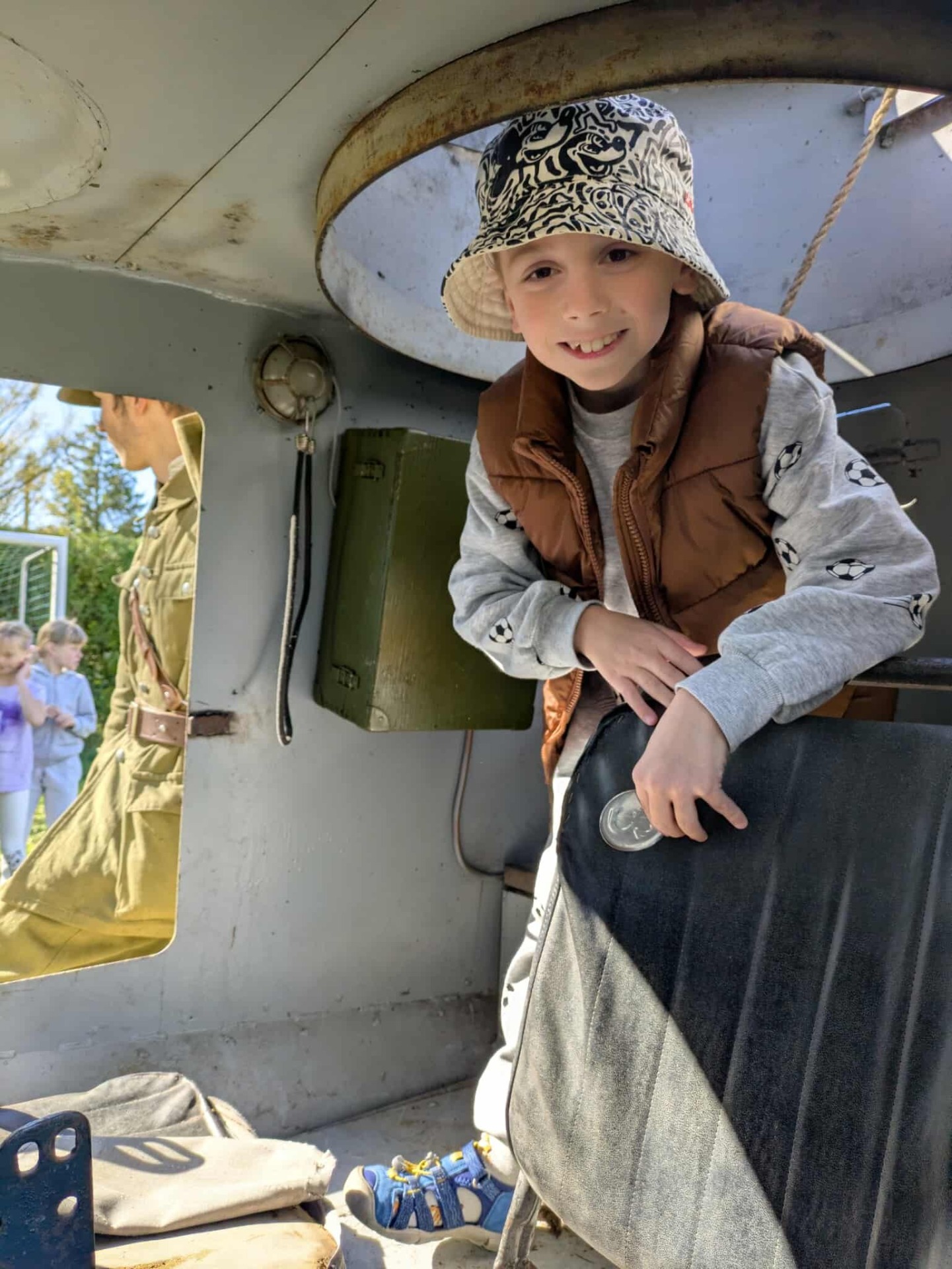 Na zakończenie, przejazd wojskową ciężarówką „Phanomen Granit” – niemieckim pojazdem zdobytym przez powstańców warszawskich! To był prawdziwy hit! Uczniowie mieli okazję poczuć się jak w czasie II wojny światowej, siedząc w tej historycznej maszynie.