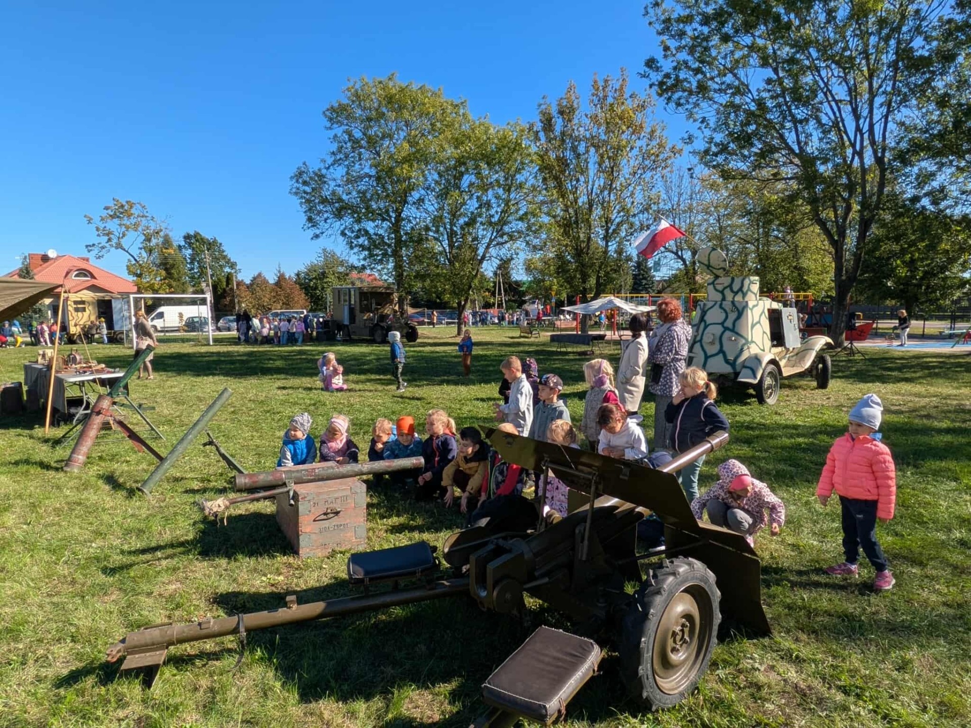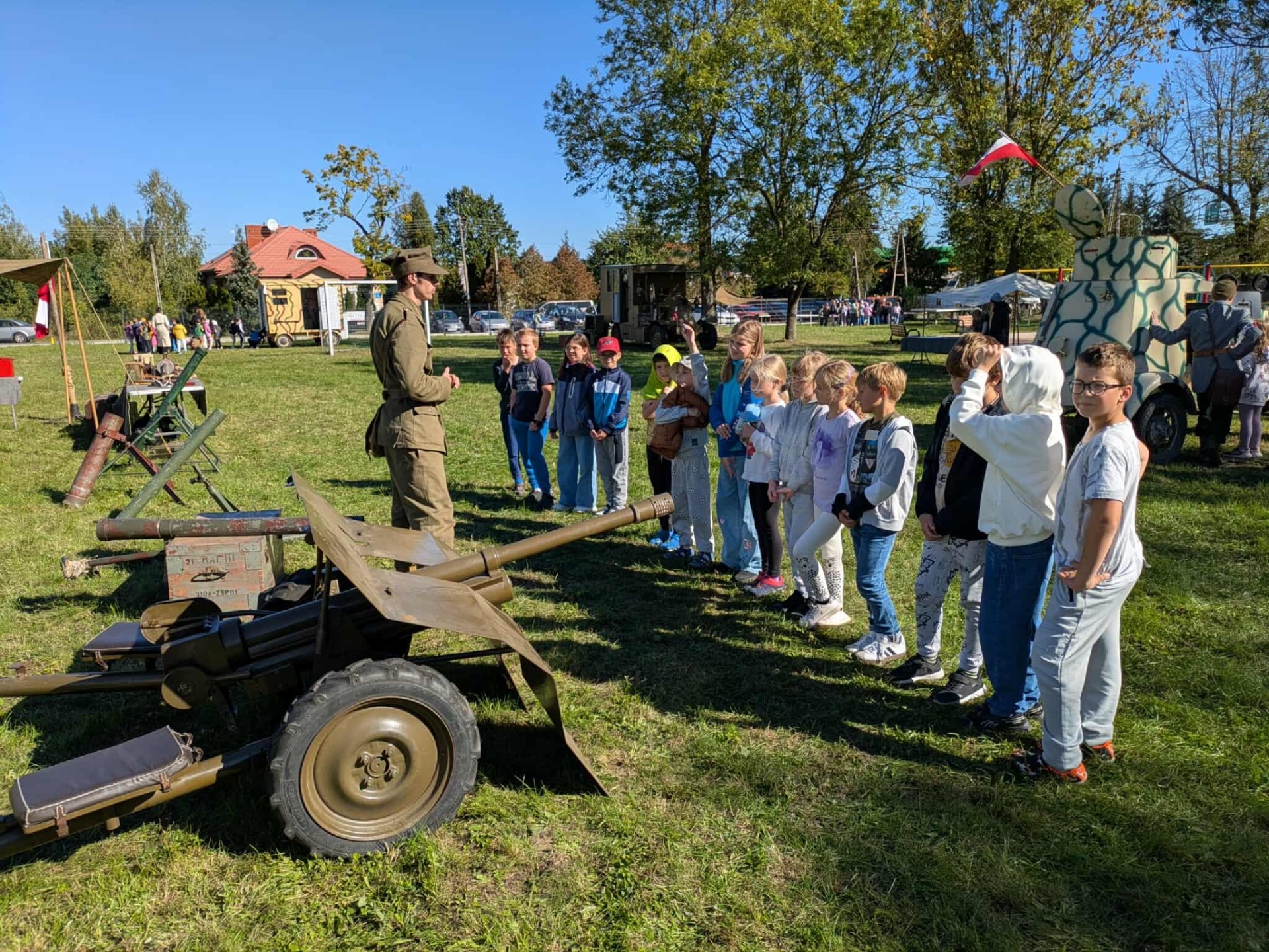 Na początek, strzelanie z armaty – to była niezapomniana przygoda! Dźwięk wystrzału rozbrzmiewał w powietrzu, a wszyscy czuli się jak prawdziwi żołnierze.