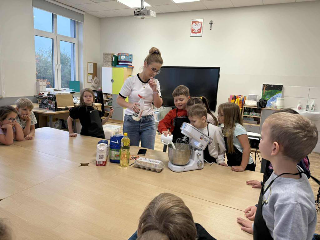 Najpierw uczniowie zostali zapoznani z urządzeniem do wypiekania gofrów oraz poznali zasady bezpiecznego korzystania ze sprzętu kuchennego.