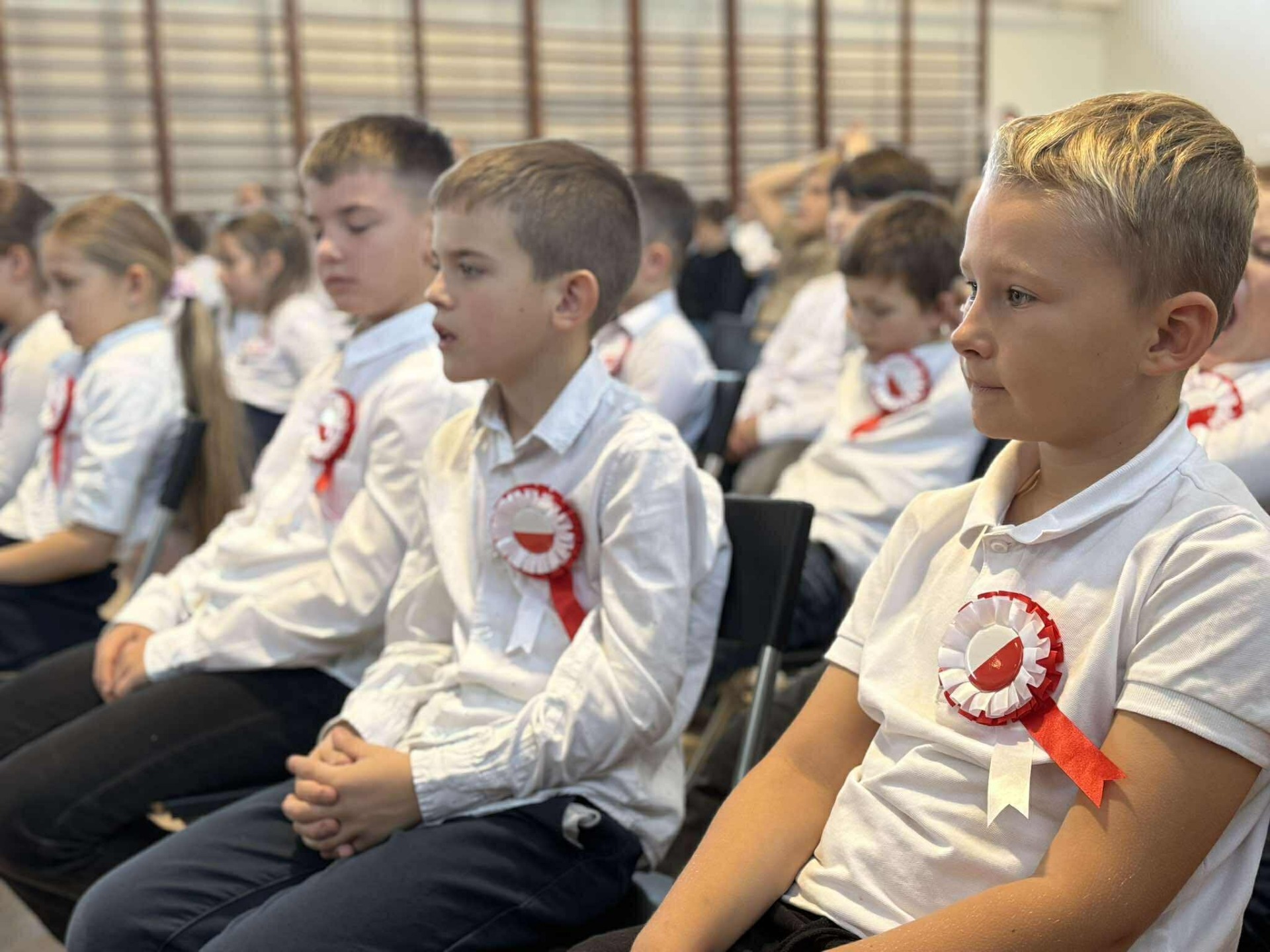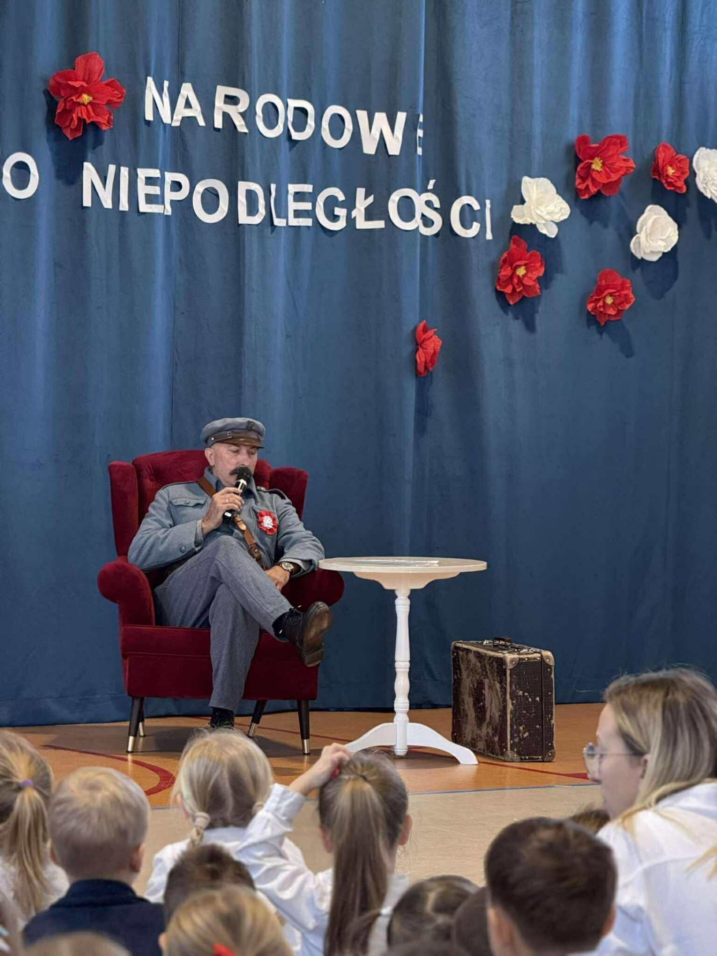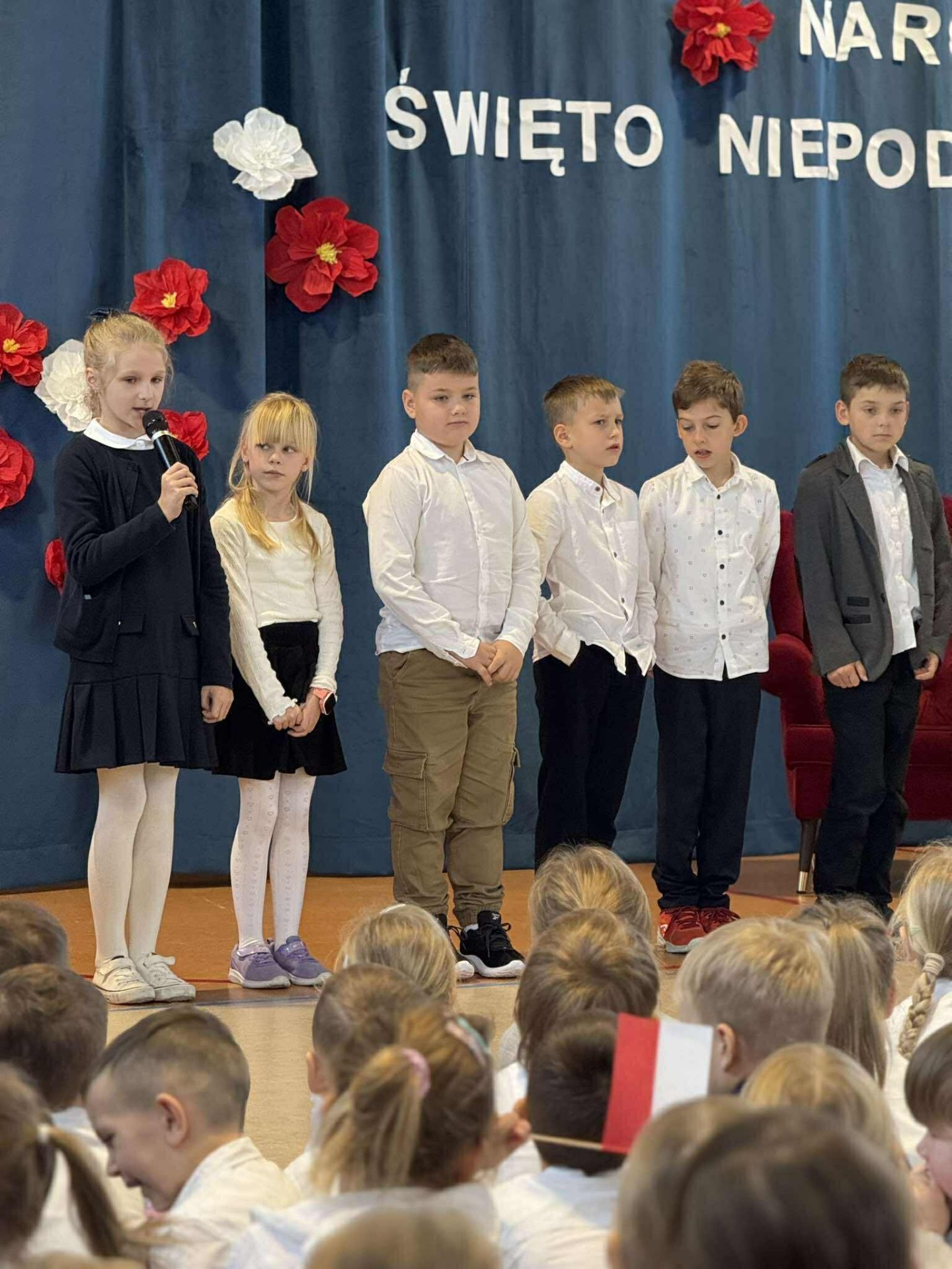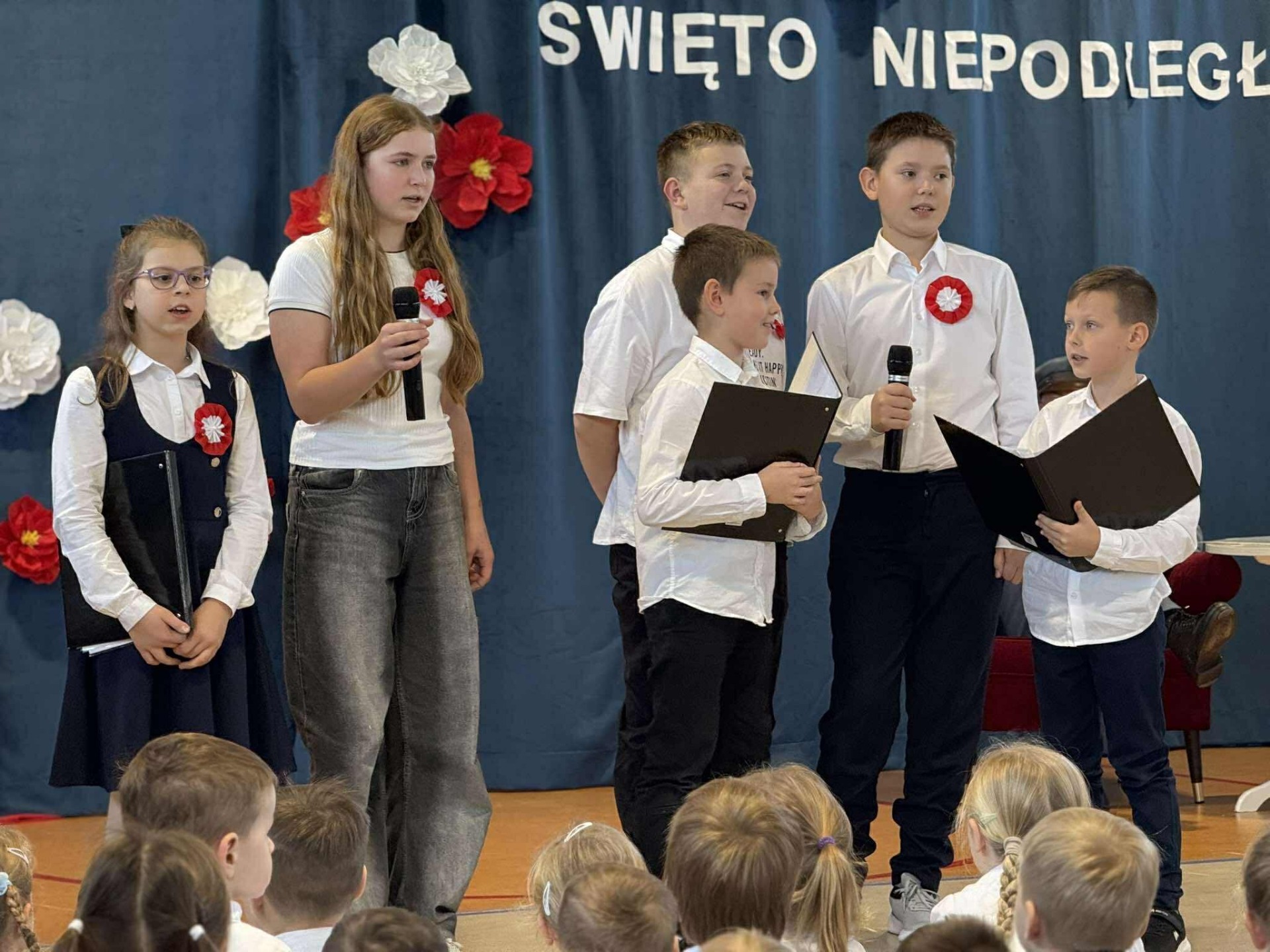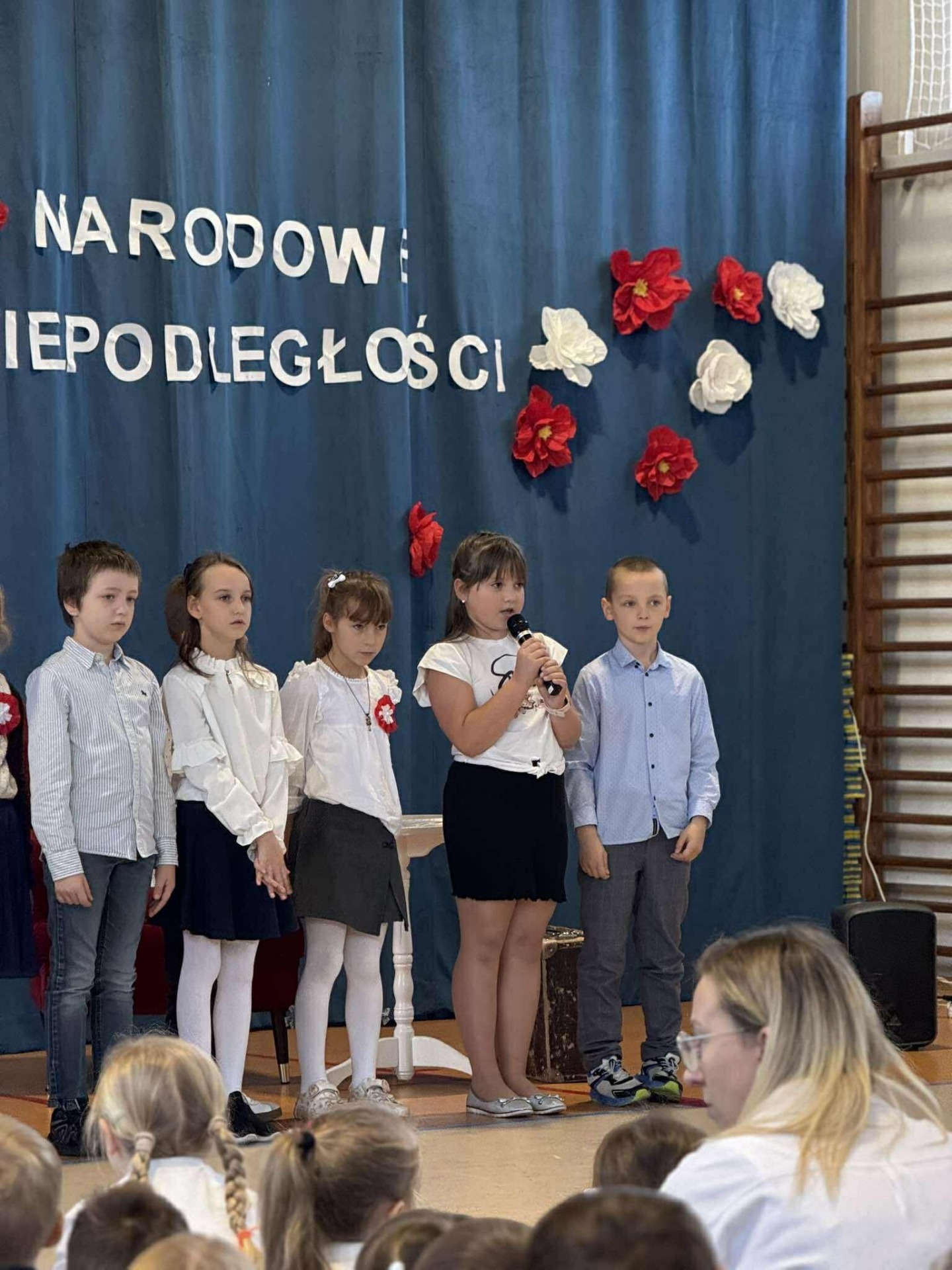 6 listopada 2025r. odbyła się w naszej szkole uroczysta akademia z okazji Narodowego Święta Niepodległości. Apel przygotowali uczniowie klasy 2a, chór szkolny oraz przedszkolaki z grupy Sówek. Uroczystość zaszczycił swoją obecnością Marszałek Polski - Józef Piłsudski, w którego rolę wcielił się pan pedagog Mariusz Wilk. Przedszkolaki zaśpiewały jedną z pieśni legionowych „ Jedzie na Kasztance”. Uczniowie klasy 2a recytowali wiersze o wolności i symbolach narodowych, a także przybliżyli historię walki