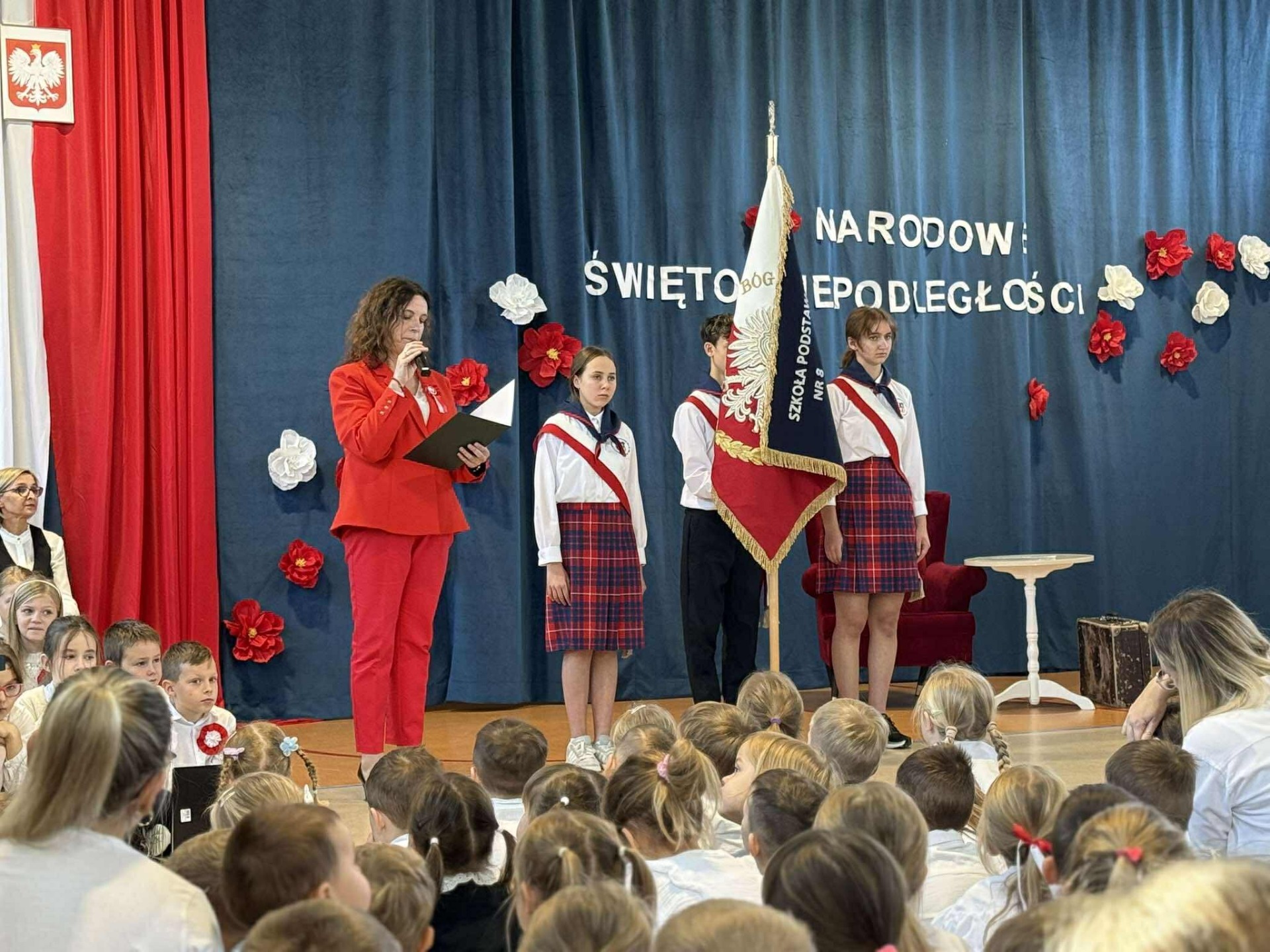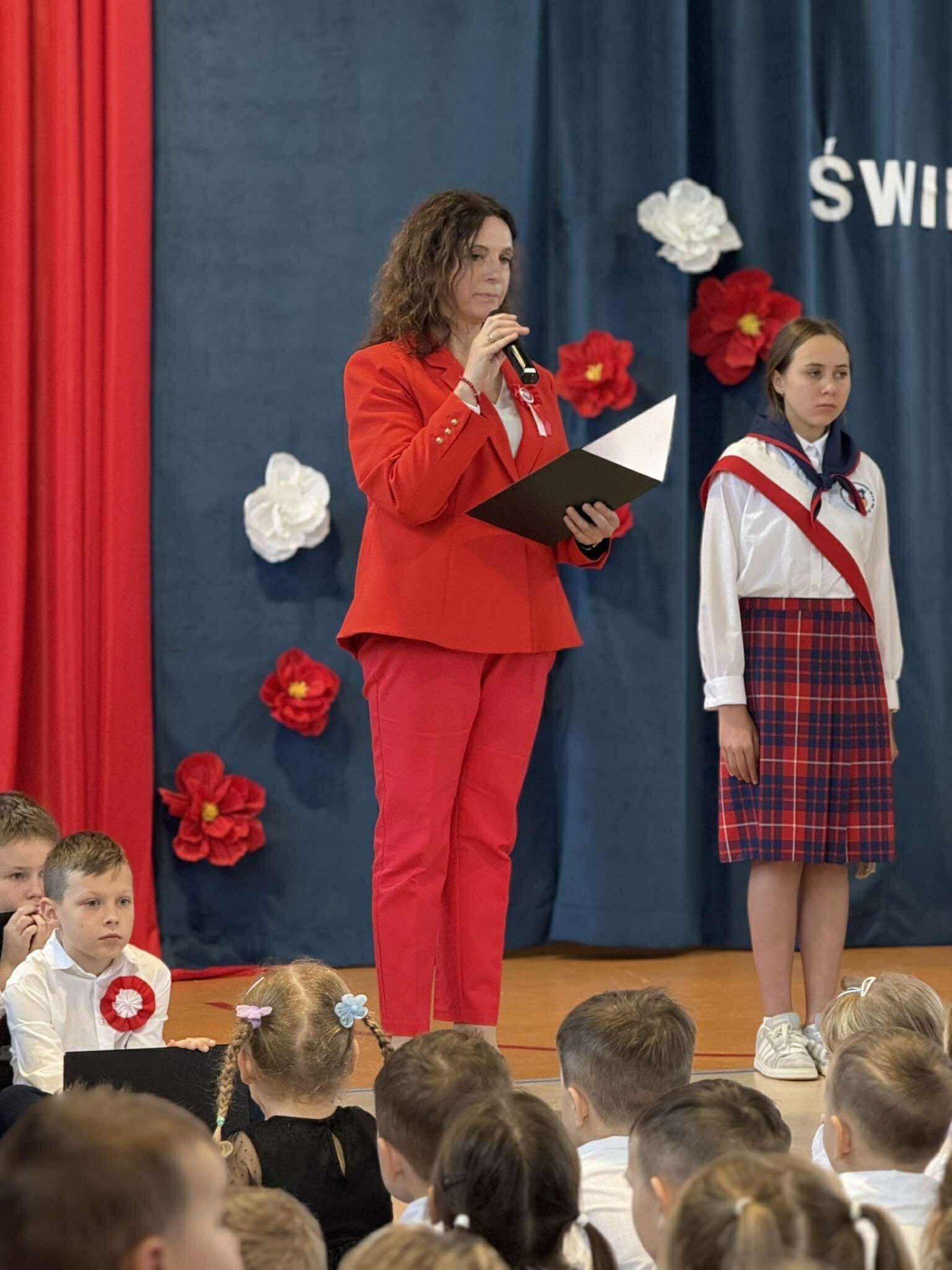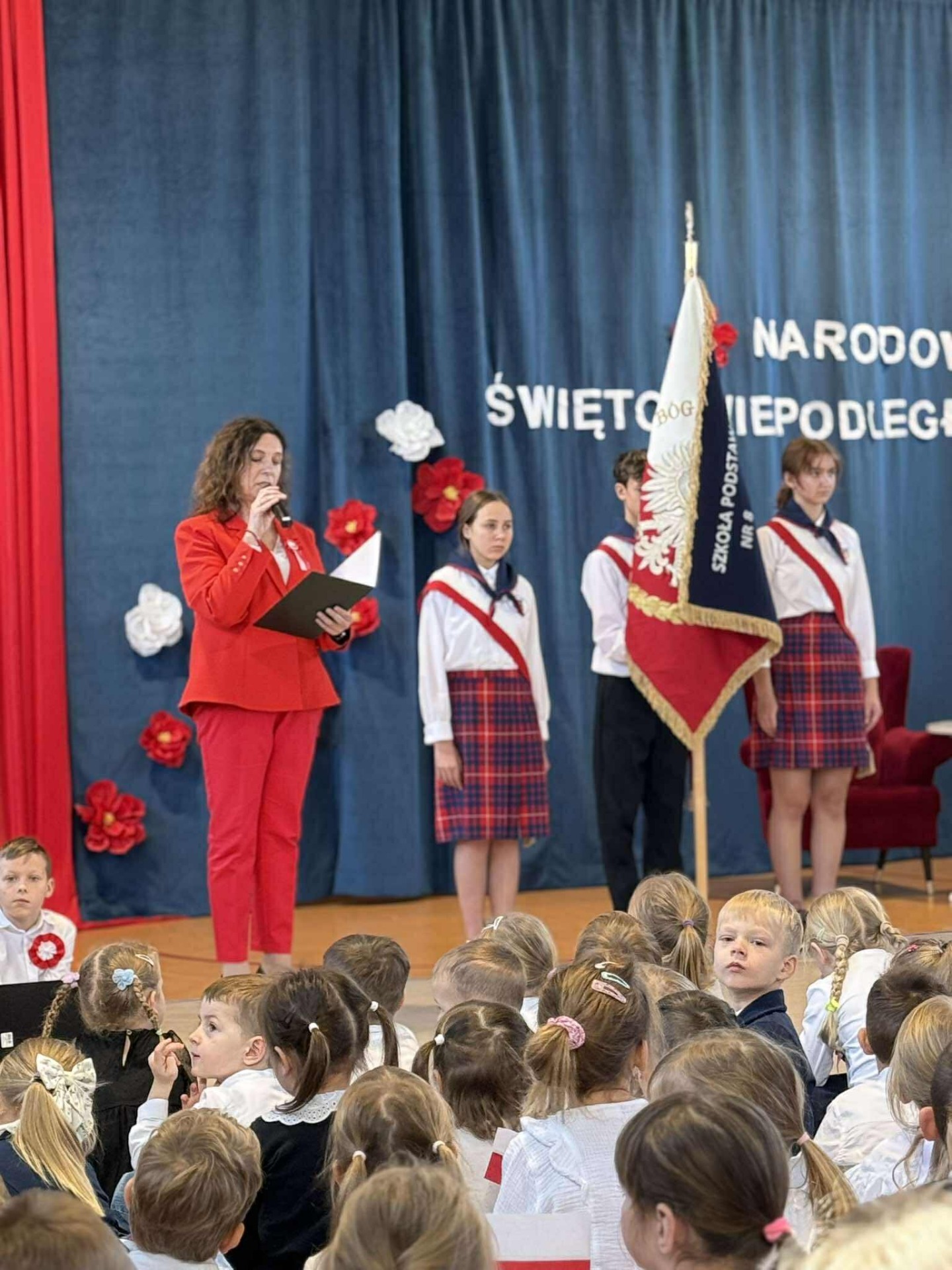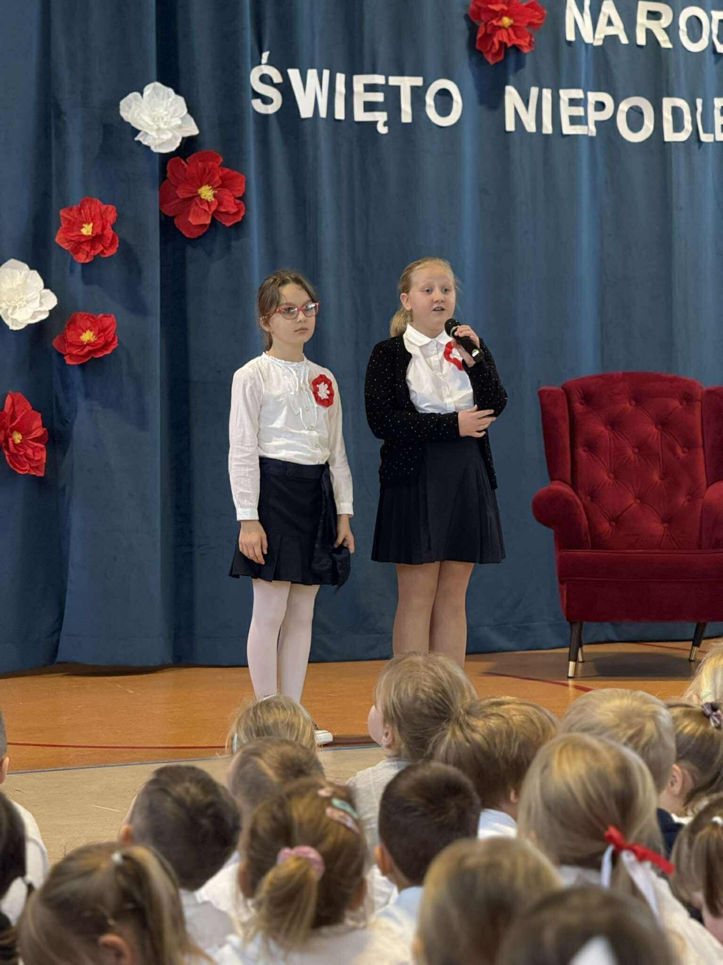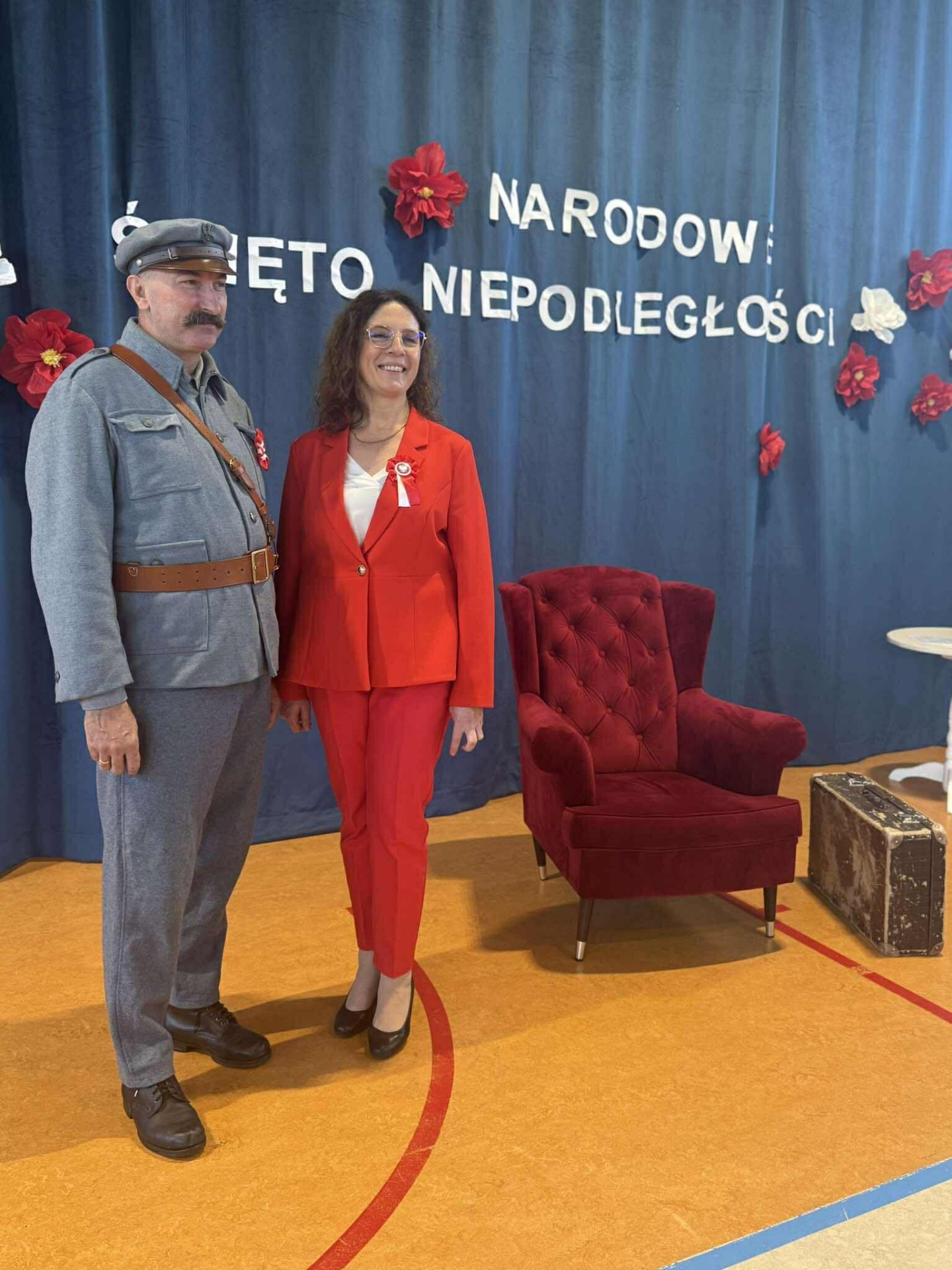 6 listopada 2025r. odbyła się w naszej szkole uroczysta akademia z okazji Narodowego Święta Niepodległości. Apel przygotowali uczniowie klasy 2a, chór szkolny oraz przedszkolaki z grupy Sówek. Uroczystość zaszczycił swoją obecnością Marszałek Polski - Józef Piłsudski, w którego rolę wcielił się pan pedagog Mariusz Wilk. Przedszkolaki zaśpiewały jedną z pieśni legionowych „ Jedzie na Kasztance”. Uczniowie klasy 2a recytowali wiersze o wolności i symbolach narodowych, a także przybliżyli historię walki