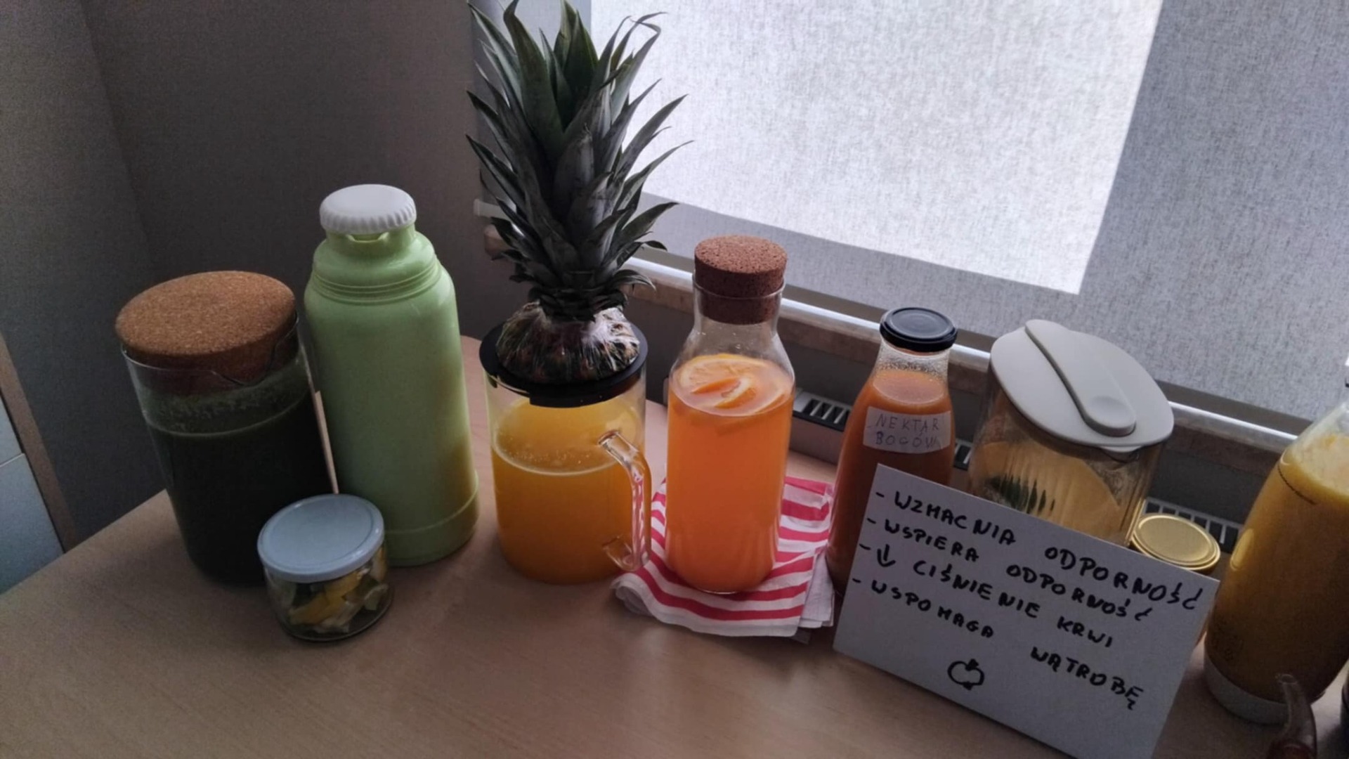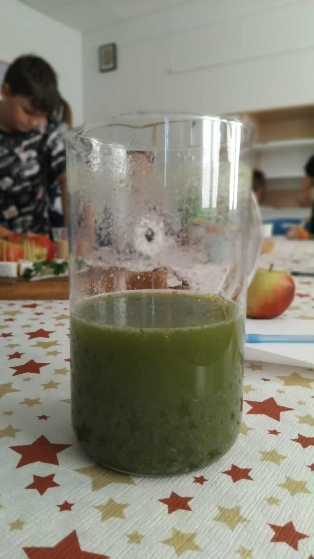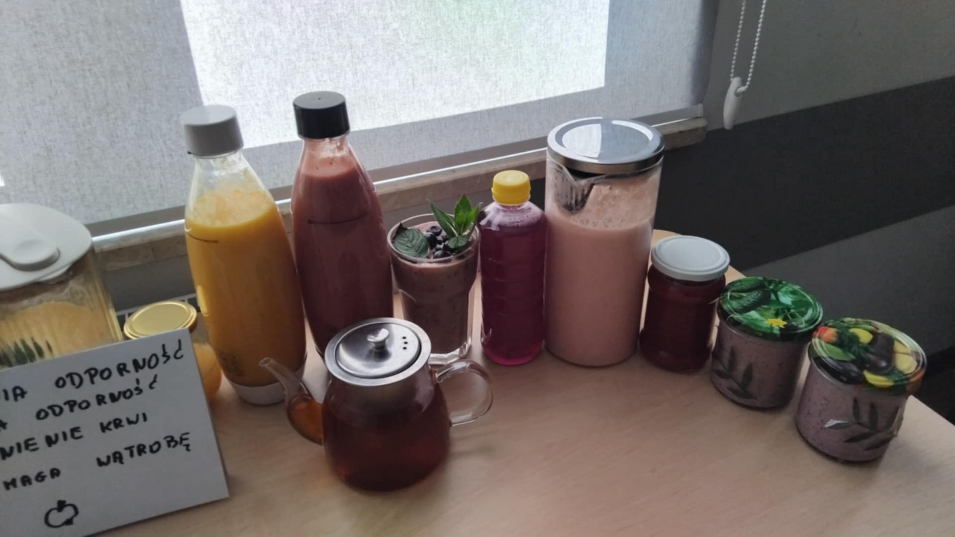 Taki zdrowy napój to sposób na dostarczenie uczniowi witamin, minerałów i błonnika w przepysznej i łatwej do przyswojenia przez organizm formie. Dzieci wykazały się wiedzą o pełnowartościowych produktach (była m.in. natka pietruszki, a nawet świeży sok z pigwy i aronii- oczywiście z własnego ogródka) oraz kreatywnością kulinarną (śmiało łączyły białko i słodkie owoce). Zamiast czarnej herbaty popiliśmy nasze zdrowe kanapki i...już żaden sprawdzian nam nie straszny!