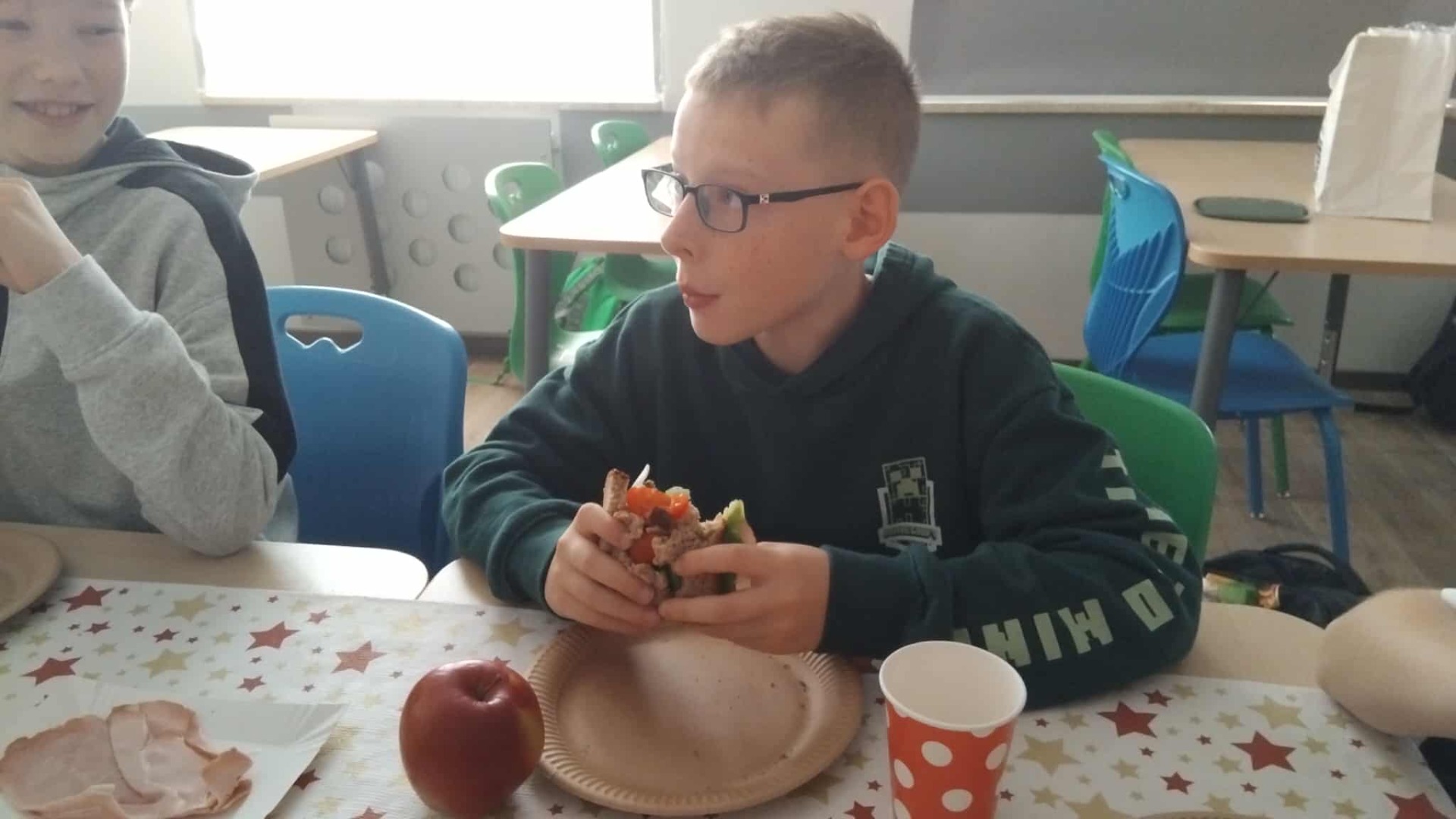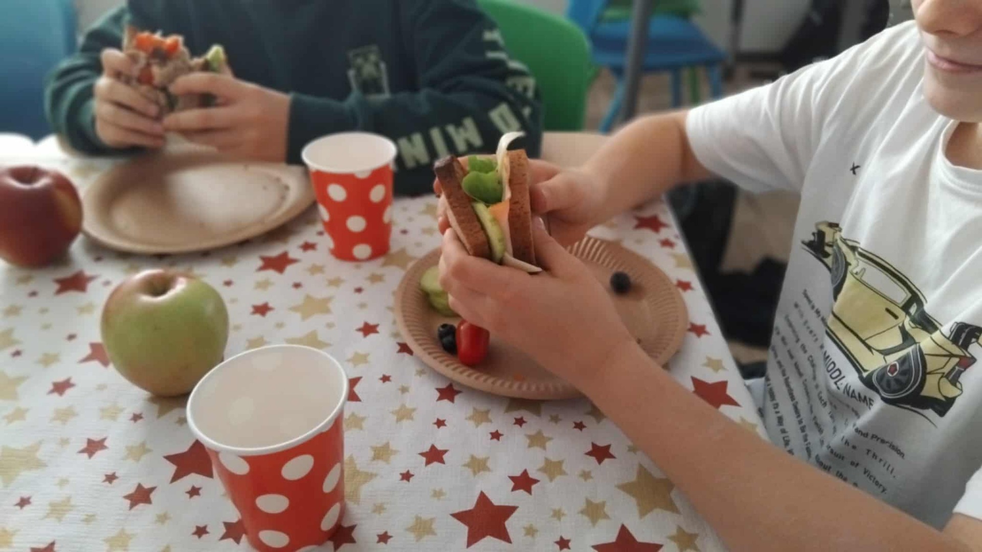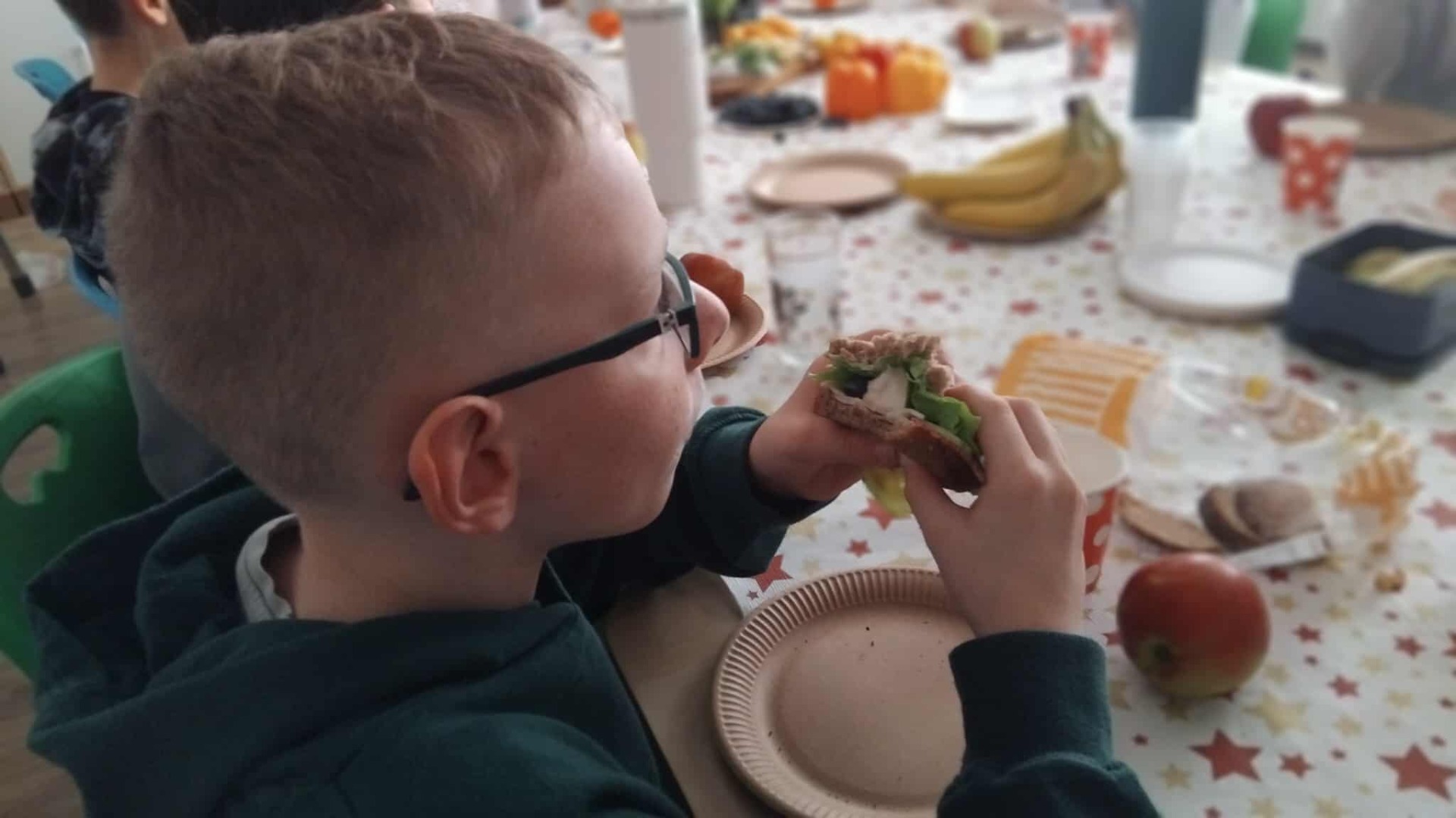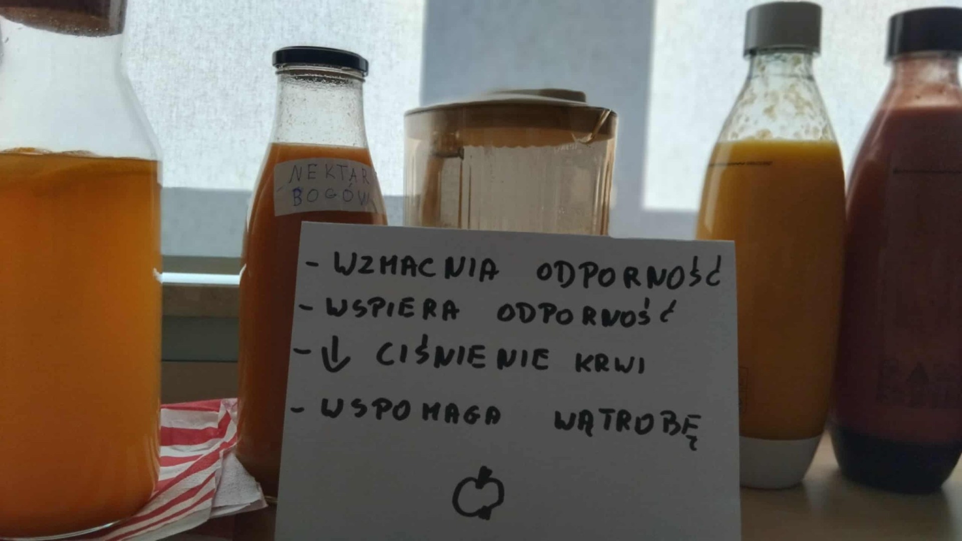 Taki zdrowy napój to sposób na dostarczenie uczniowi witamin, minerałów i błonnika w przepysznej i łatwej do przyswojenia przez organizm formie. Dzieci wykazały się wiedzą o pełnowartościowych produktach (była m.in. natka pietruszki, a nawet świeży sok z pigwy i aronii- oczywiście z własnego ogródka) oraz kreatywnością kulinarną (śmiało łączyły białko i słodkie owoce). Zamiast czarnej herbaty popiliśmy nasze zdrowe kanapki i...już żaden sprawdzian nam nie straszny!